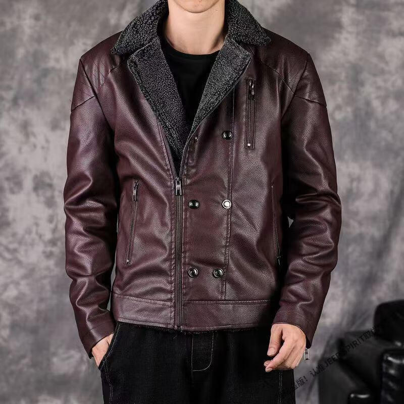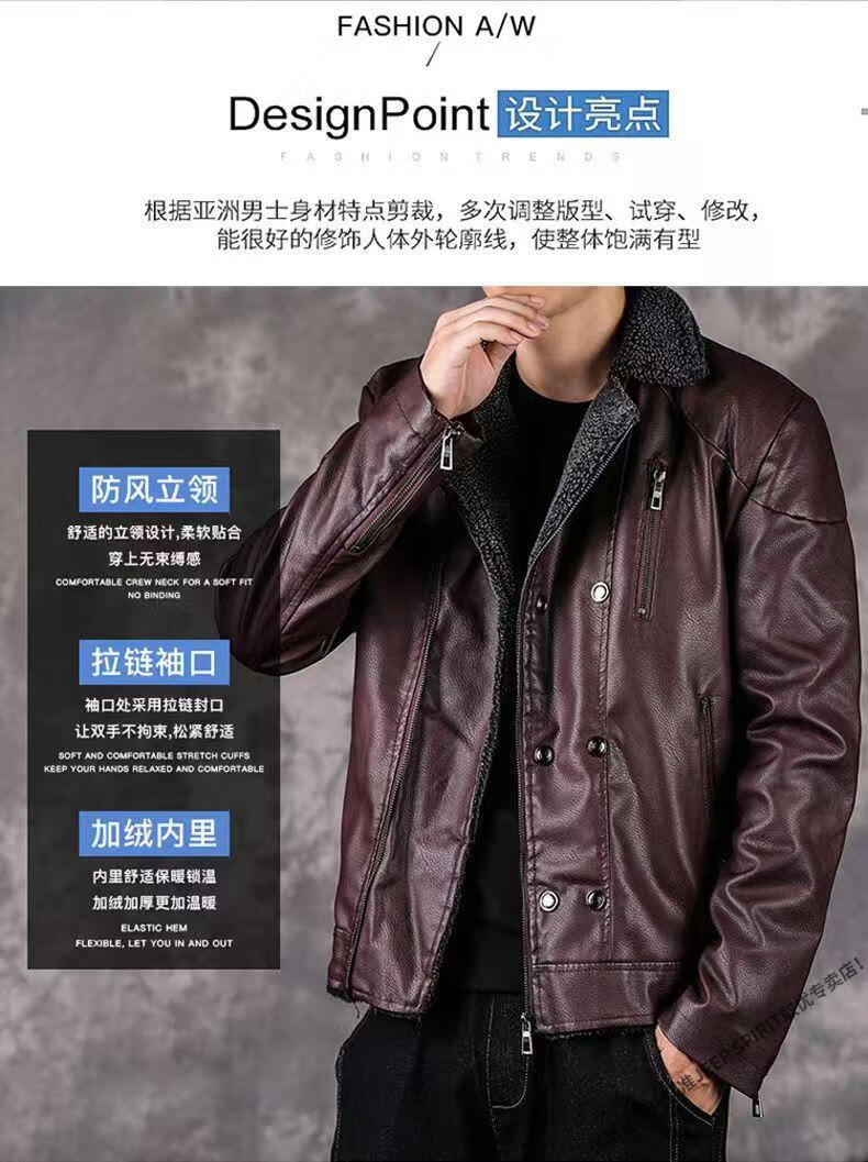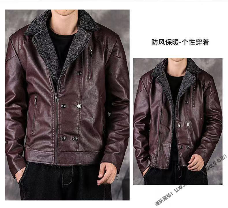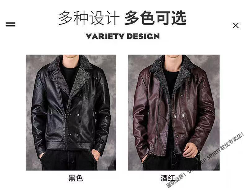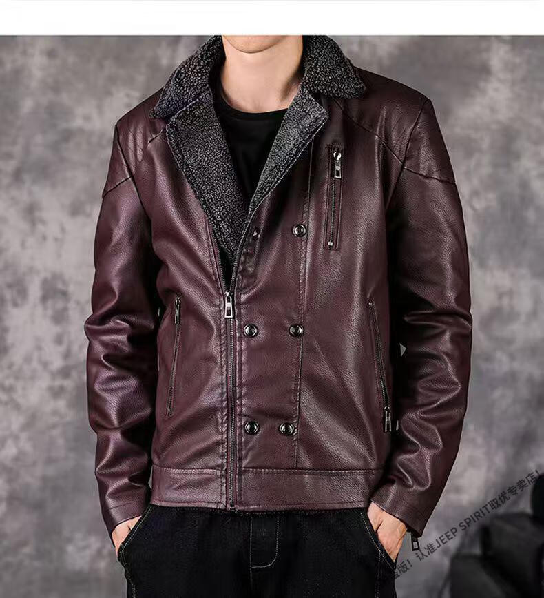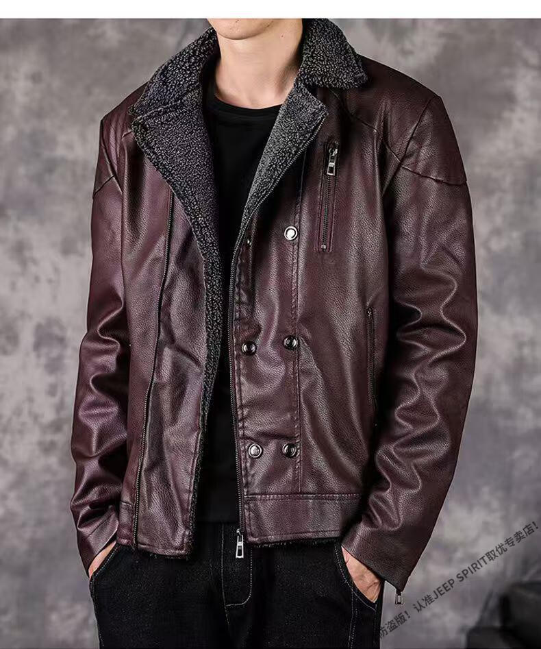 JEEP SPIRIT吉普皮衣男士加绒加厚真皮夹克2025冬季新款韩版修身休闲皮毛一体 黑色 2XL