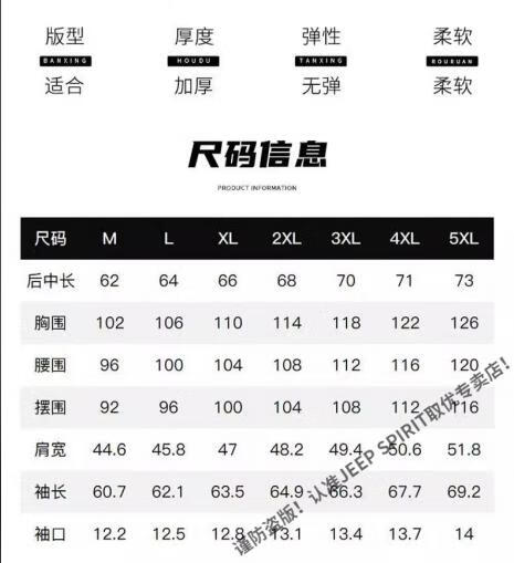 China (cm) 165 / 88-90 170 / 96-98 175 / 108-110 180 / 118-122 185 / 126-130
