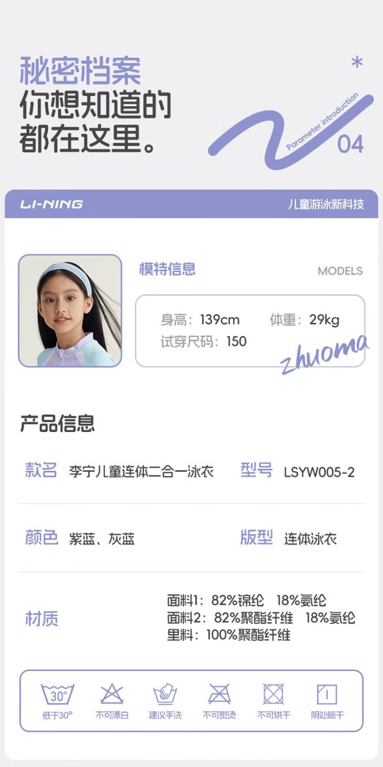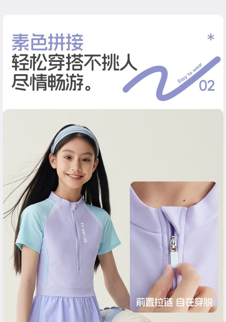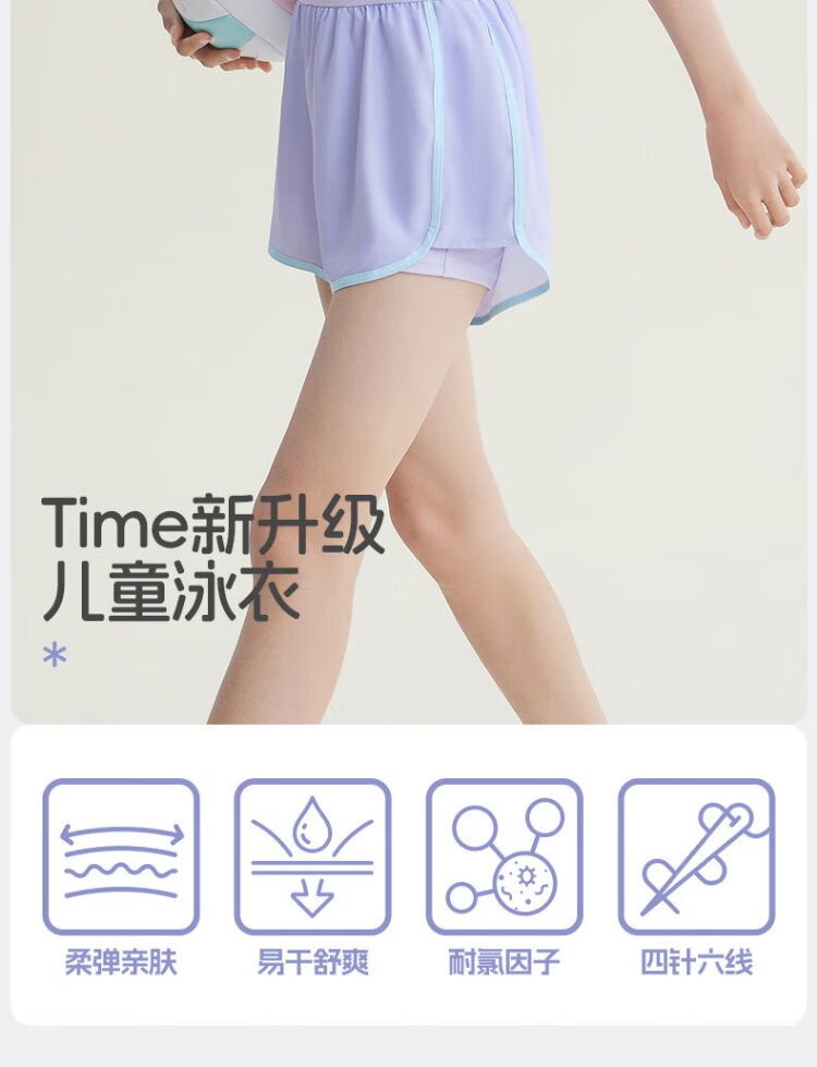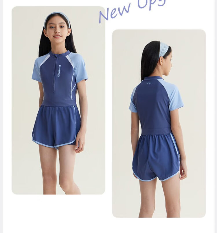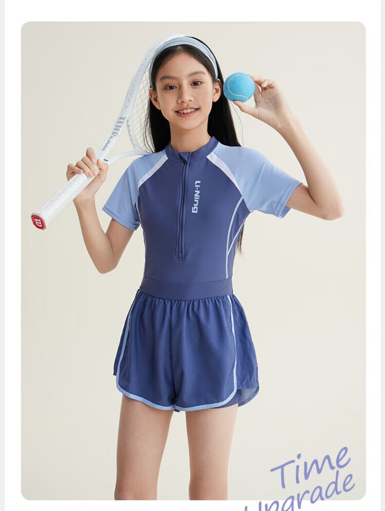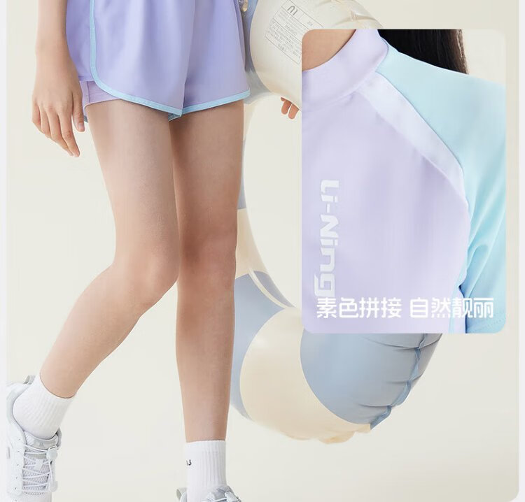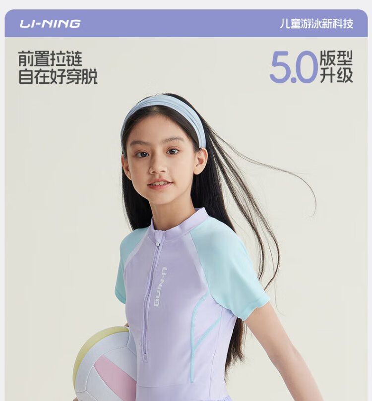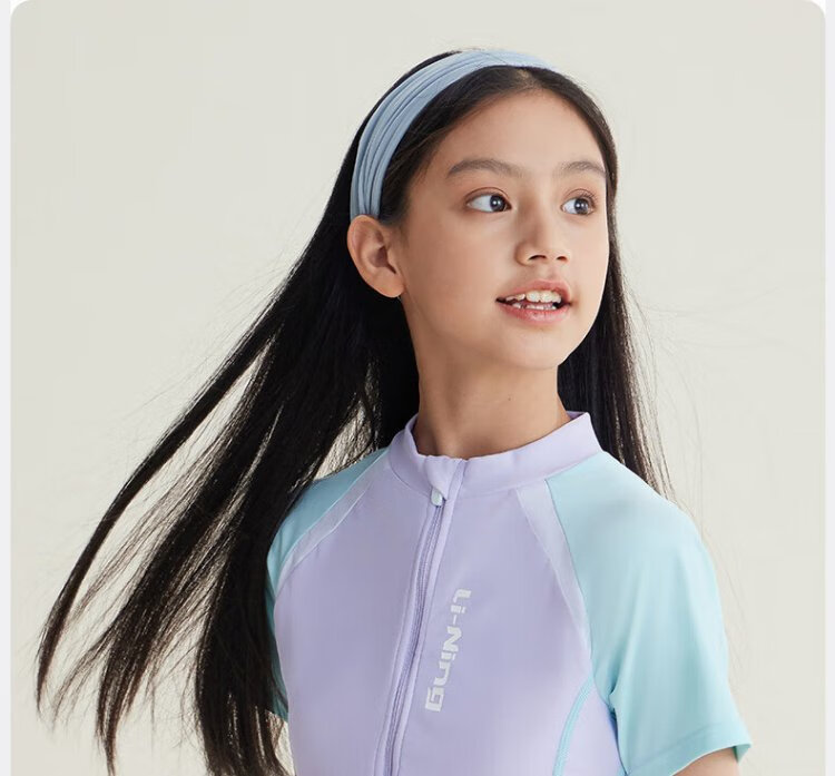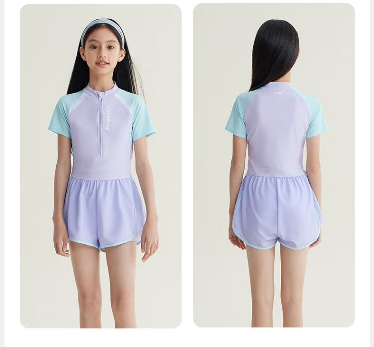 Детский купальник Li Ning (LI-NING) для девочек, два в одном, чтобы не смущаться, новое оборудование для плавания в горячих источниках для маленьких, средних и больших детей, серо-фиолетовые очки для плавания, комплект 160, рост 140-150 см, вес 35-45 кг.