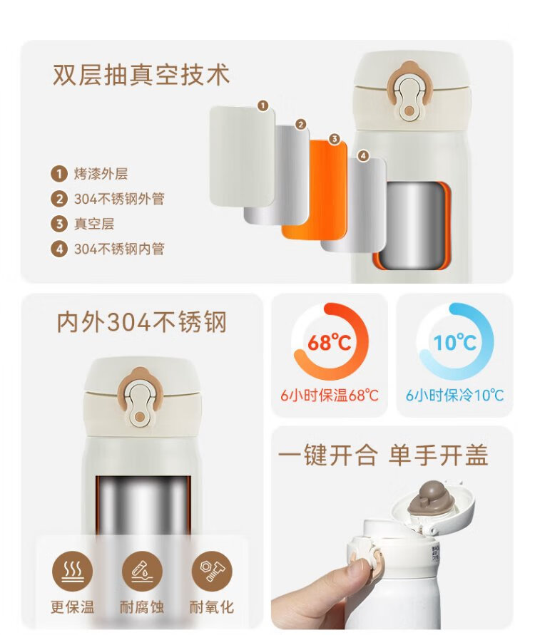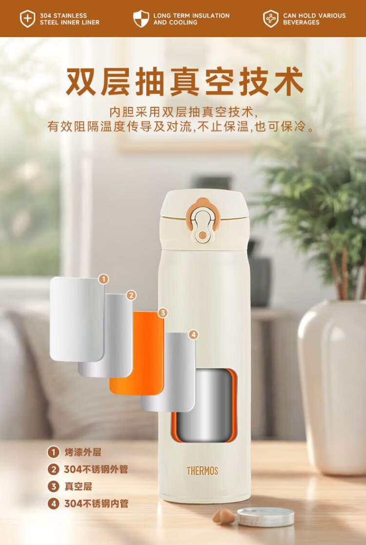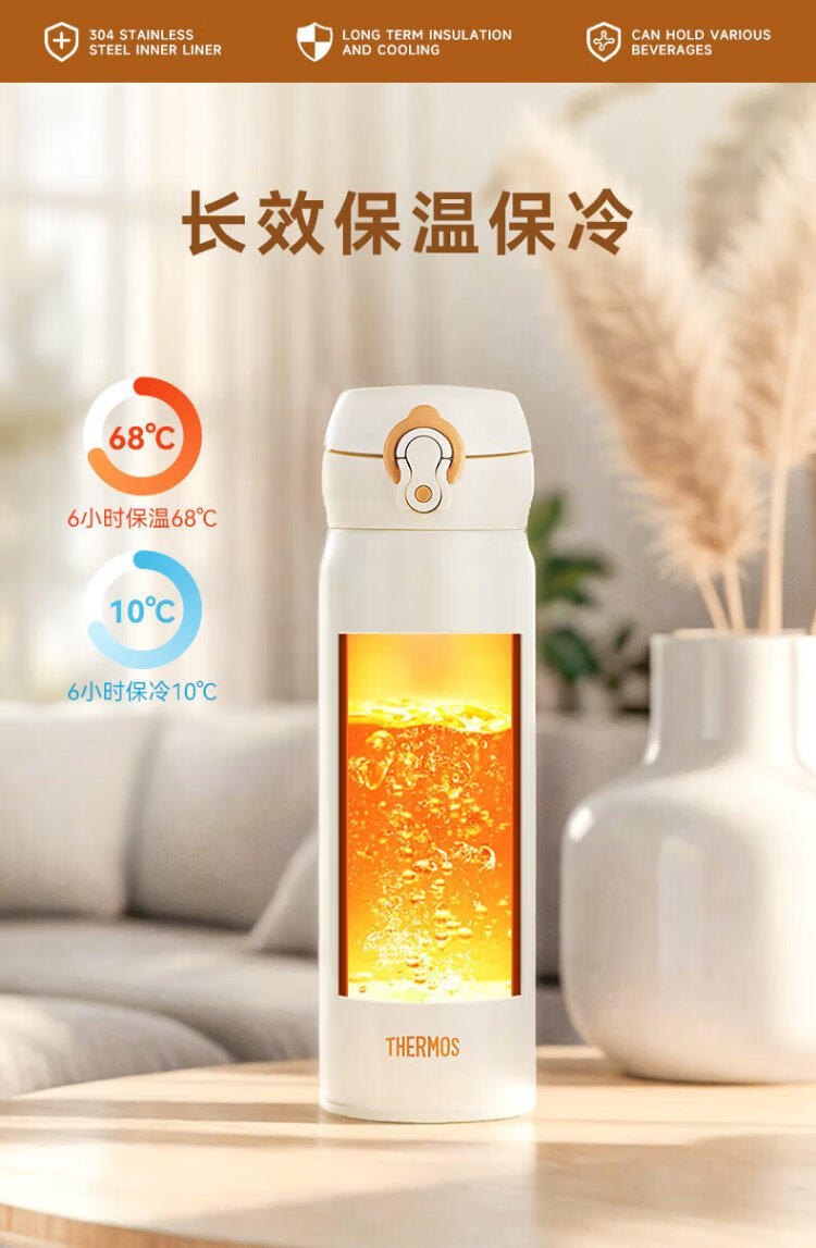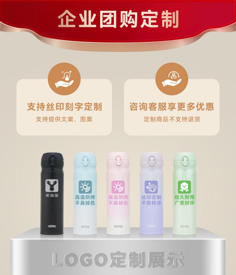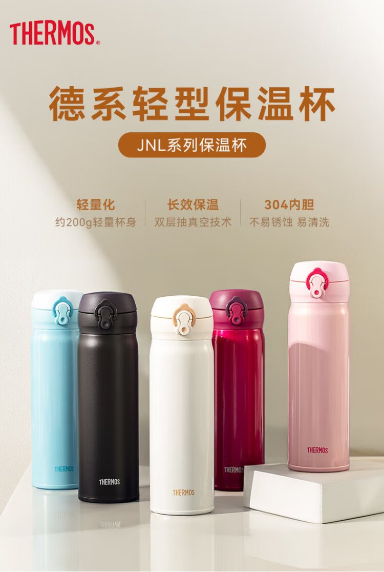膳魔师(THERMOS)保温杯不锈钢水杯儿童男女士杯子车载水杯生日礼物定制团购JNL 亮黑色 500ml