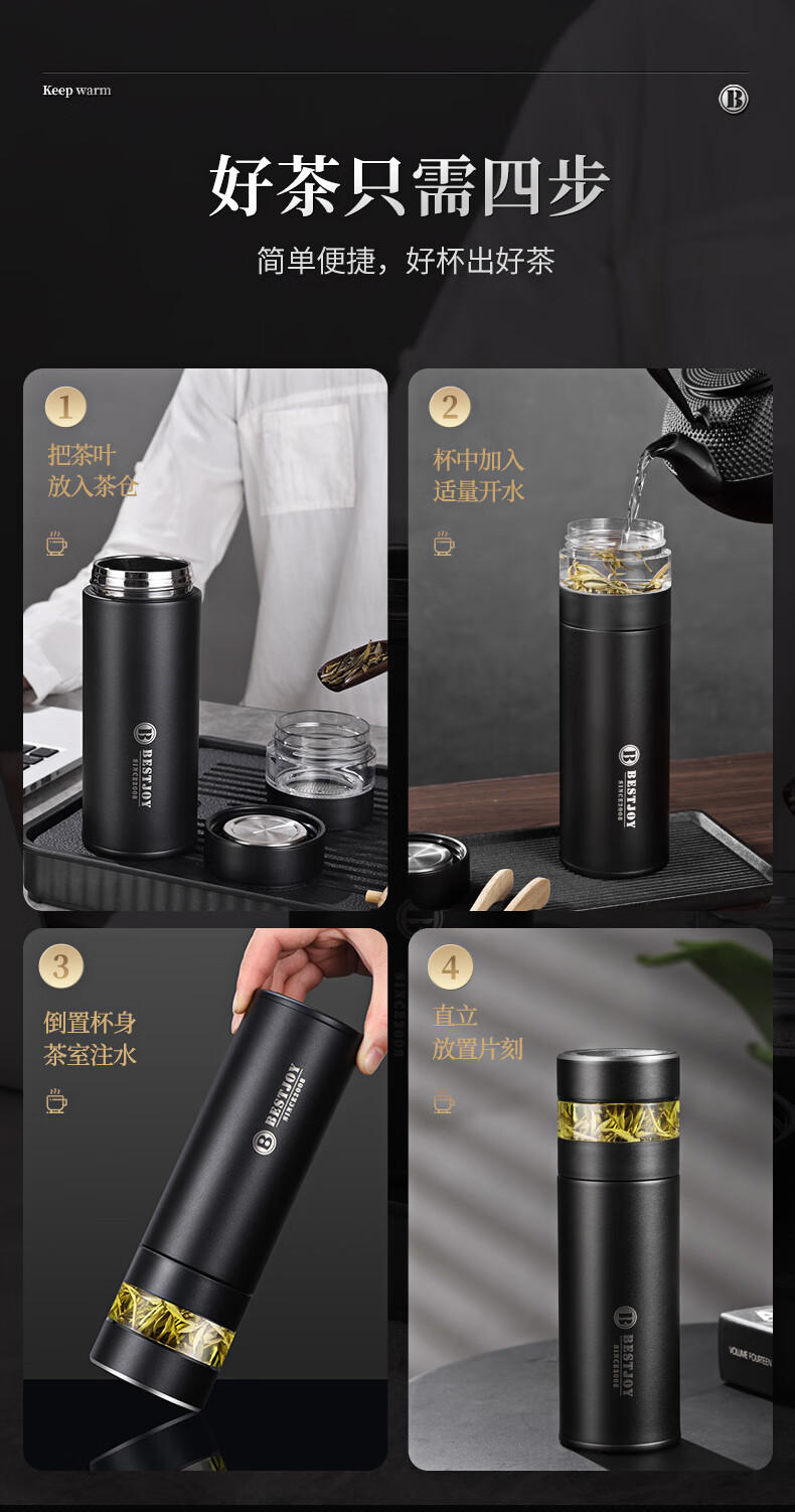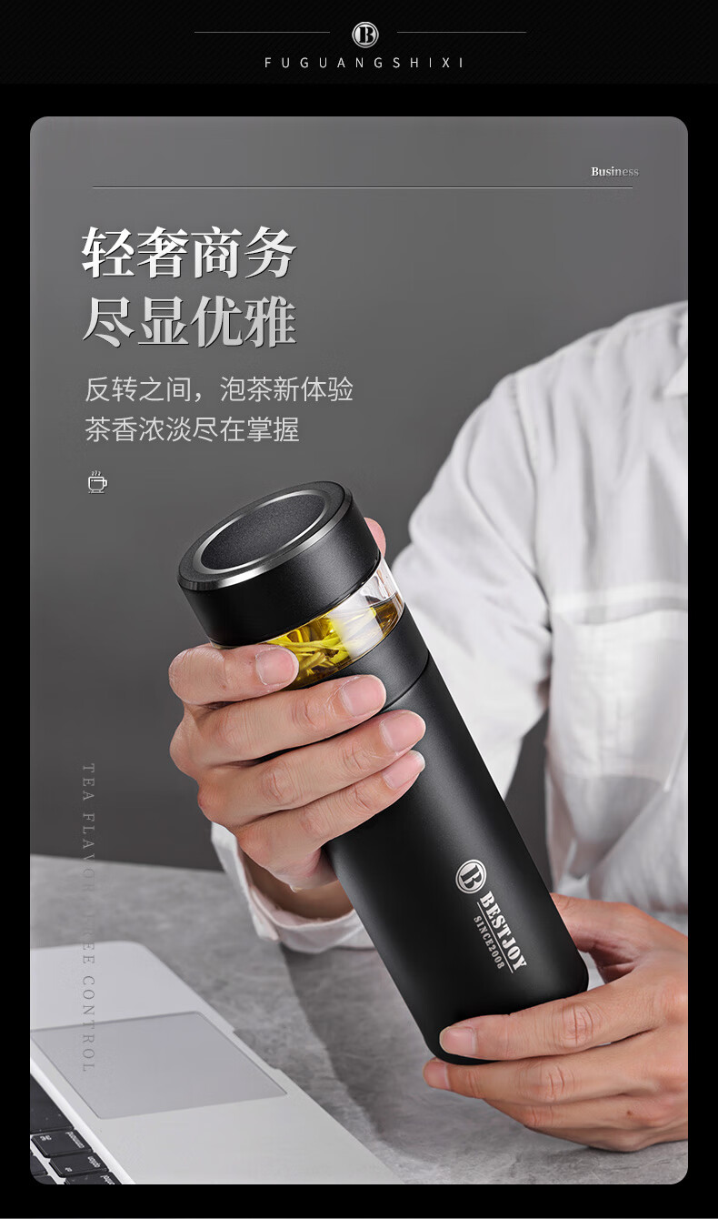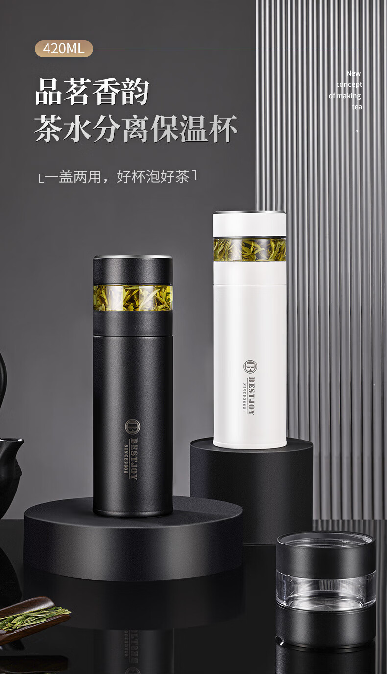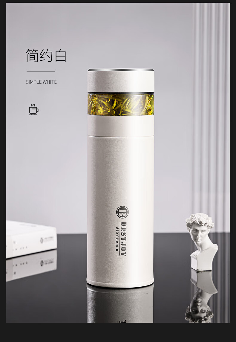 富光拾喜保温杯茶水分离水杯男士高档泡茶杯316不锈钢可礼品定制 白色(茶水分离)可定制 420ml