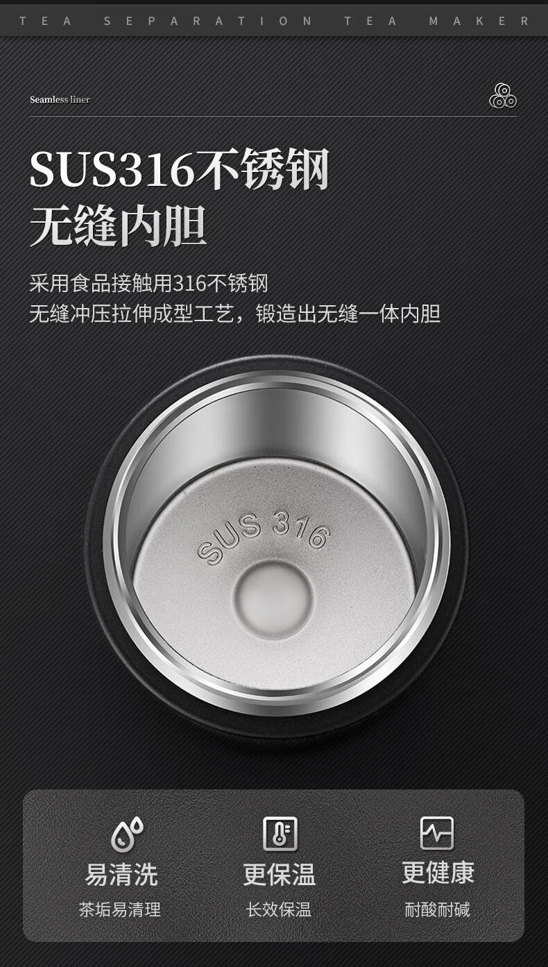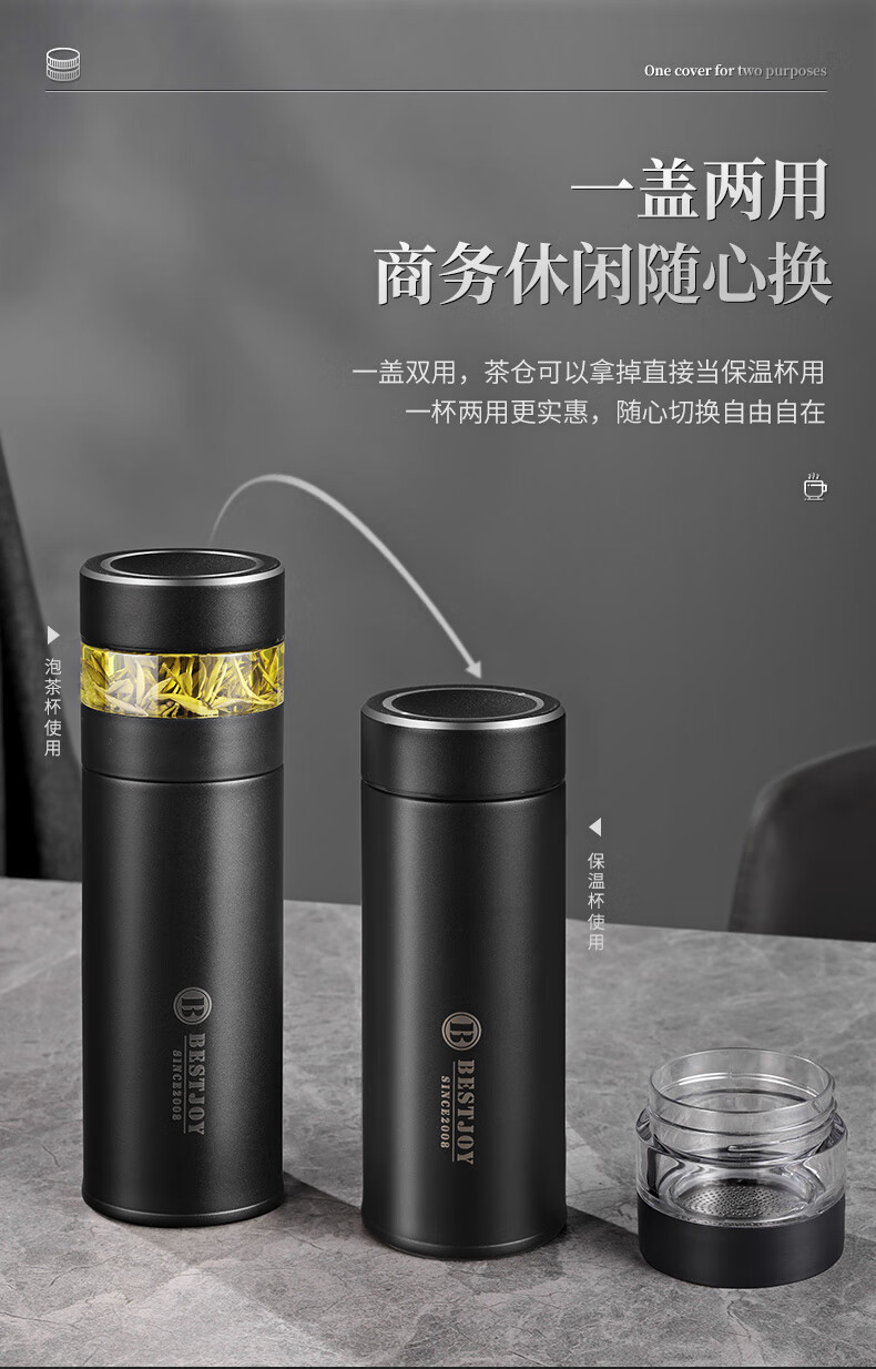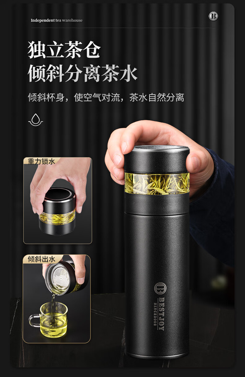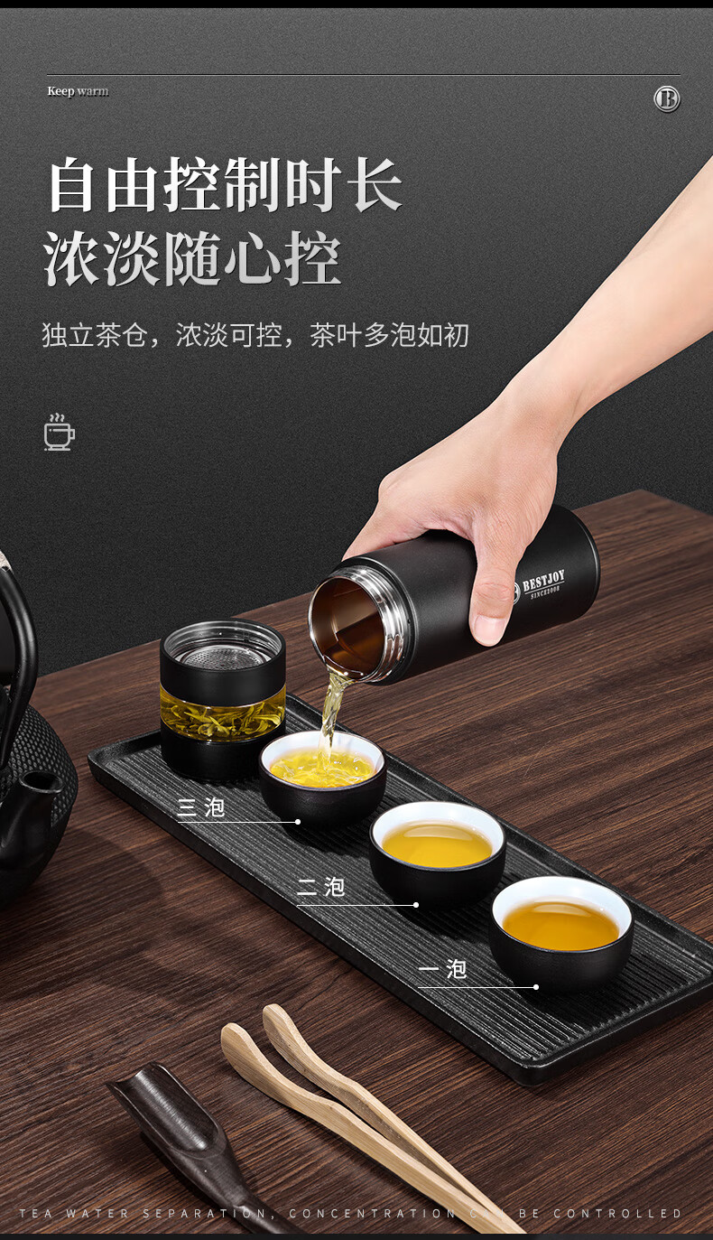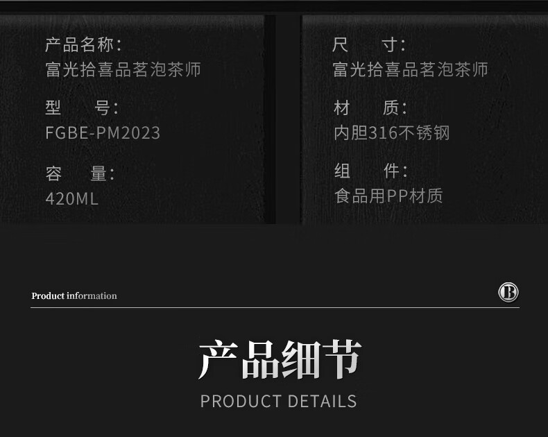 富光拾喜保温杯茶水分离水杯男士高档泡茶杯316不锈钢可礼品定制 白色(茶水分离)可定制 420ml