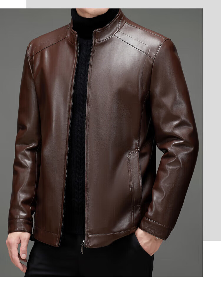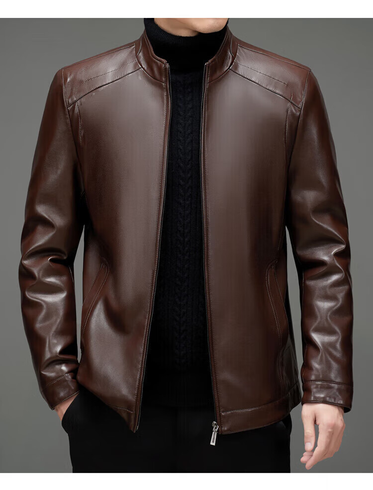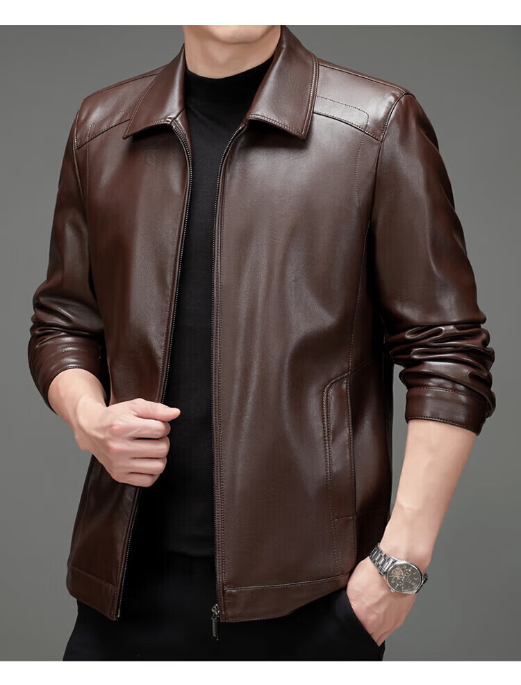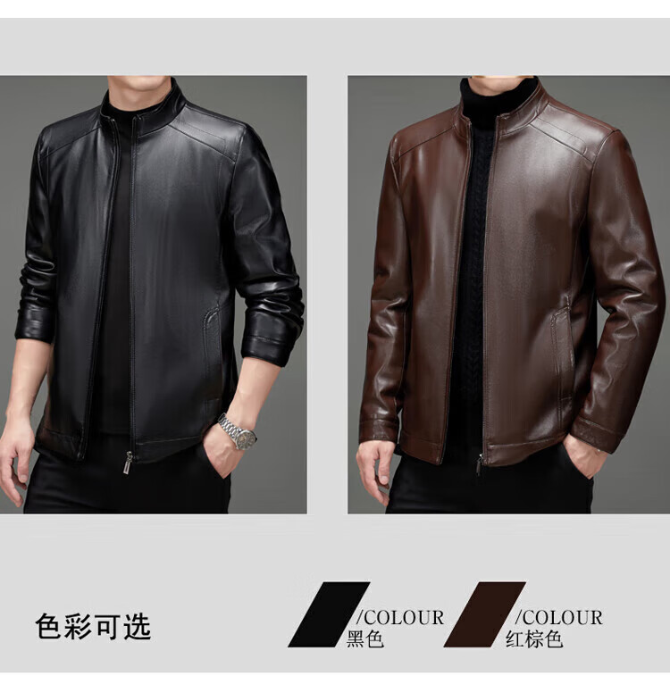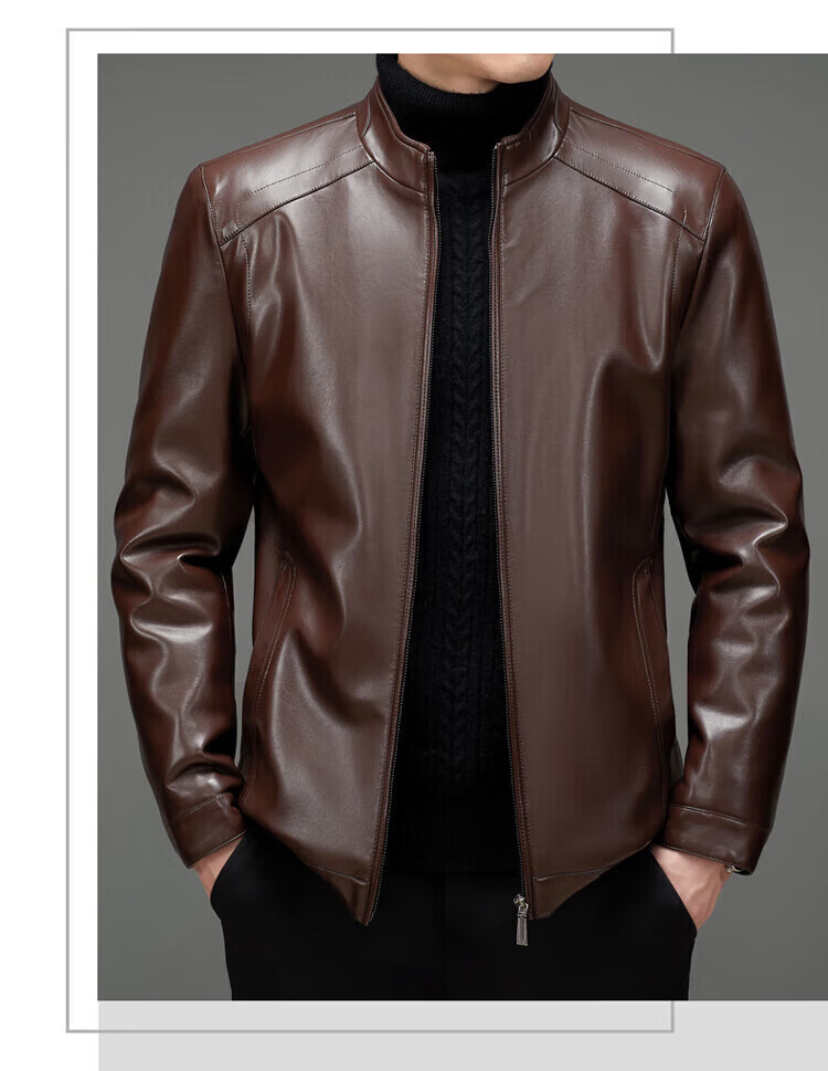 Кожаная куртка MONTAGUT Мужская весенне-осенняя куртка из овечьей кожи с лацканами Папина куртка среднего возраста с бархатным воротником-стойкой Кожаная куртка Красно-коричневая с воротником-стойкой 801 Стиль 175/L Рекомендуется 125-145 Джин Джин равен 0,5 кг