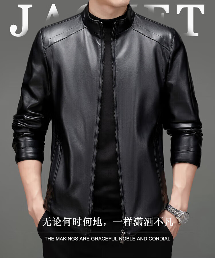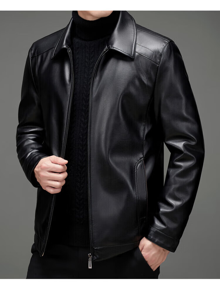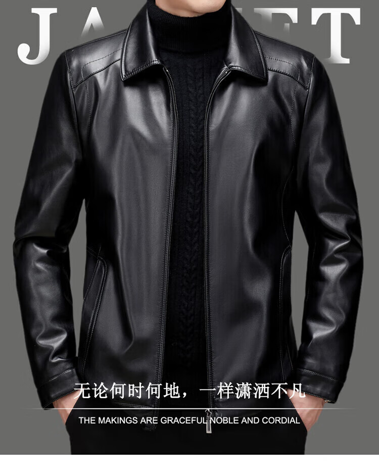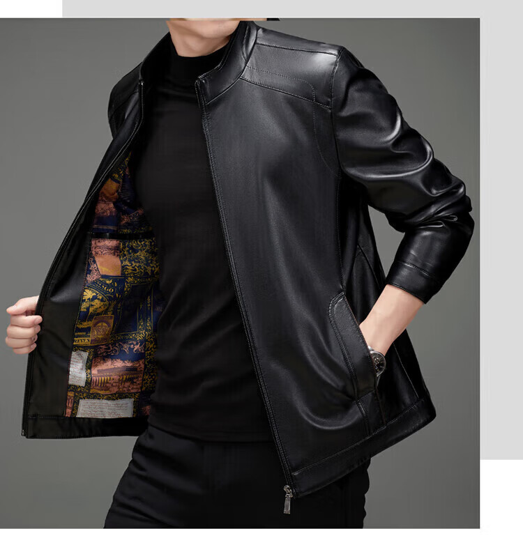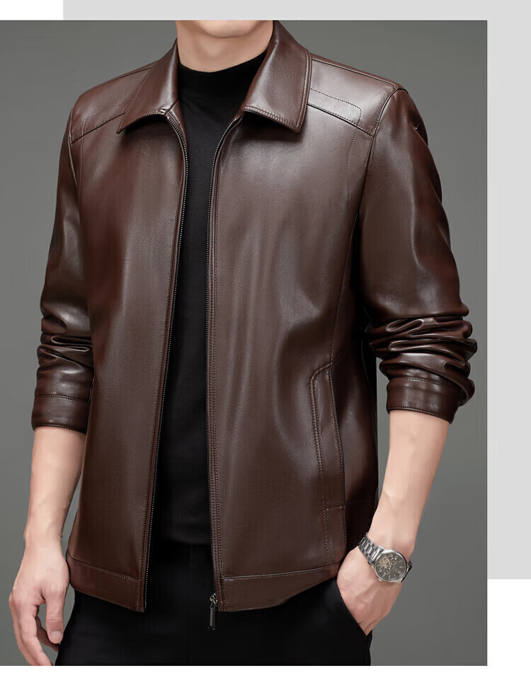 Кожаная куртка MONTAGUT Мужская весенне-осенняя куртка из овечьей кожи с лацканами Папина куртка среднего возраста с бархатным воротником-стойкой Кожаная куртка Красно-коричневая с воротником-стойкой 801 Стиль 175/L Рекомендуется 125-145 Джин Джин равен 0,5 кг