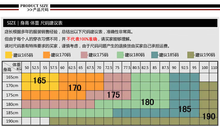 China (cm) 165 / 88-90 170 / 96-98 175 / 108-110 180 / 118-122 185 / 126-130