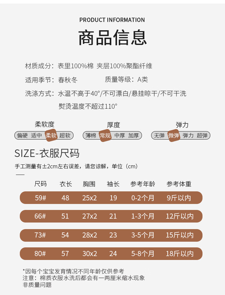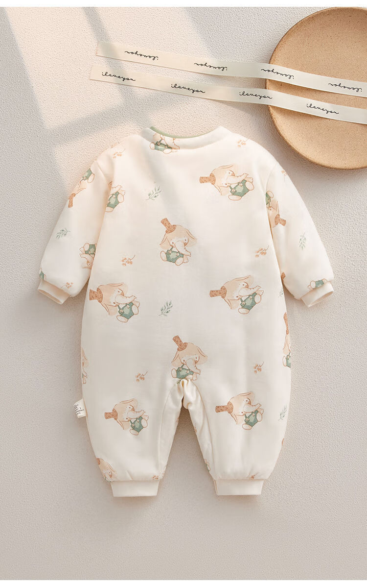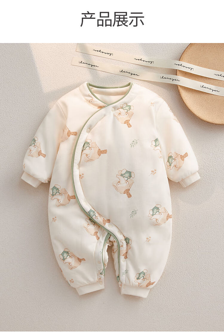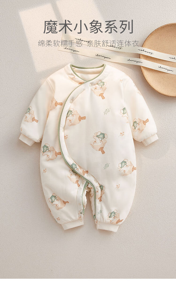 JOYNCLEON Newborn baby one-piece autumn and winter type A newborn baby full moon thickened quilted clothes to keep warm Magic Elephant 59cm