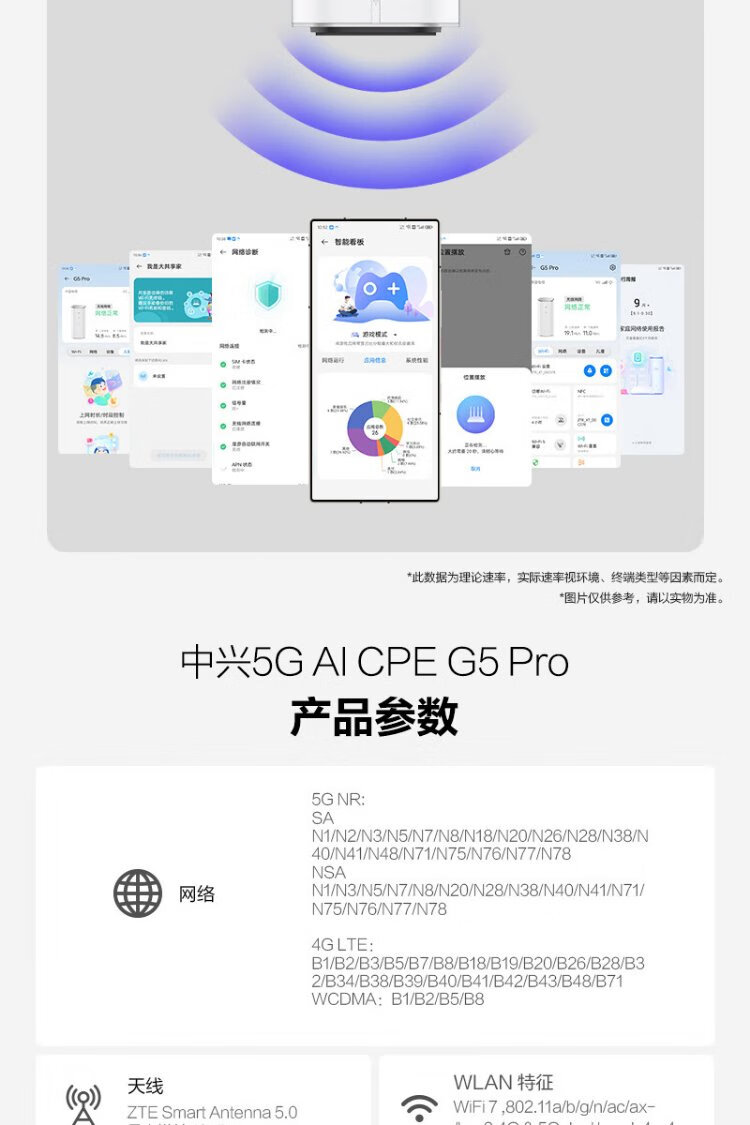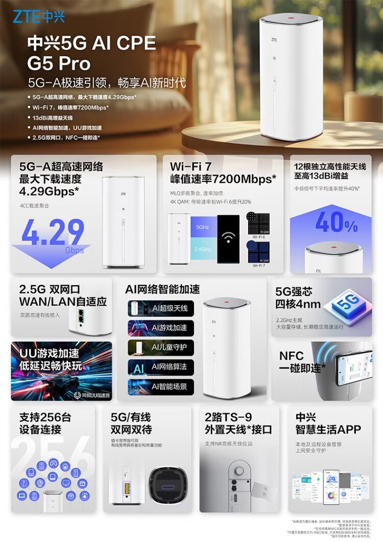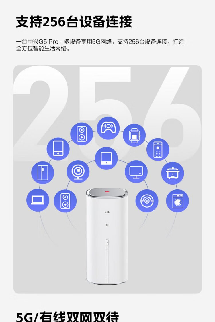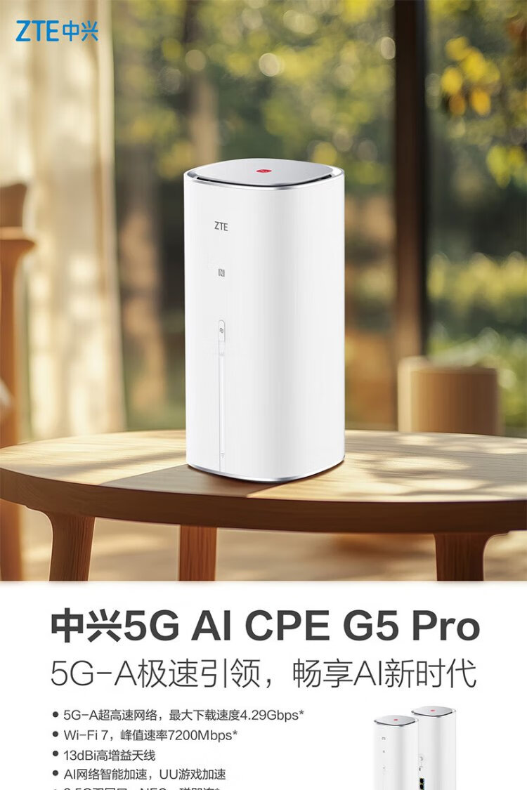 中兴G5 Pro 5G CPE MC8512移动随身WIFI7全网通企业工业级路由器插卡上网/2.5G网口/无线宽带/办公直播 中兴G5 pro+一年套餐 | 月享1500g 【2024旗舰新品】送1500G体验流量
