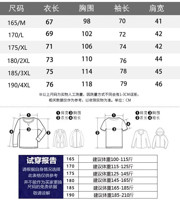 China (cm) 165 / 88-90 170 / 96-98 175 / 108-110 180 / 118-122 185 / 126-130