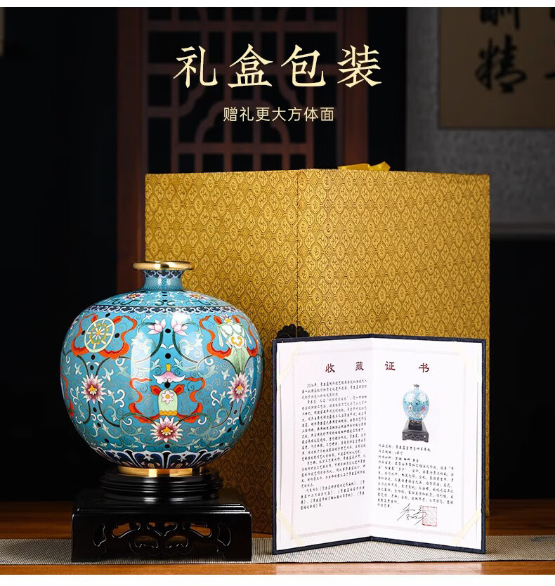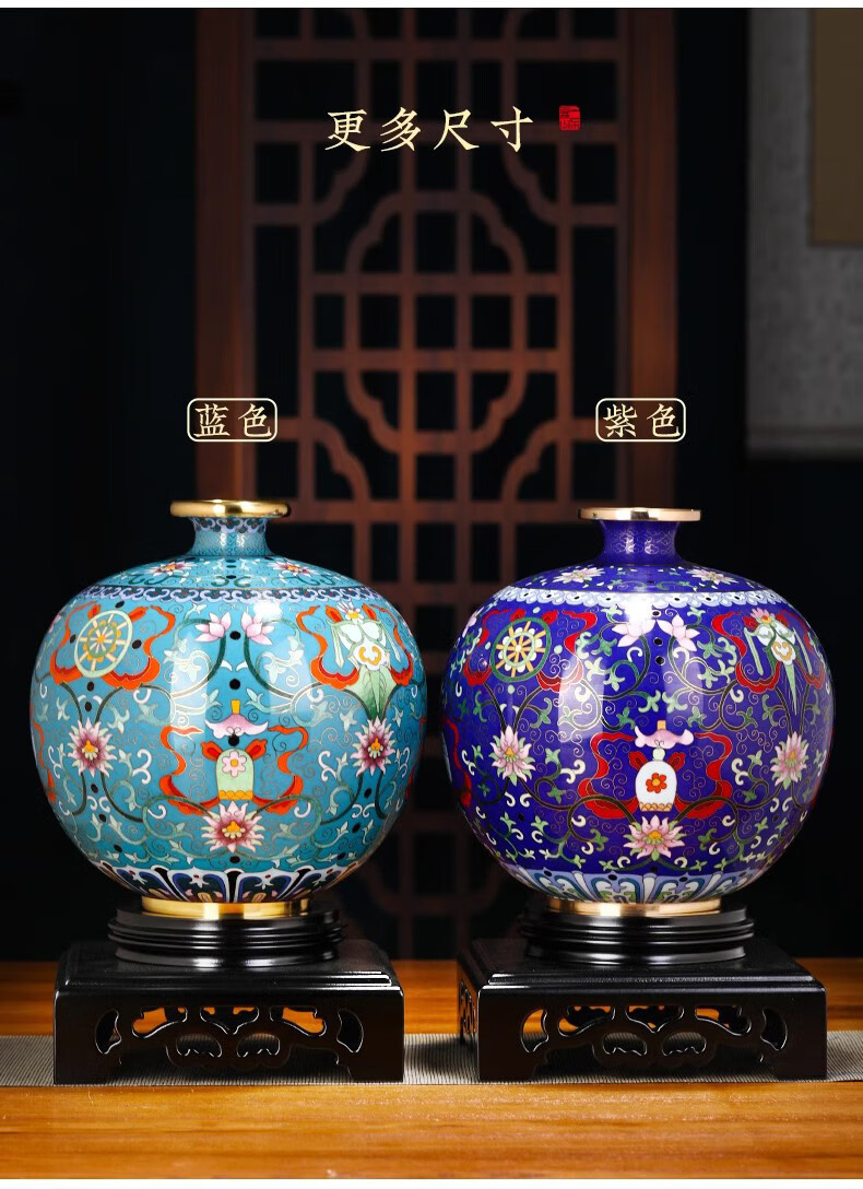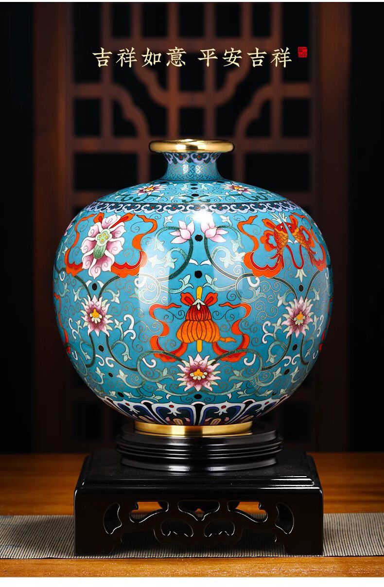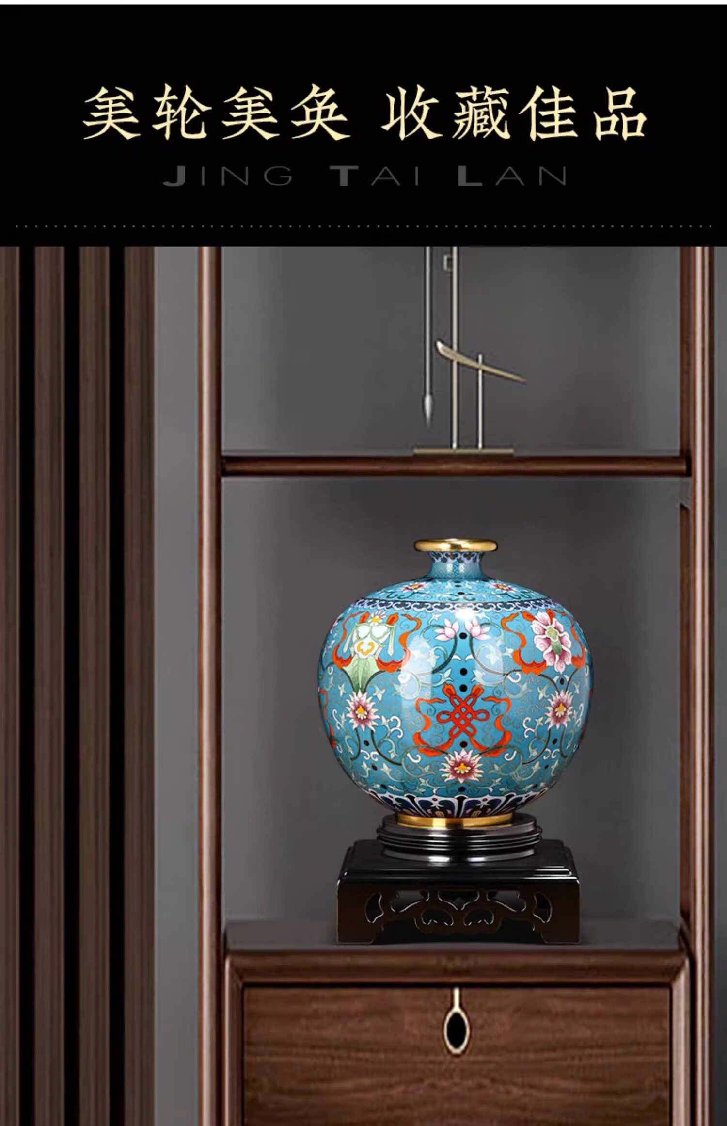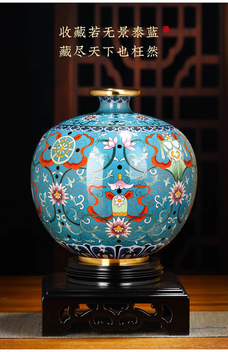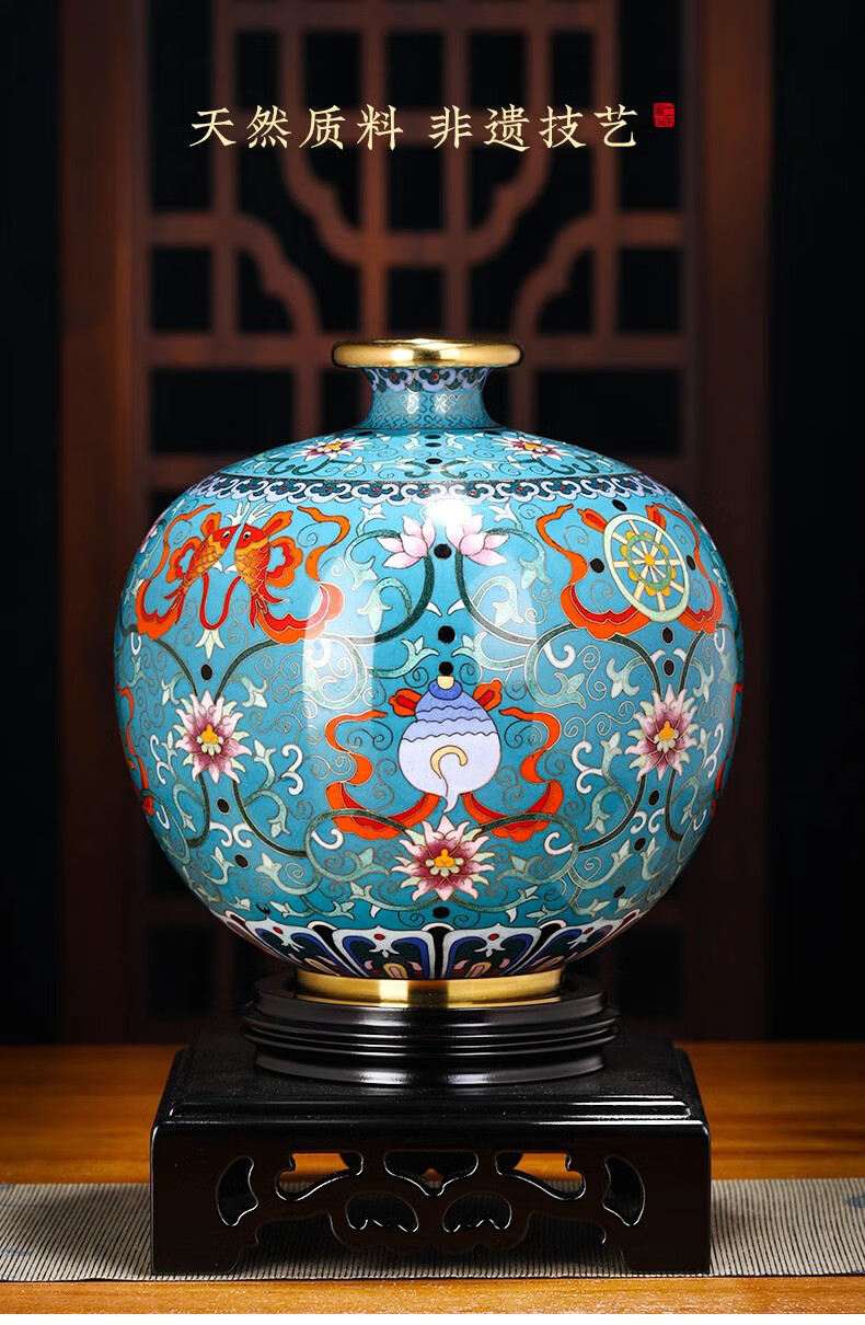 Liuqing cloisonné vase ornaments featured enamel handicraft collectibles office ornaments leadership high-end business gifts cloisonné rich and auspicious sky blue