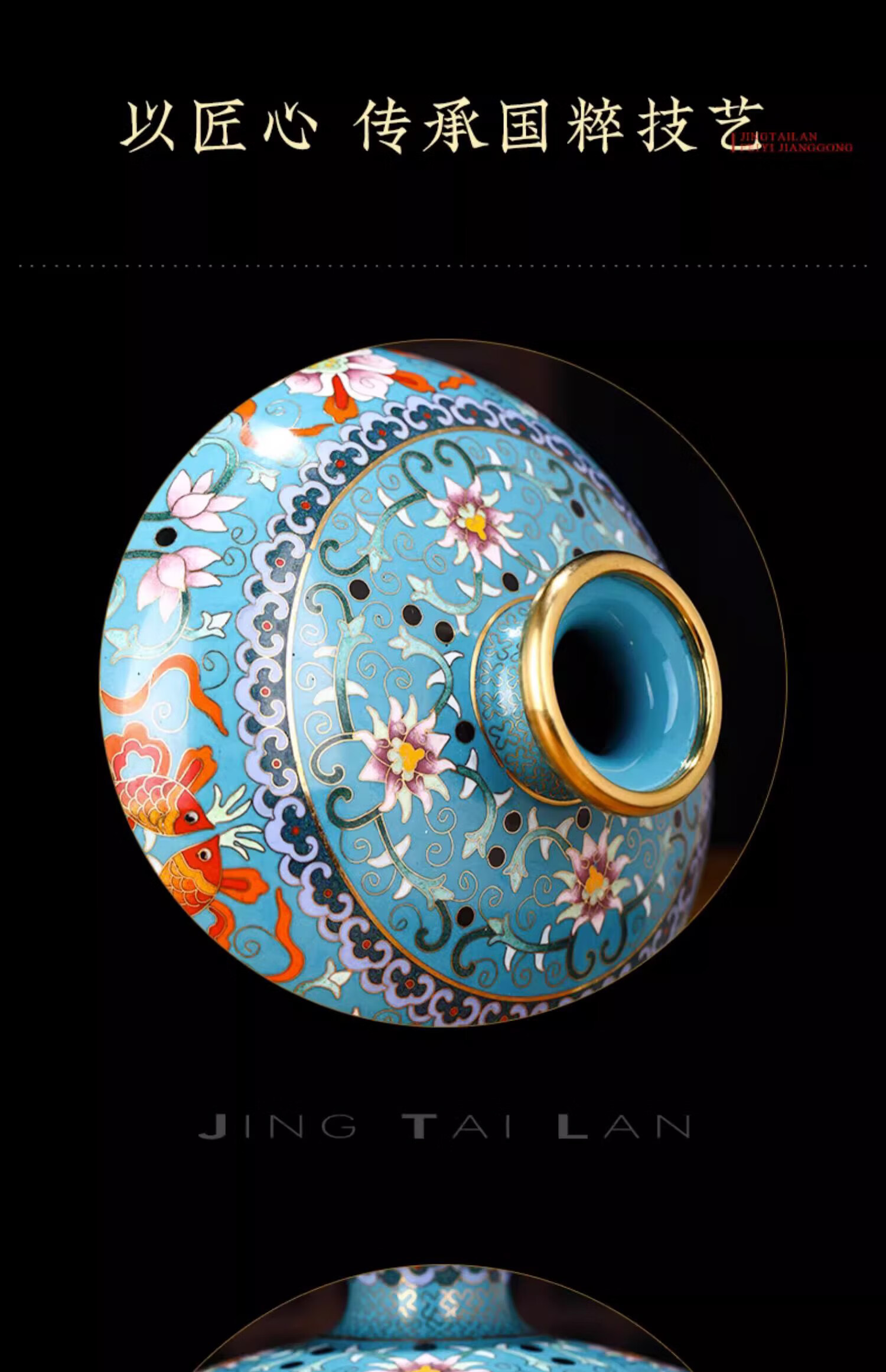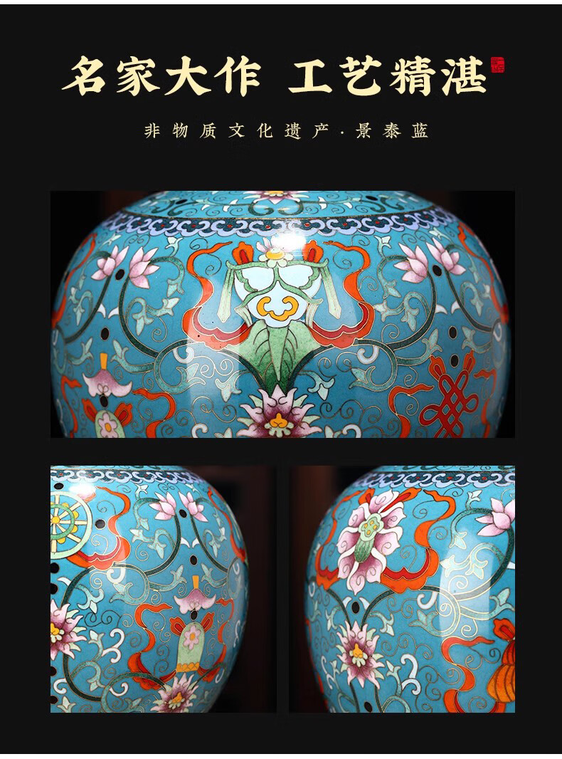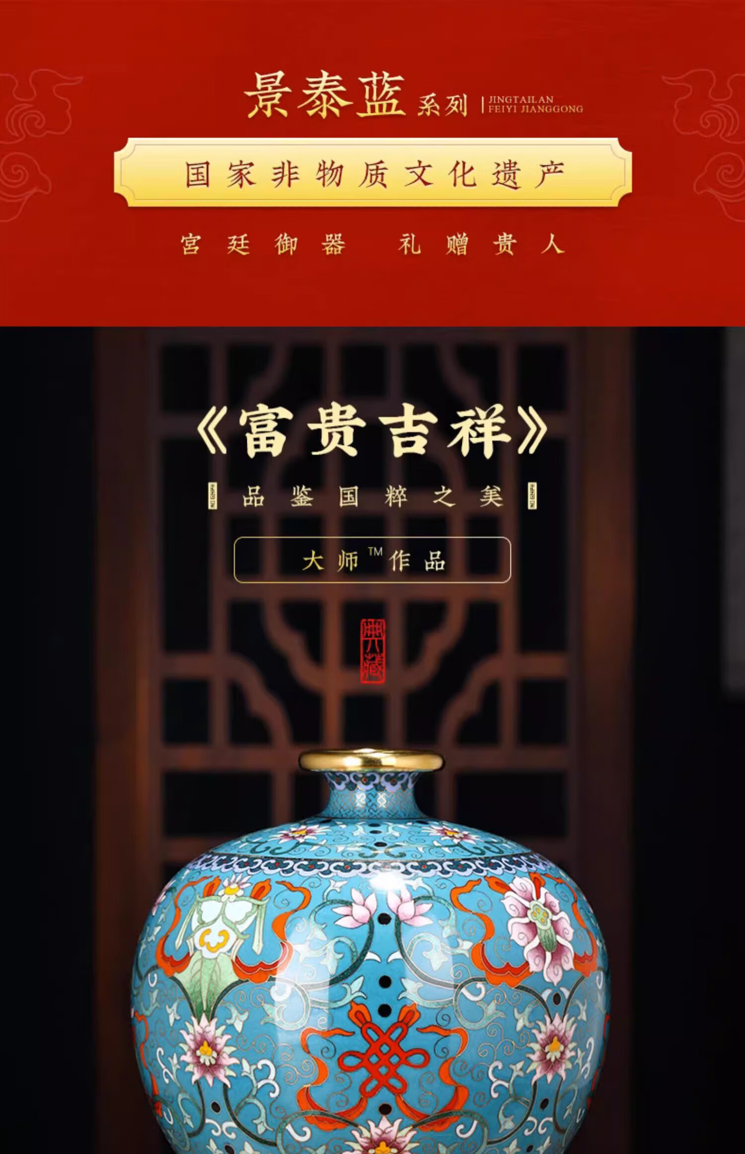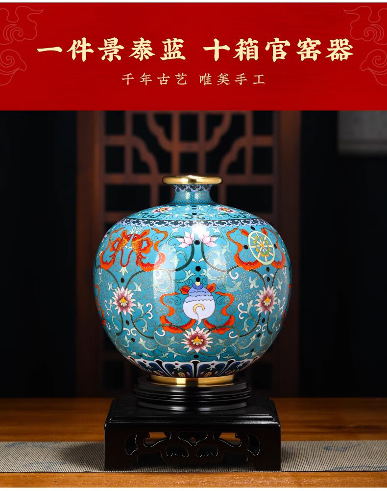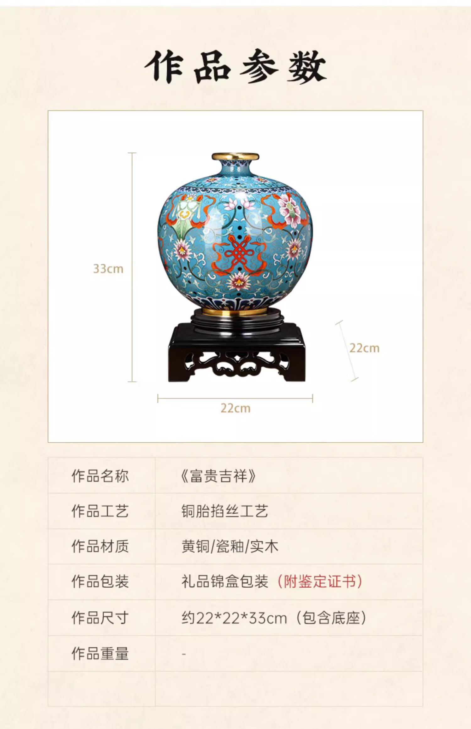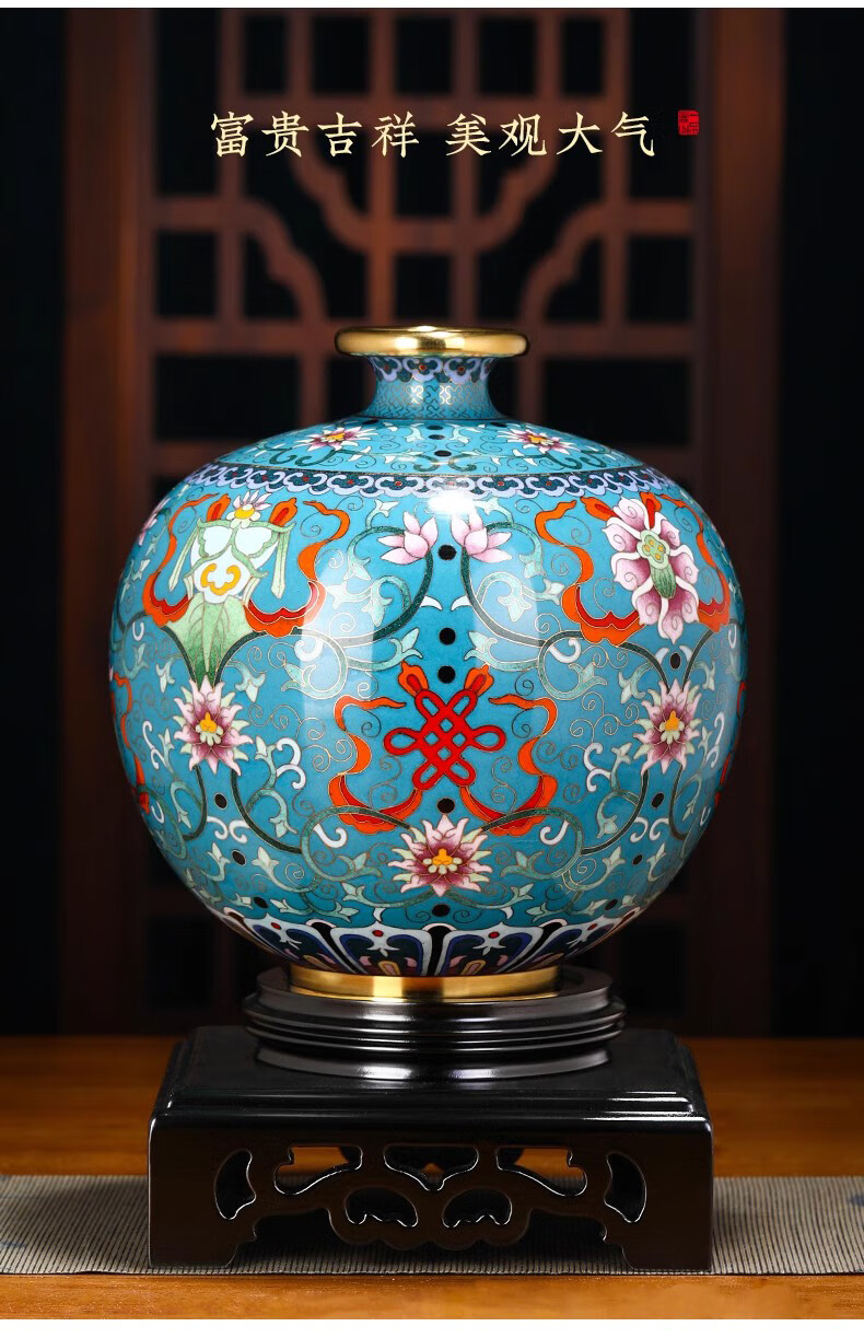 Liuqing cloisonné vase ornaments featured enamel handicraft collectibles office ornaments leadership high-end business gifts cloisonné rich and auspicious sky blue
