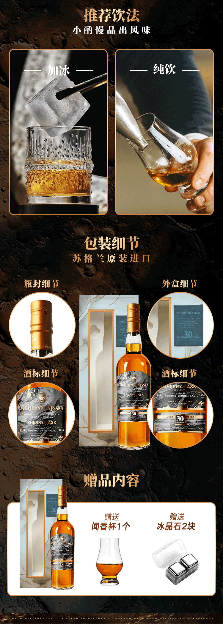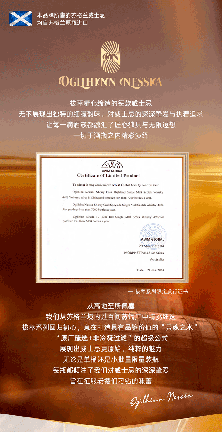 Ogilhinn Nessia Global Limited Loch Loman Imported 30-Year-Old Single Grain Sherry Whiskey Gift 6 Bottles