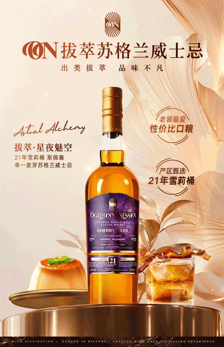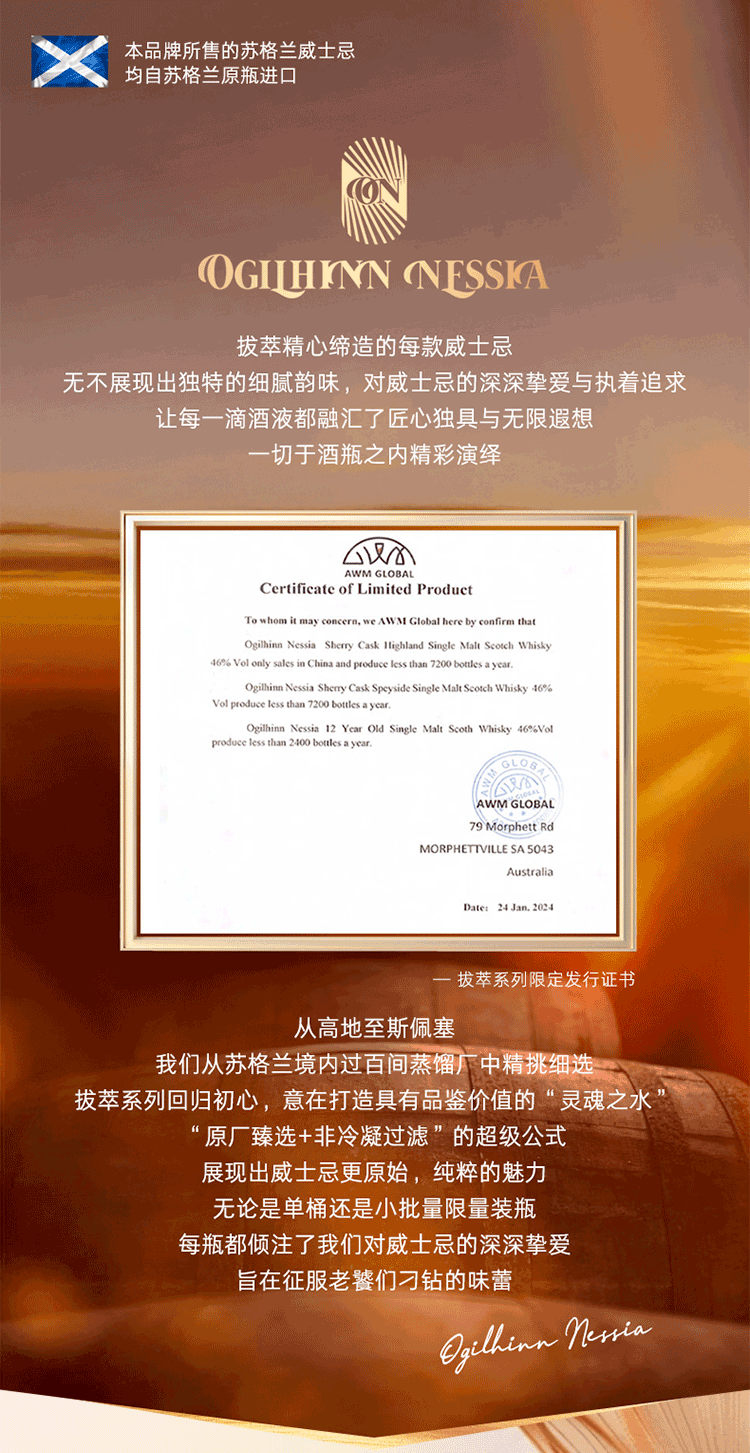 Ogilhinn Nessia Global Limited Scotch Original Imported 21 Years Single Malt Sherry Whiskey Gift 2 Bottles