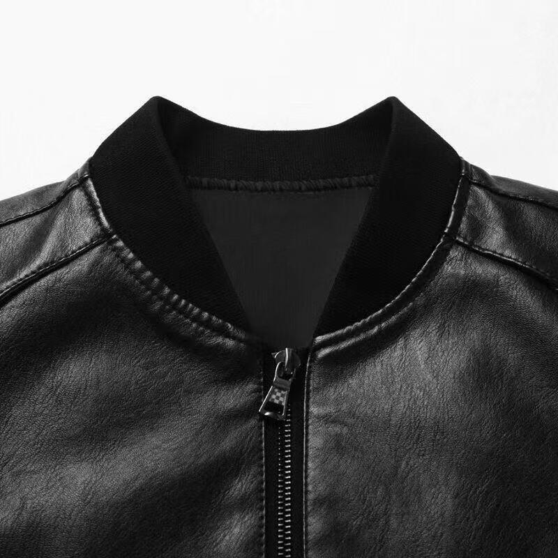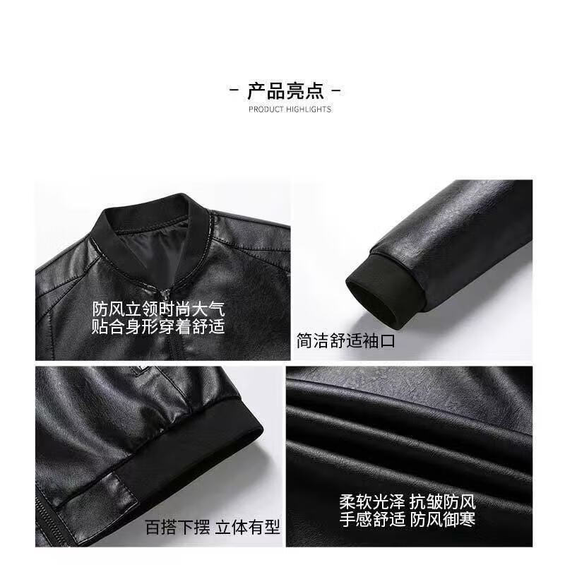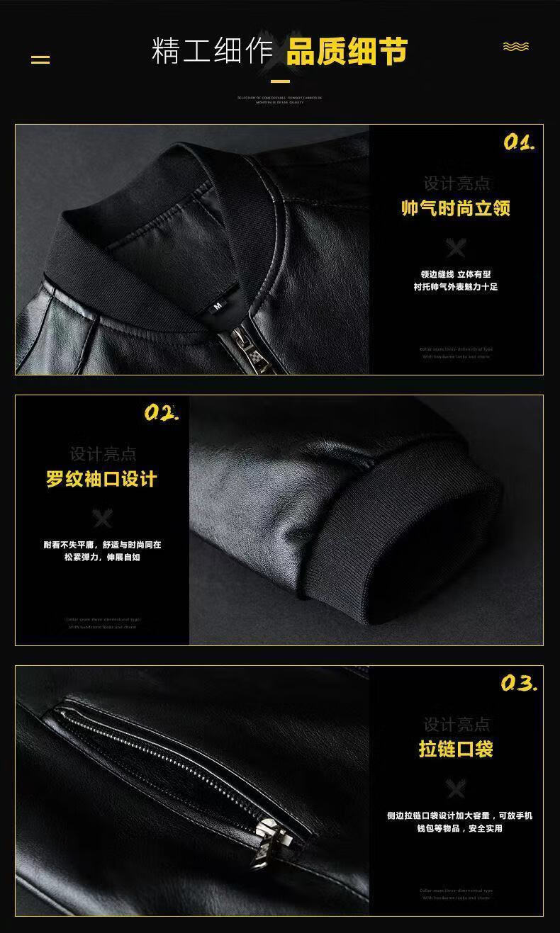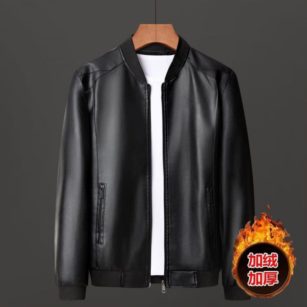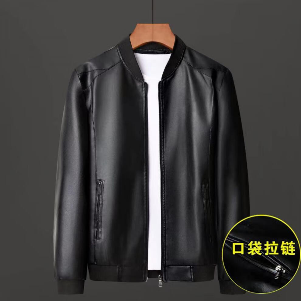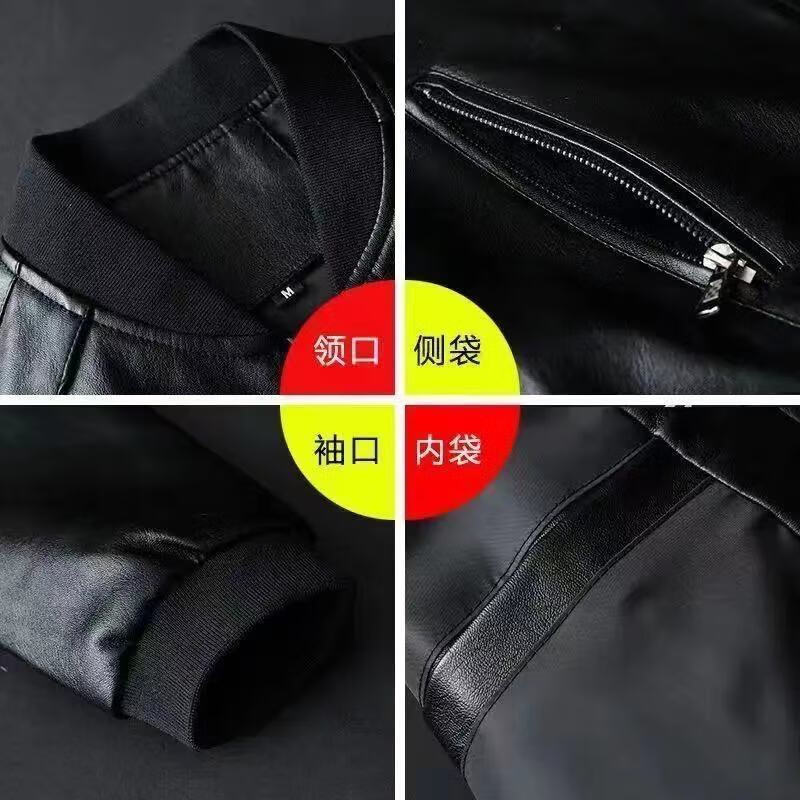 贤哲逸海宁皮衣春秋款外套休闲宽松冬季加绒加厚男士皮夹克 棒球服黑色春秋单衣 适合体重120-135斤-175