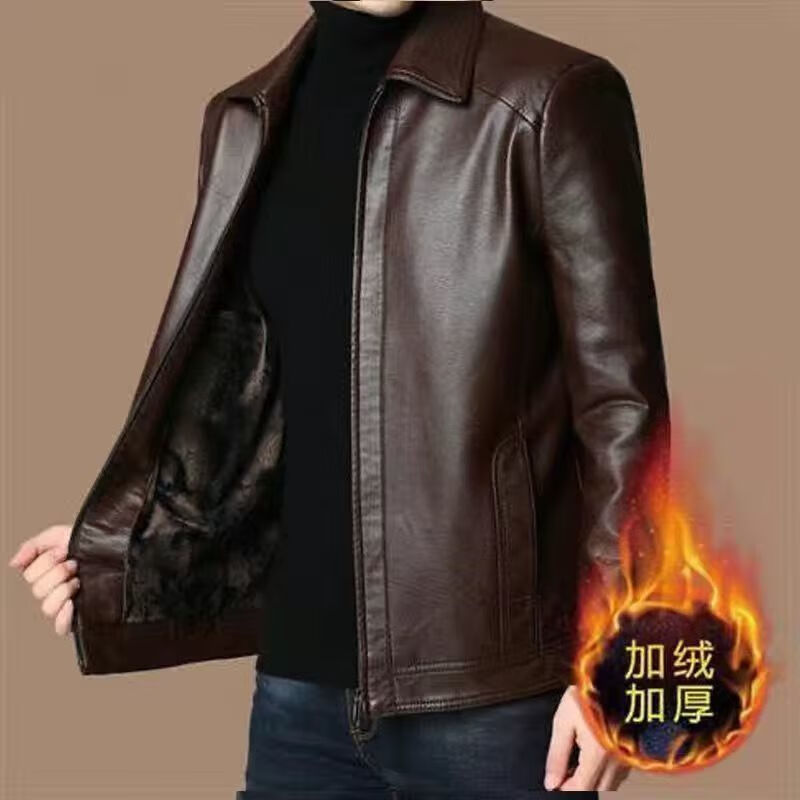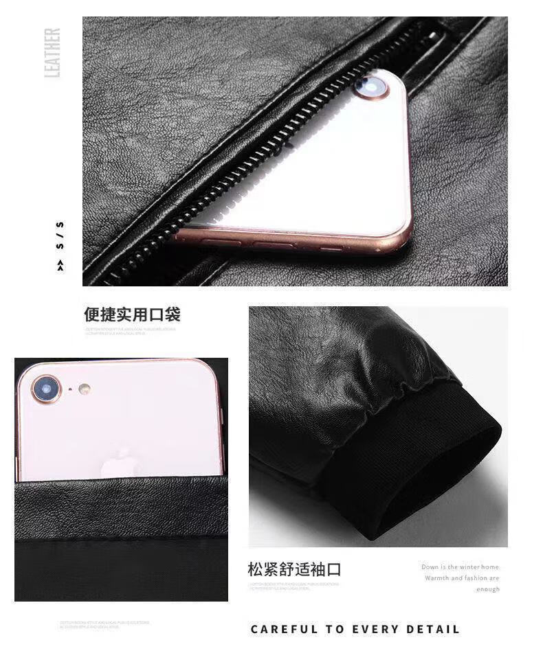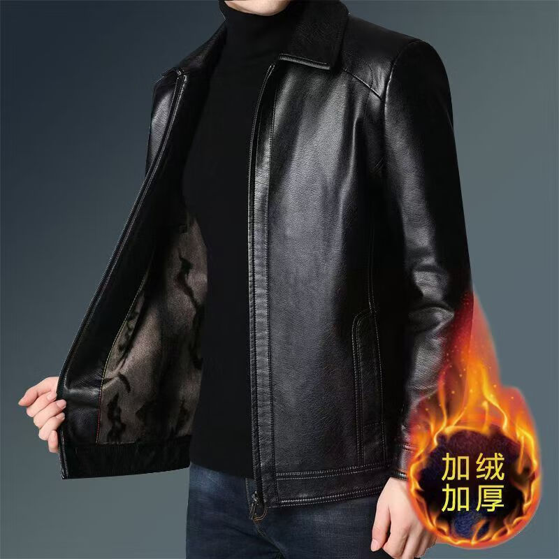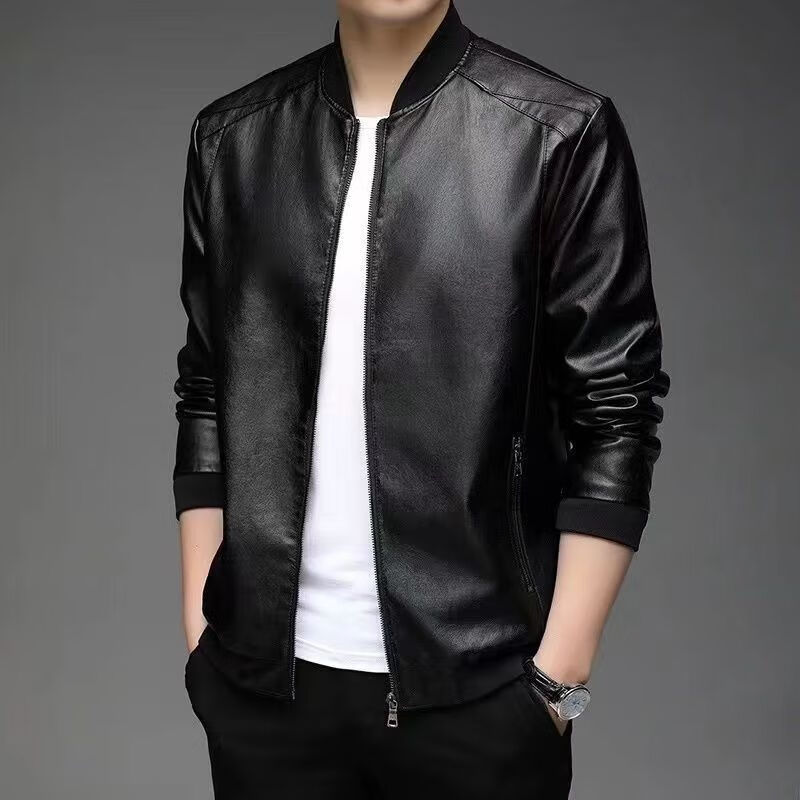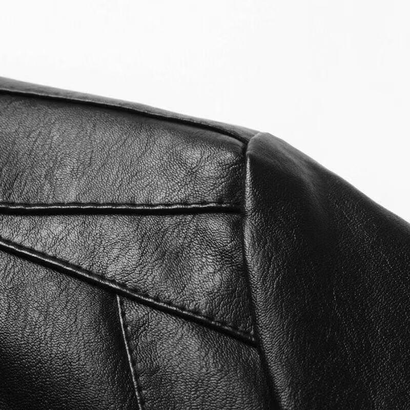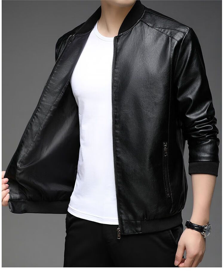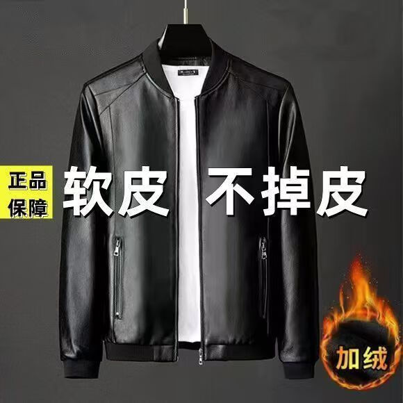 贤哲逸海宁皮衣春秋款外套休闲宽松冬季加绒加厚男士皮夹克 棒球服黑色春秋单衣 适合体重120-135斤-175
