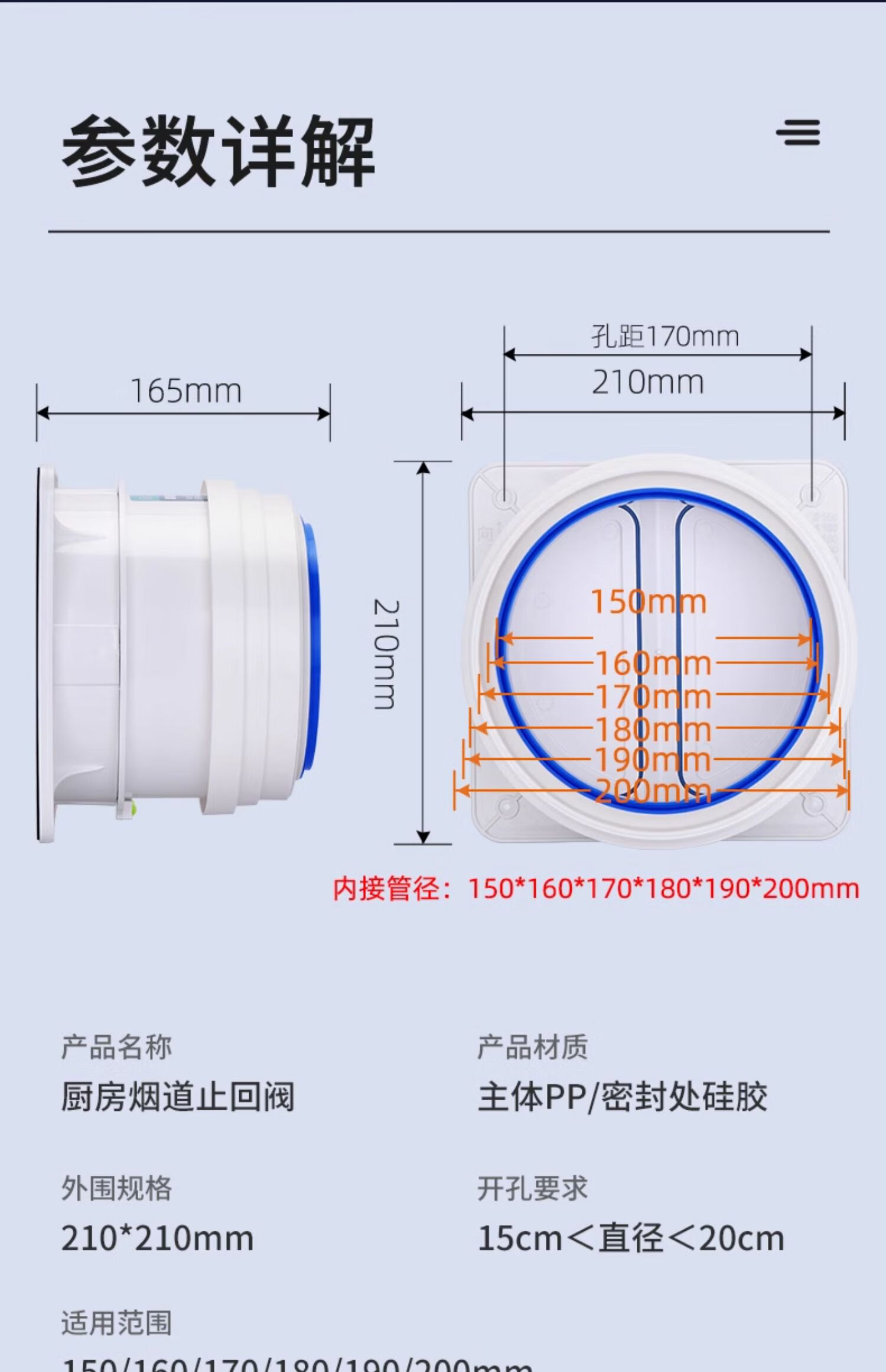 方太抽油烟机适用止逆阀厨房烟道专用止回阀卫生间排烟管防烟宝止烟阀 [经典款]厨房通用
