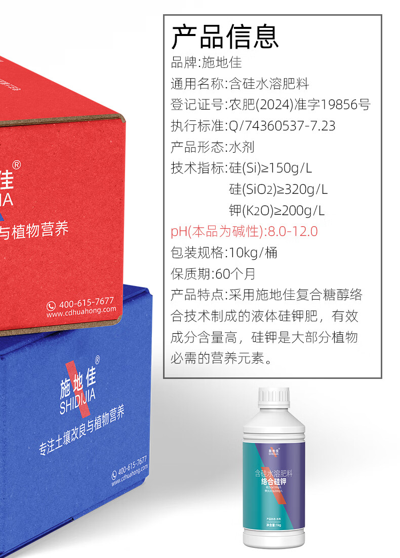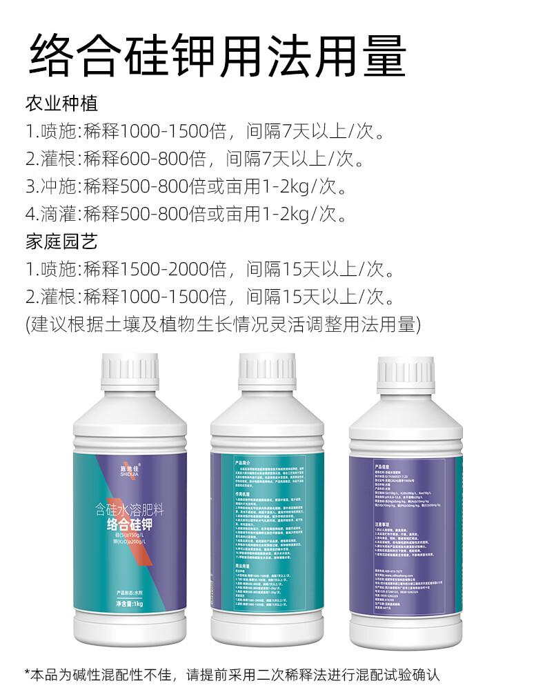 施地佳络合硅钾肥螯合高硅高钾叶面肥果树蔬菜水稻小麦玉米农用水溶肥料 络合硅钾1kg*2瓶