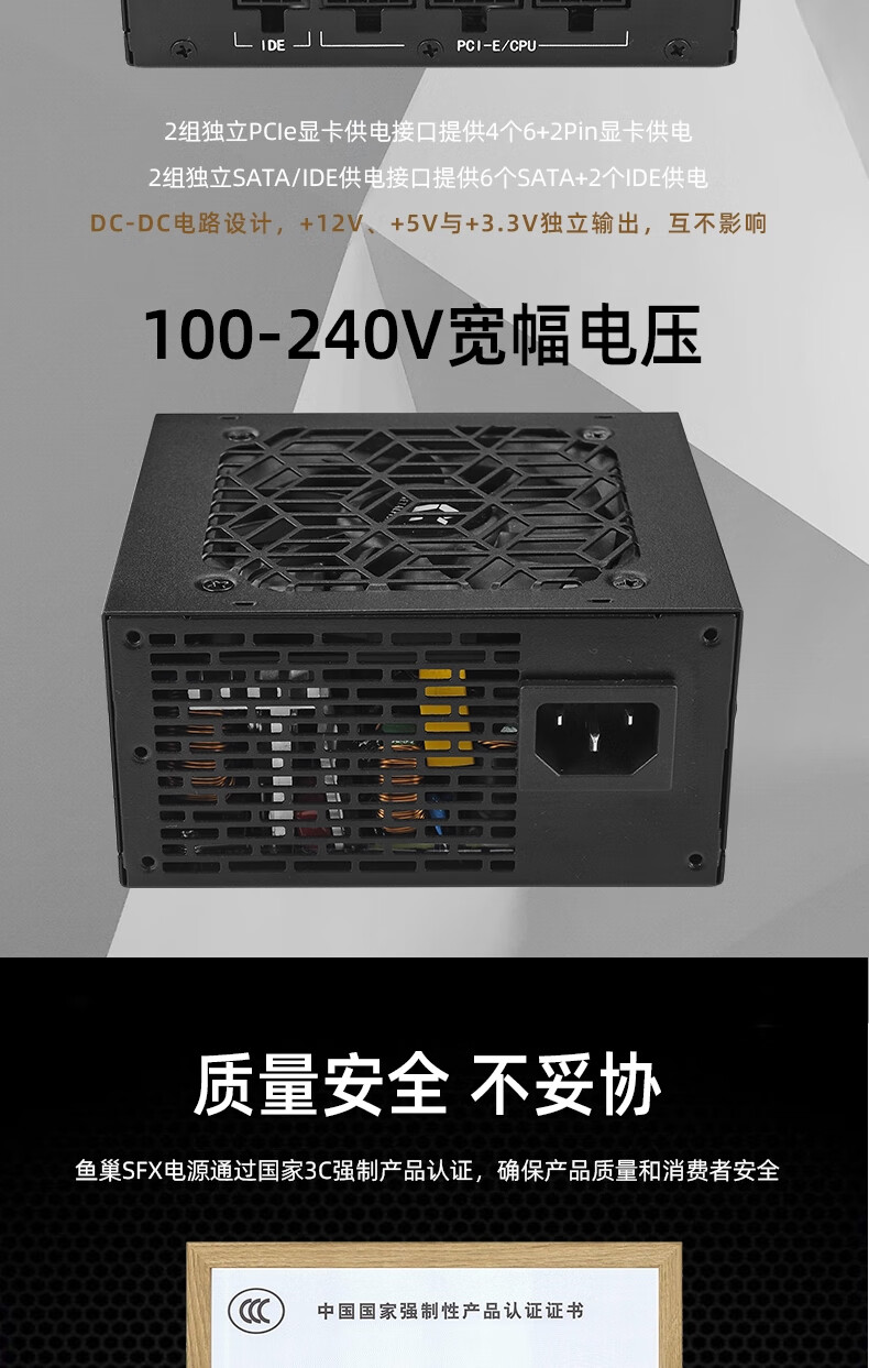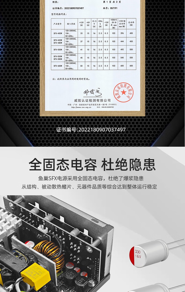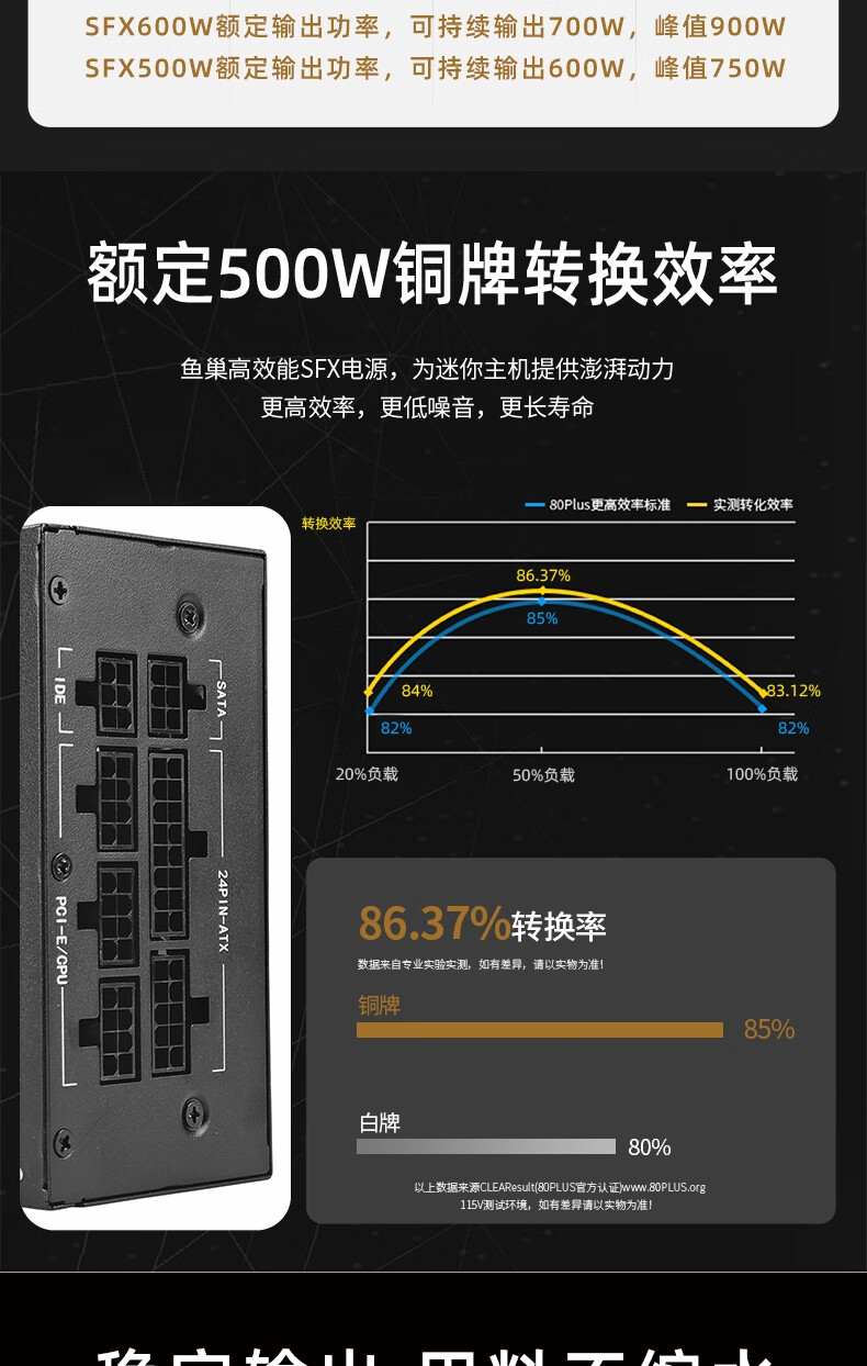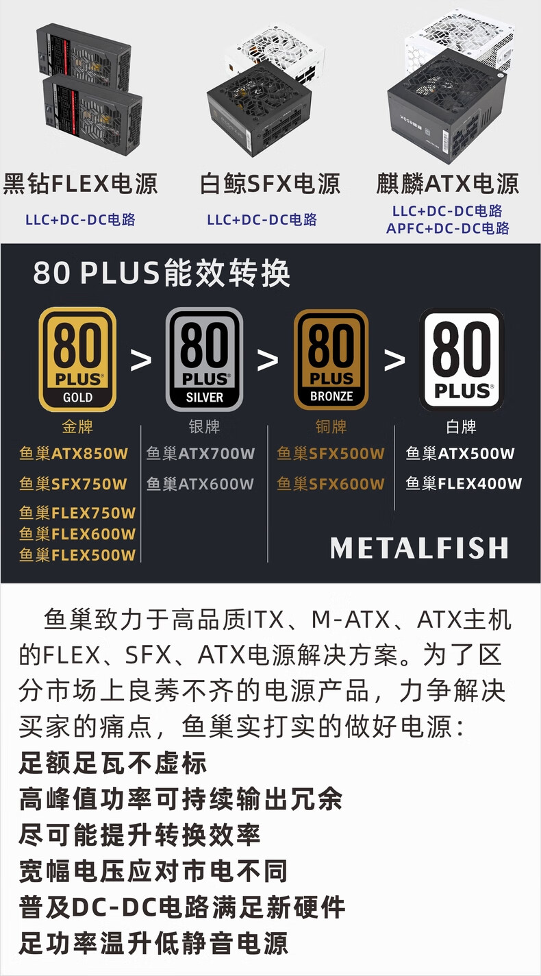 鱼巢(metalfish)SFX电源额定500W全模组白色持续600W峰值750W铜牌ITX迷你小机箱电源 SFX600W全模组黑【铜牌认证 质保5年】