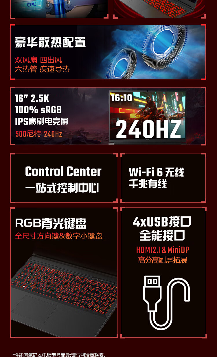 宏碁(acer)暗影骑士·擎6/擎7 16英寸游戏本电脑学生设计AI绘图编程剪辑RTX4060/5060高性能游戏笔记本电脑 i7-14650HX RTX4060 2.5K240Hz 16G内存 1TB高速固态硬盘|标配