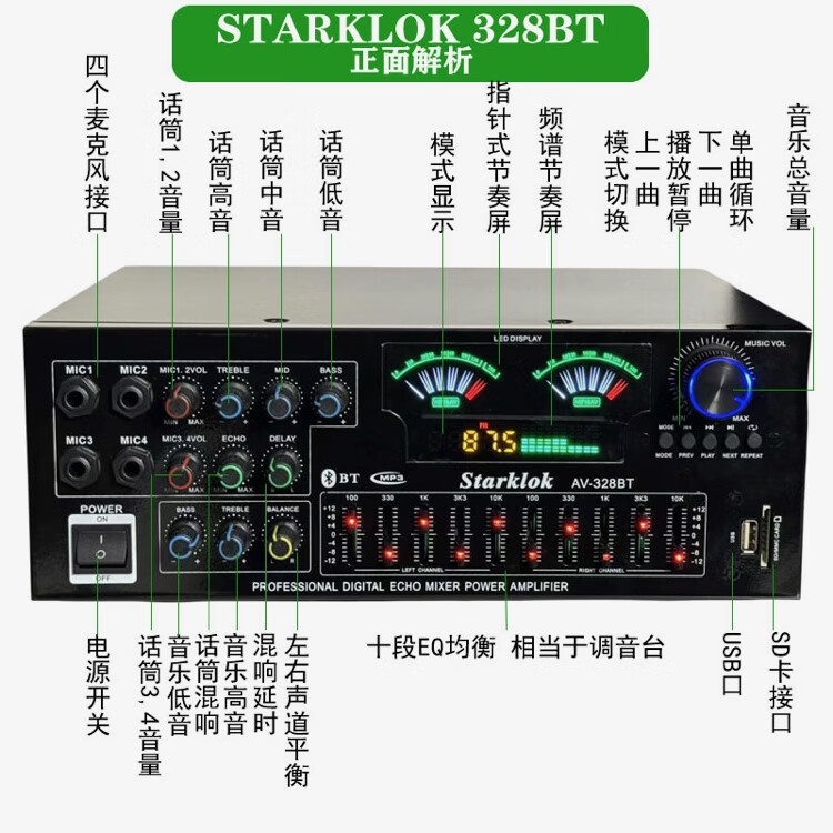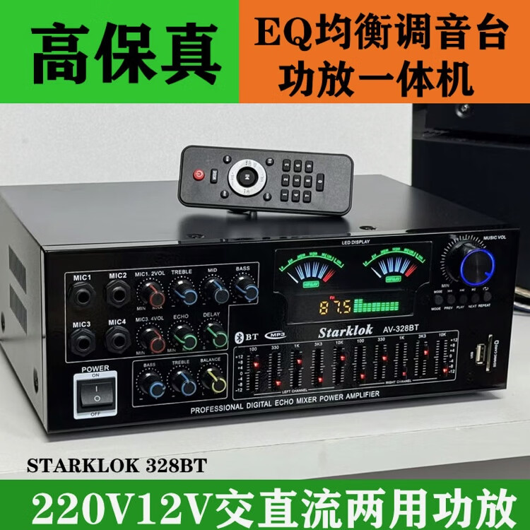 StarklokAV328BT-220v12v dual-purpose power amplifier home Bluetooth power amplifier karaoke conference audio power amplifier AV328BT