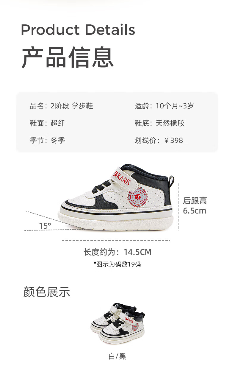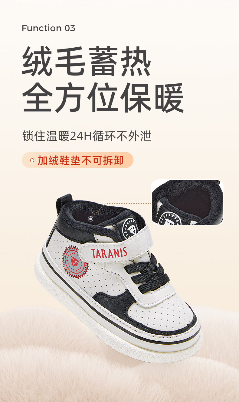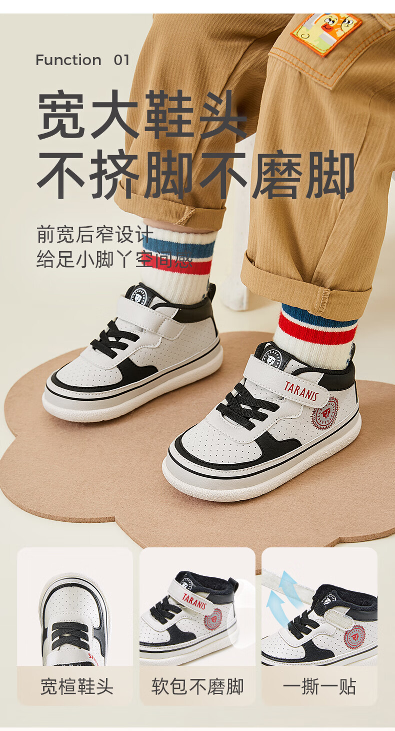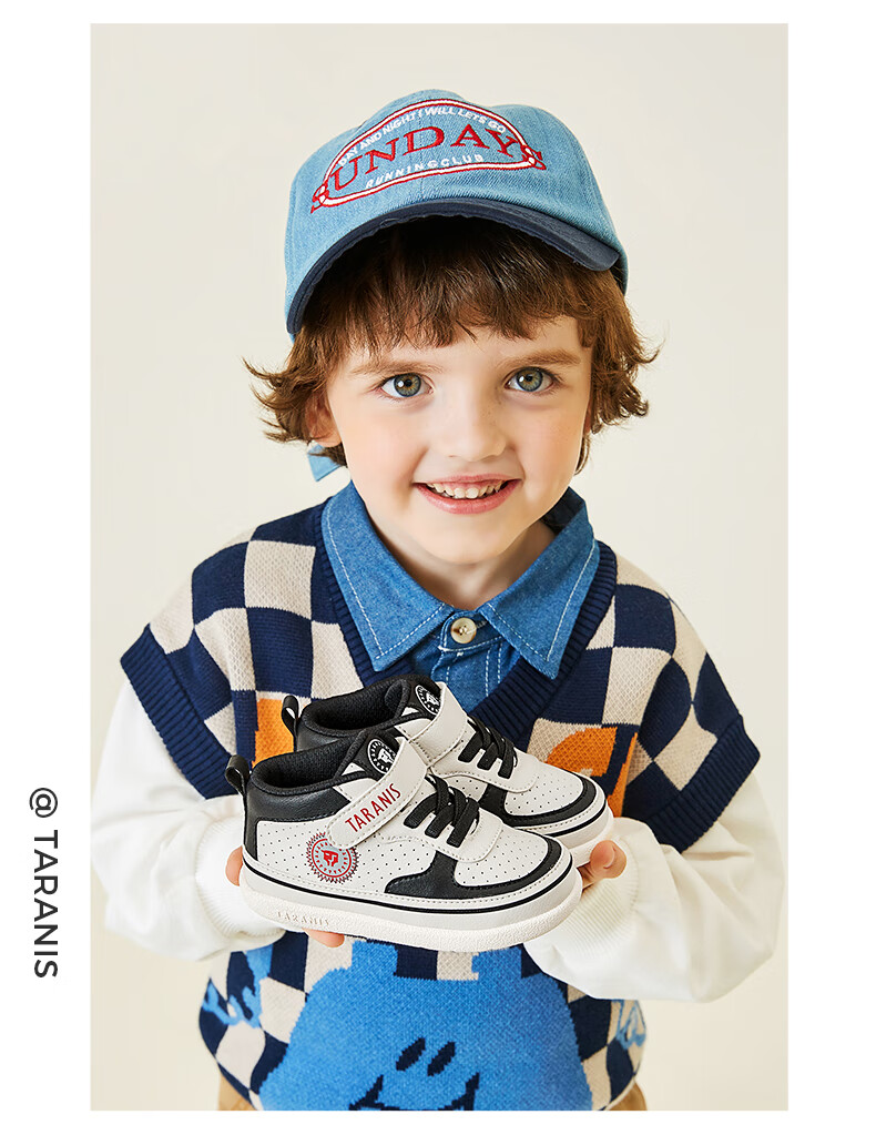 Terranis new winter toddler shoes, versatile and trendy boys' shoes, non-slip soft-soled functional shoes for infants and children, white/black 24, inner length 15.5/suitable for foot length 14.5