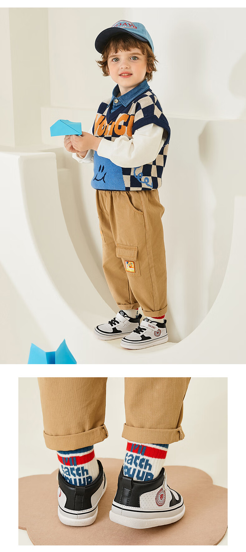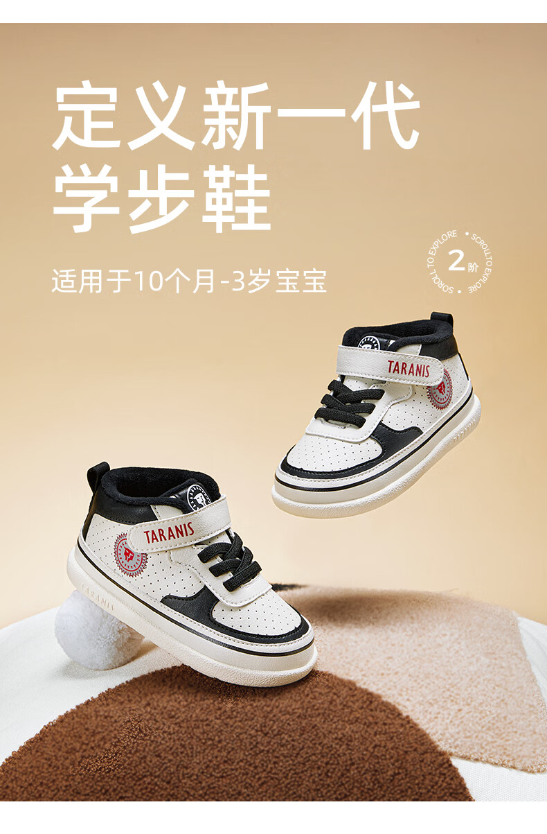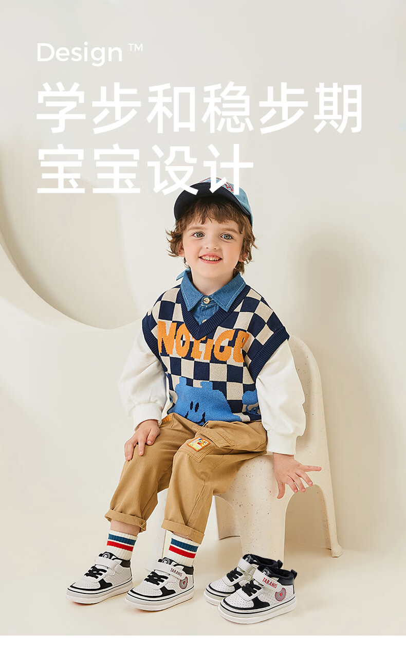 Terranis new winter toddler shoes, versatile and trendy boys' shoes, non-slip soft-soled functional shoes for infants and children, white/black 24, inner length 15.5/suitable for foot length 14.5
