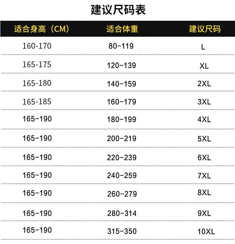 China (cm) 165 / 88-90 170 / 96-98 175 / 108-110 180 / 118-122 185 / 126-130