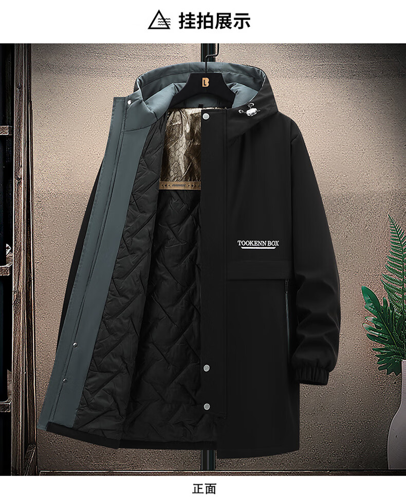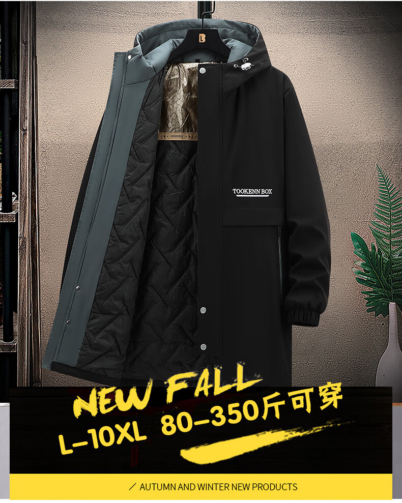 皮尔卡丹(pierre cardin)加绒加厚风衣外套男秋冬季中长款棉衣潮牌宽松加肥加大码胖子大衣 YB0080黑(石墨烯) 中长款外 加厚 6XL 220-239斤穿