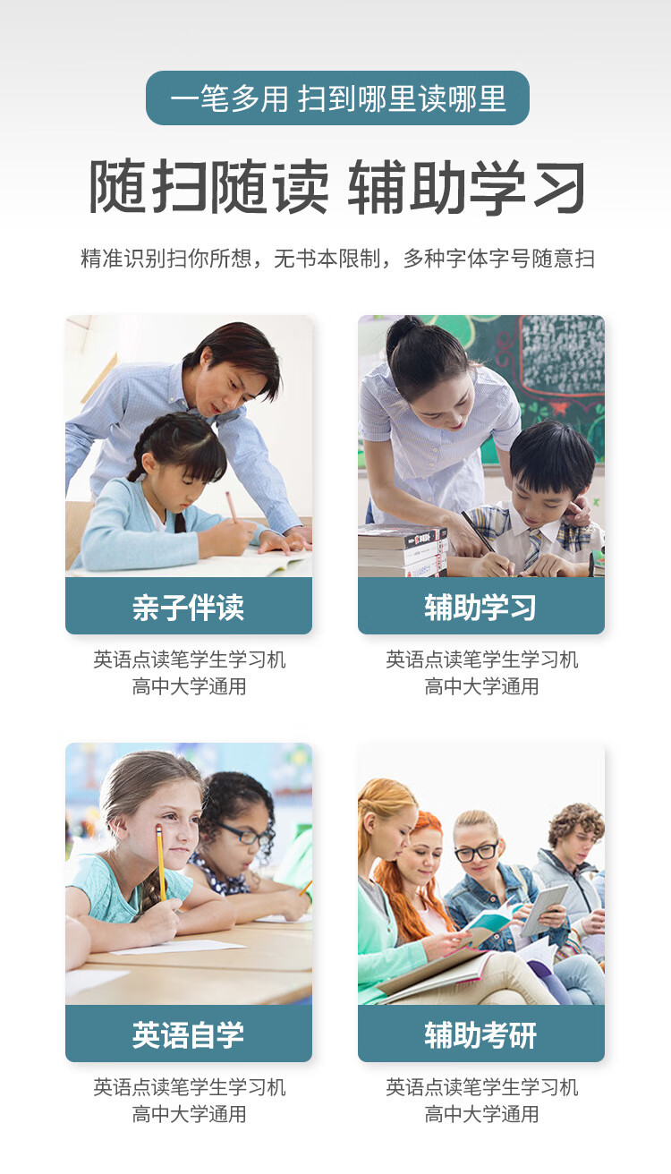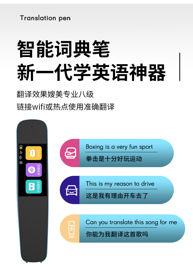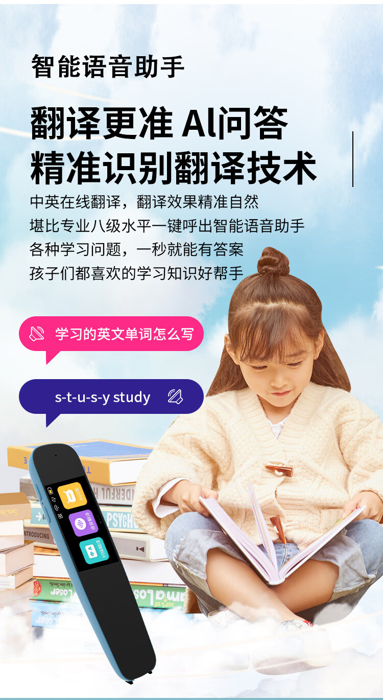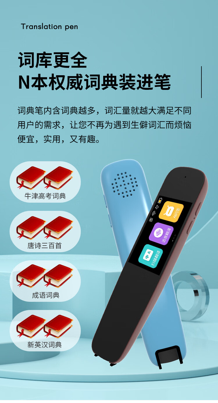 华为机适用点读笔词典笔英语翻译扫读笔儿童礼物扫描笔离线版 蓝色 1.97寸 离线版 全科学习+扫