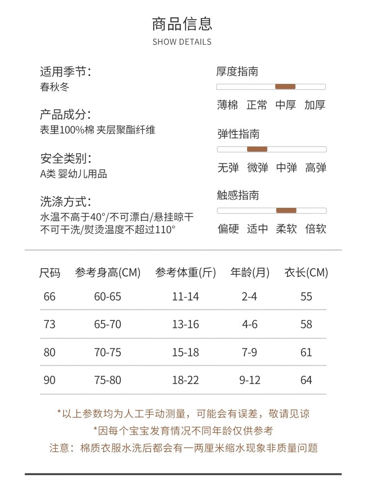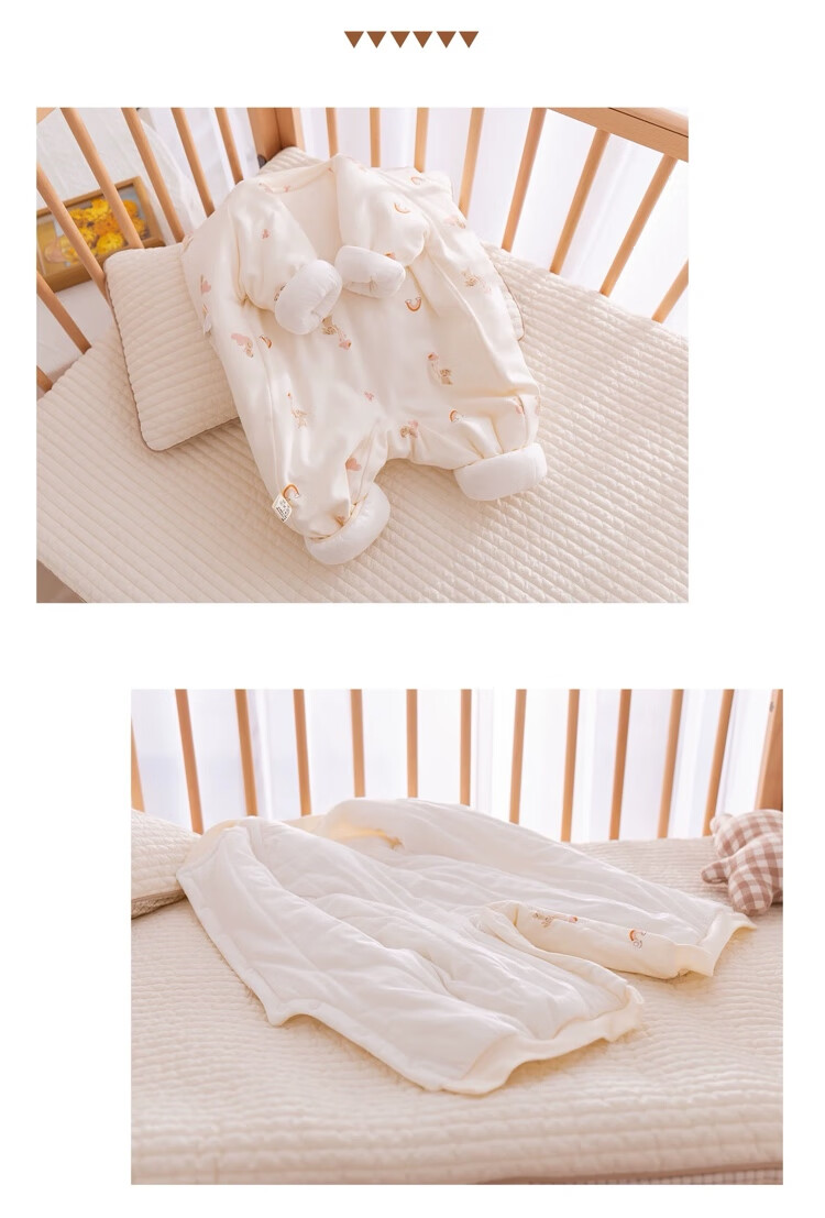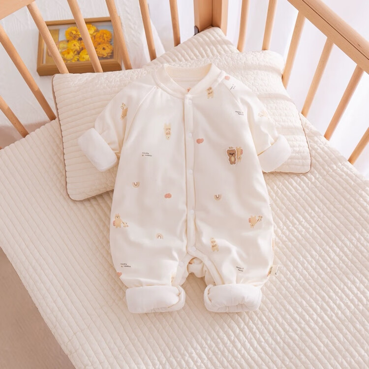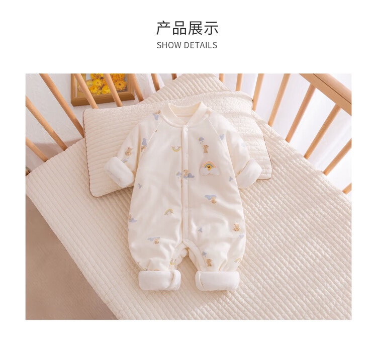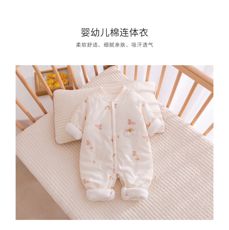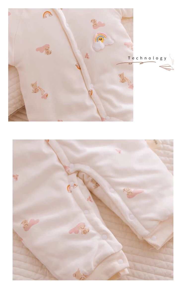 婴儿夹棉连体衣春季男女宝宝哈衣爬服纯棉服棉衣服秋冬装加厚套装 彩虹蓝色 40克棉 (适合18-23度) 66cm 11-14斤