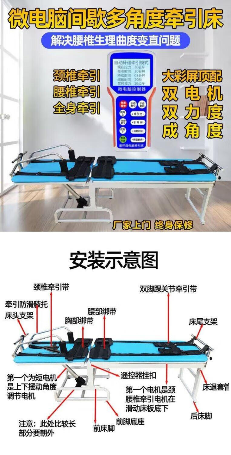 Microcomputer multifunctional electric cervical and lumbar traction health bed intermittent multi-angle stretcher inversion machine waist thermotherapy dual motor multi-angle large color screen