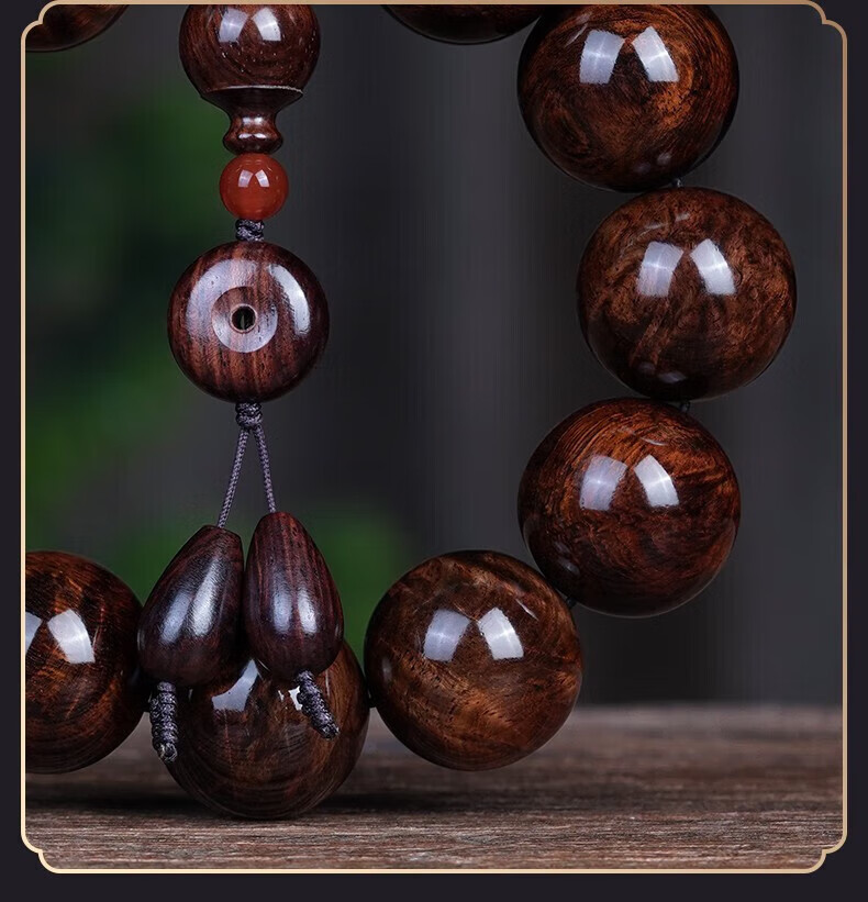 Longyin Authentic Hainan Huanghuali Bracelet Men's Landscape Pattern Old Material Purple Pear Wood High Oil Density Buddha Beads Wenwan Bracelet Women HY111213020