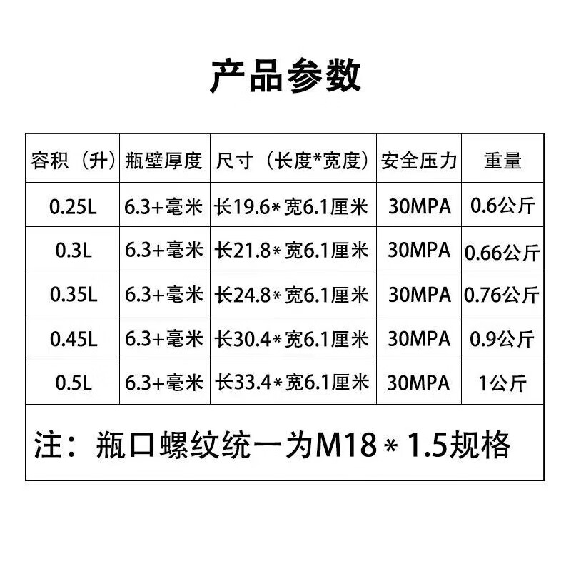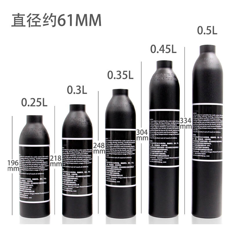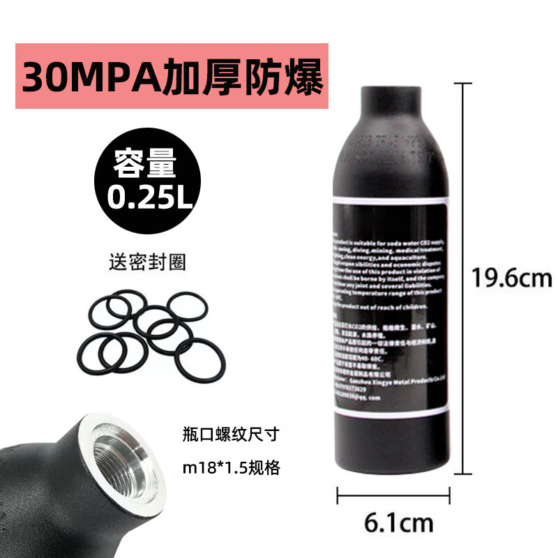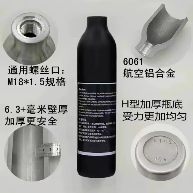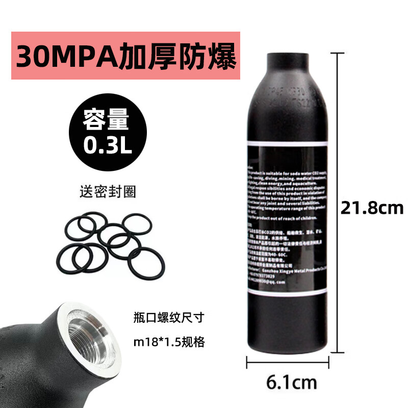 High-pressure gas cylinder 30MPa Cong Congfa CO2 climbing fish tank diving oxygen tank soda water empty aluminum bottle small steel cylinder extra thick explosion-proof one-piece molding 20 years of good performance 0.35L comes with sealing ring
