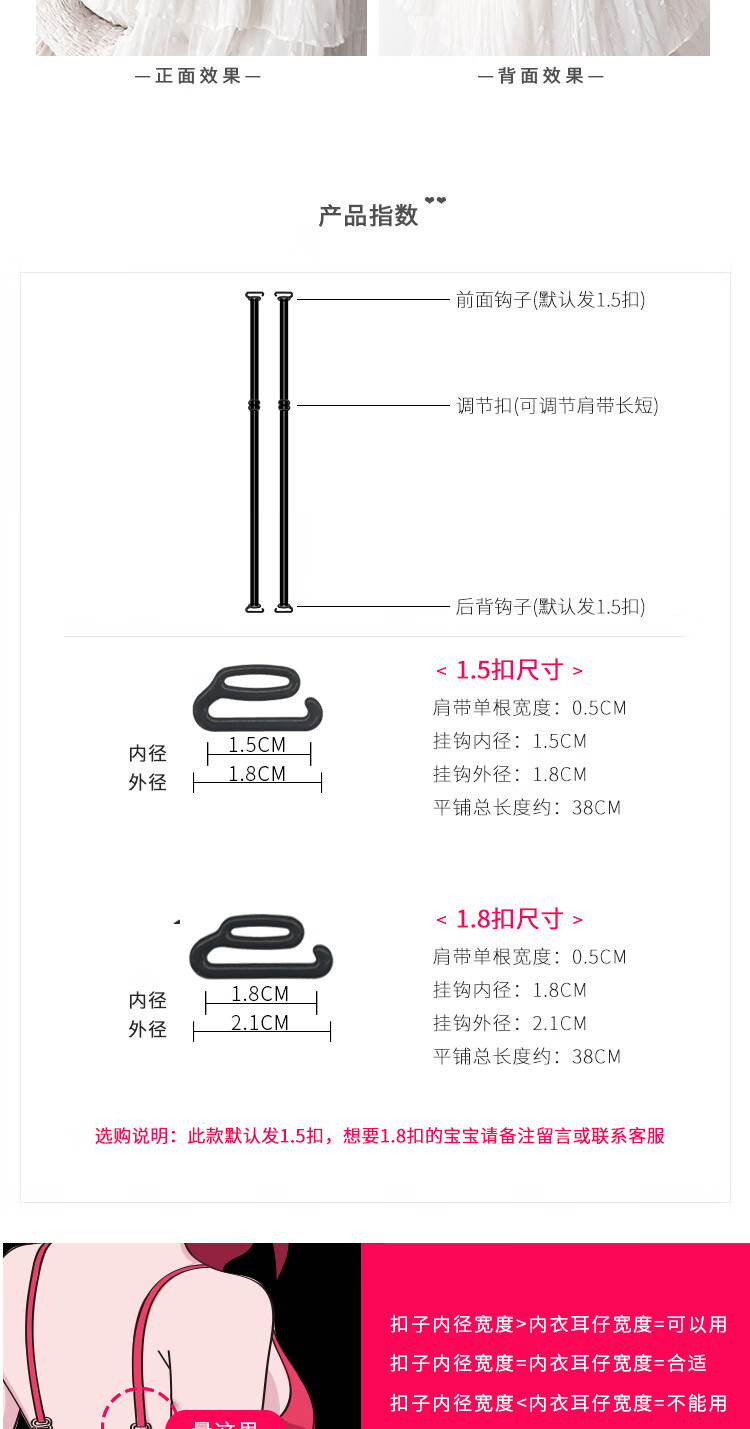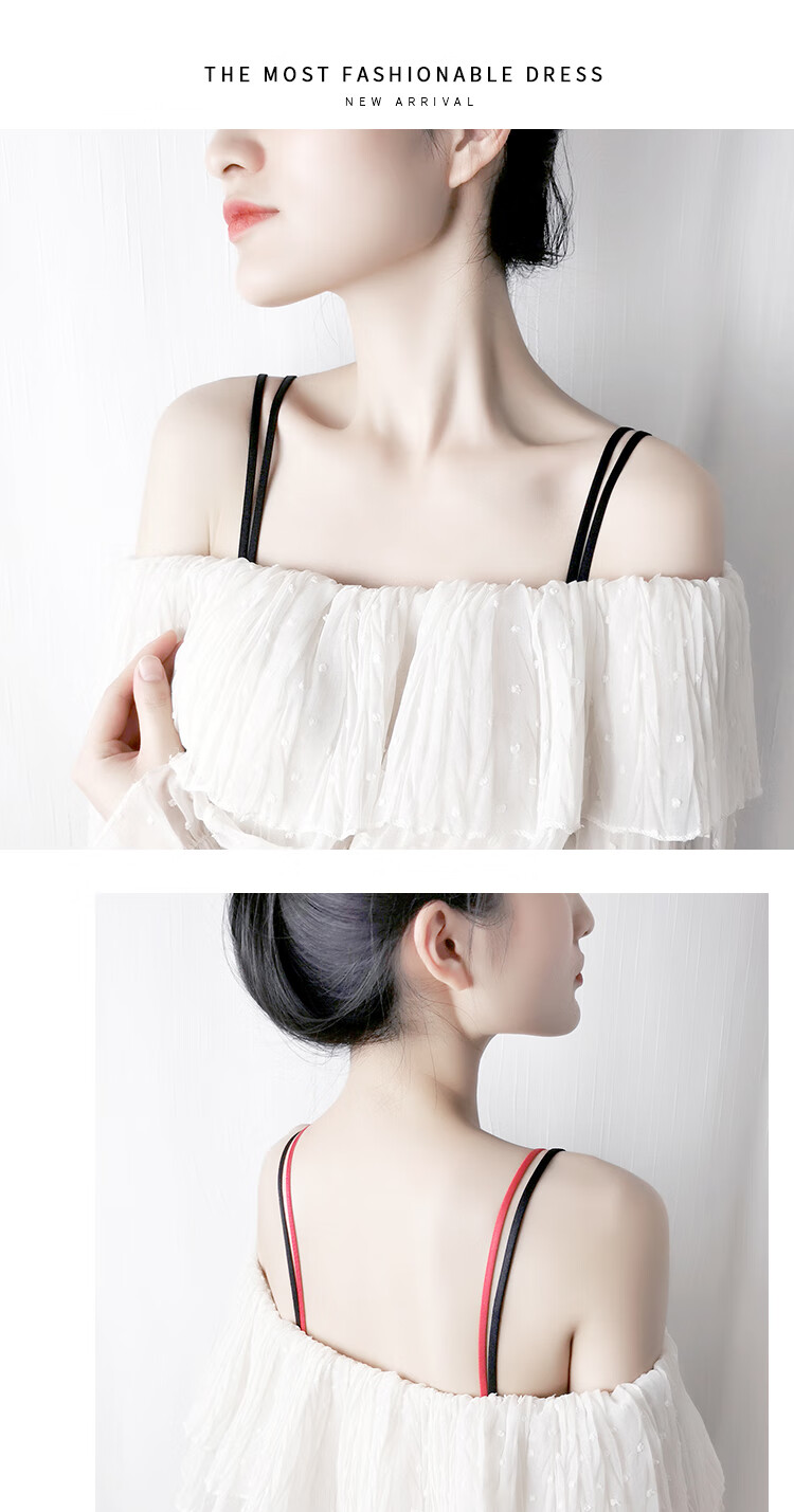 纪娅芙细肩带内衣可外露好看防滑文胸配件胸罩带子替换夏季美背可调节 黑红