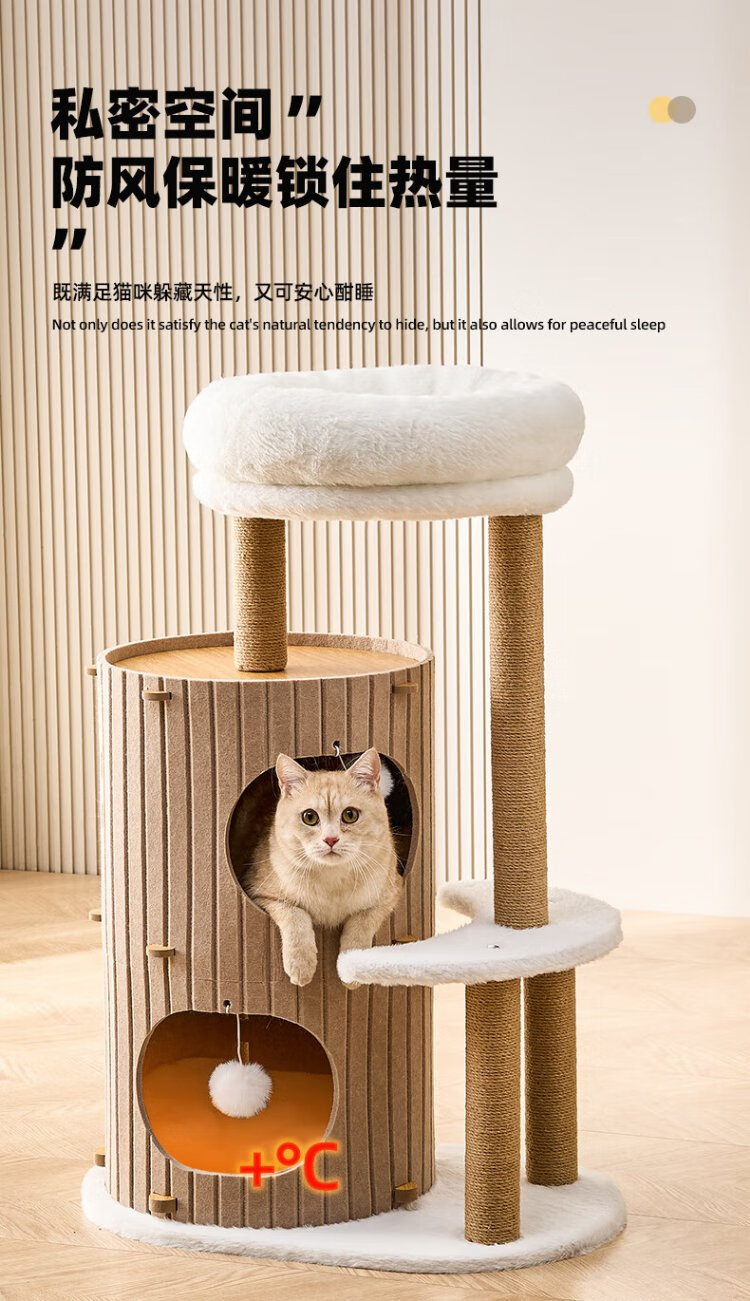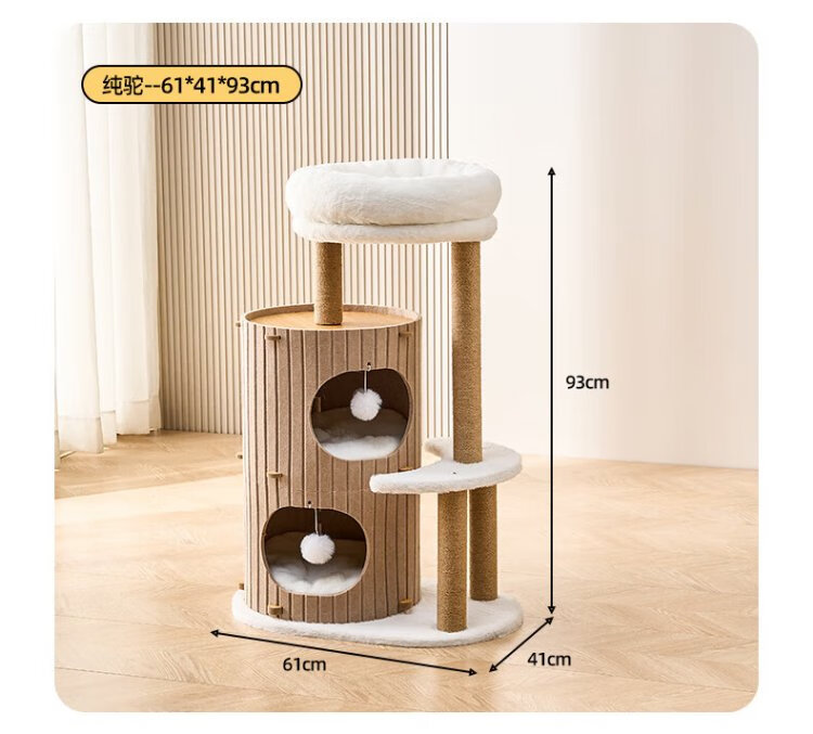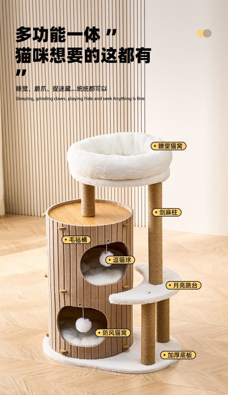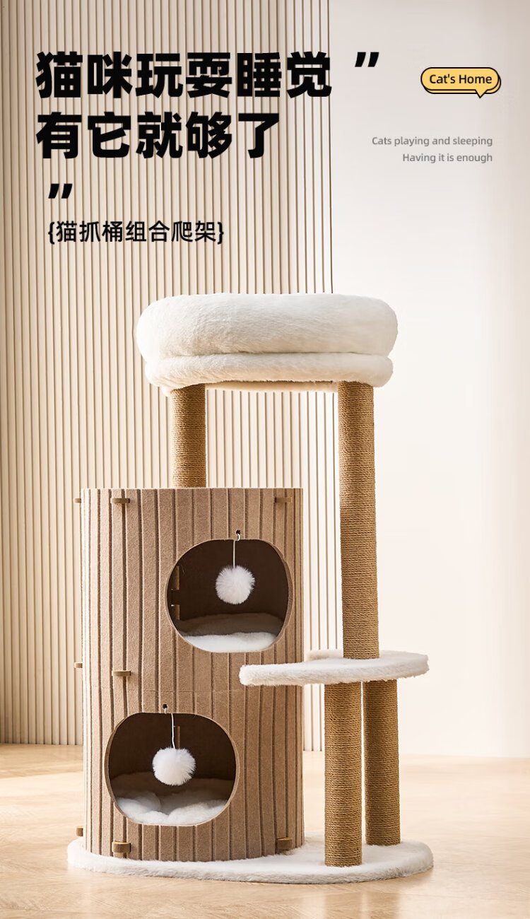 喵丽丝猫爬架家用小户型不占地树洞猫窝一体冬季保暖猫咪双层跳台毛毡桶 【纯驼色】四层猫抓桶组合爬架