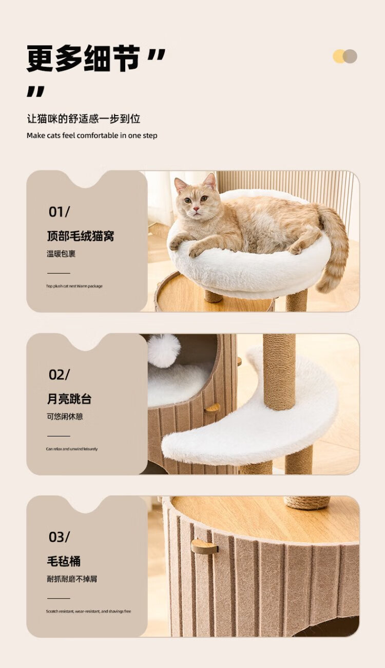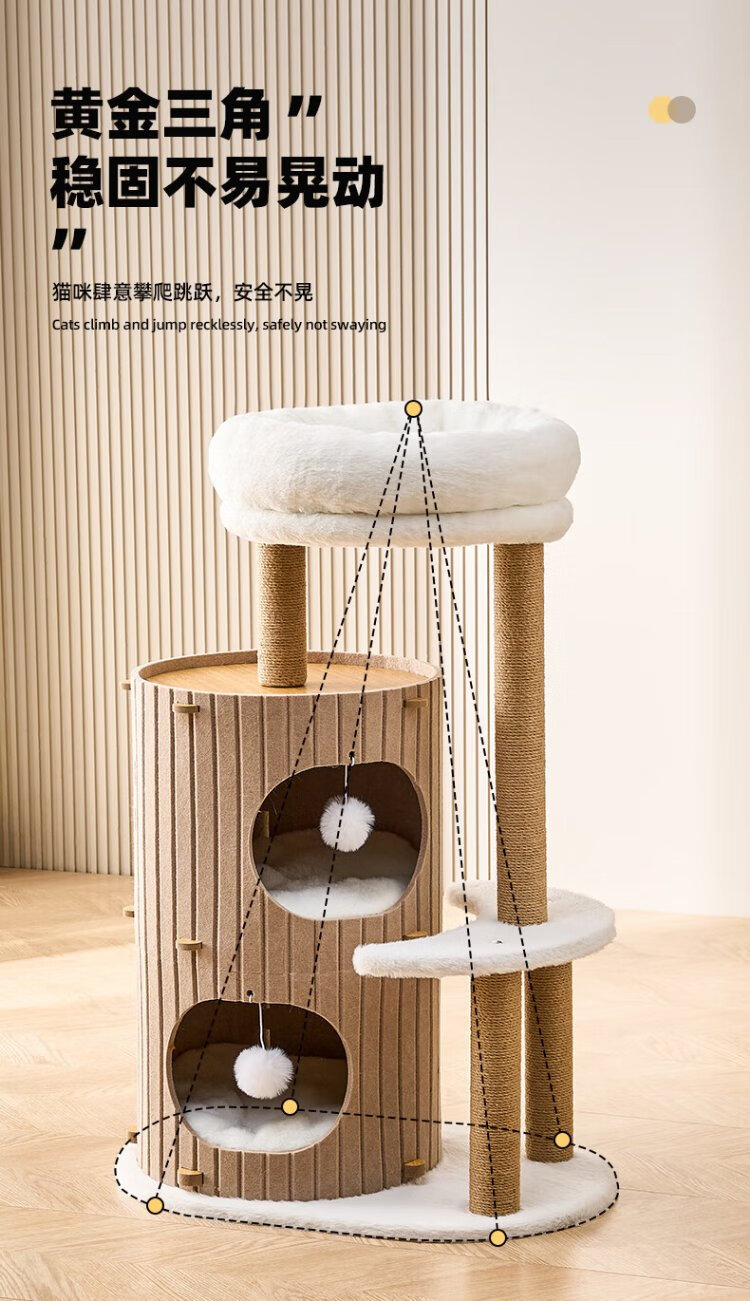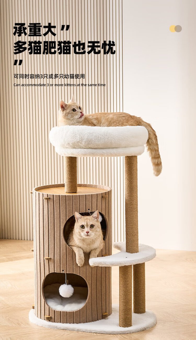 喵丽丝猫爬架家用小户型不占地树洞猫窝一体冬季保暖猫咪双层跳台毛毡桶 【纯驼色】四层猫抓桶组合爬架