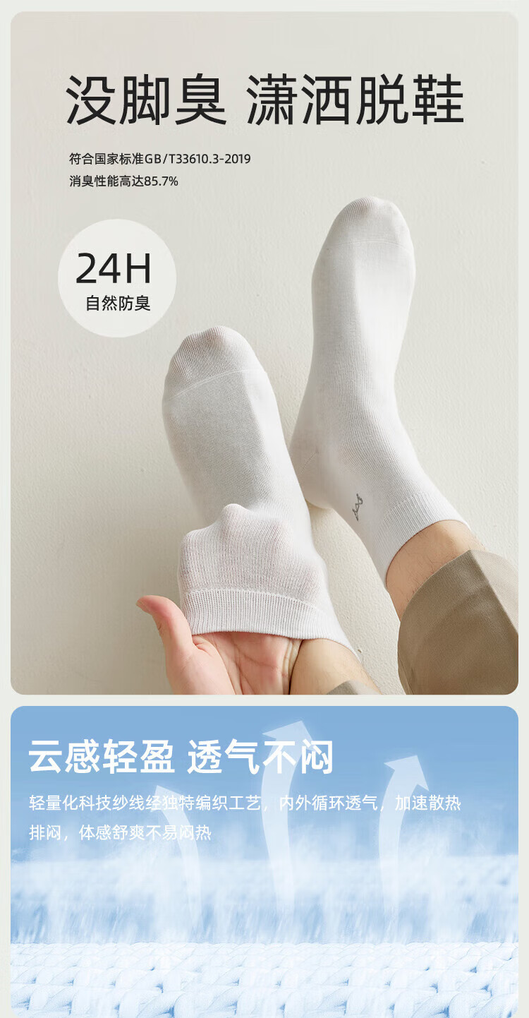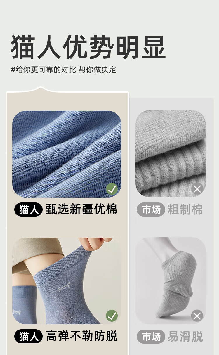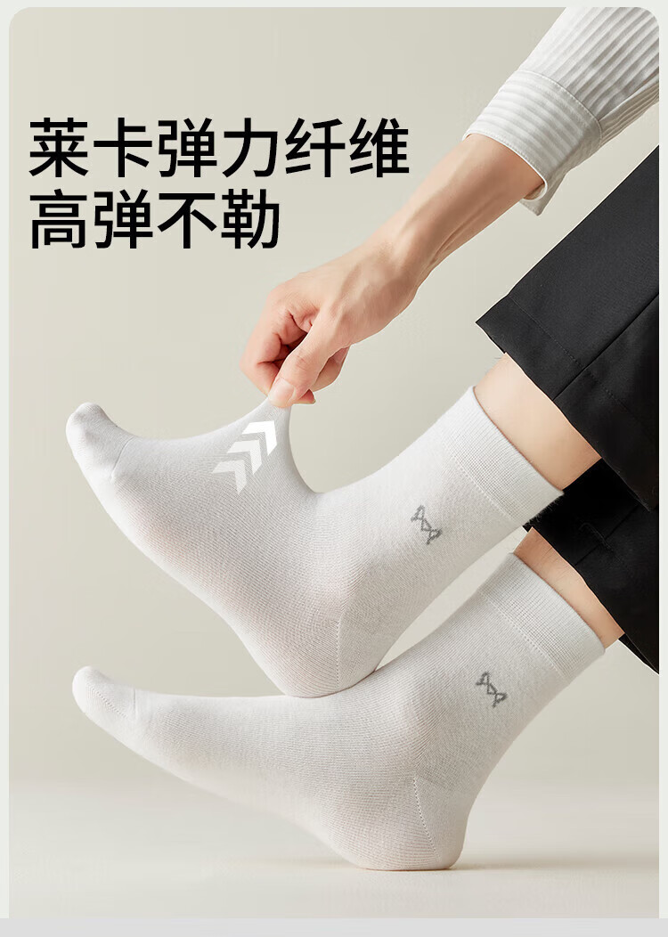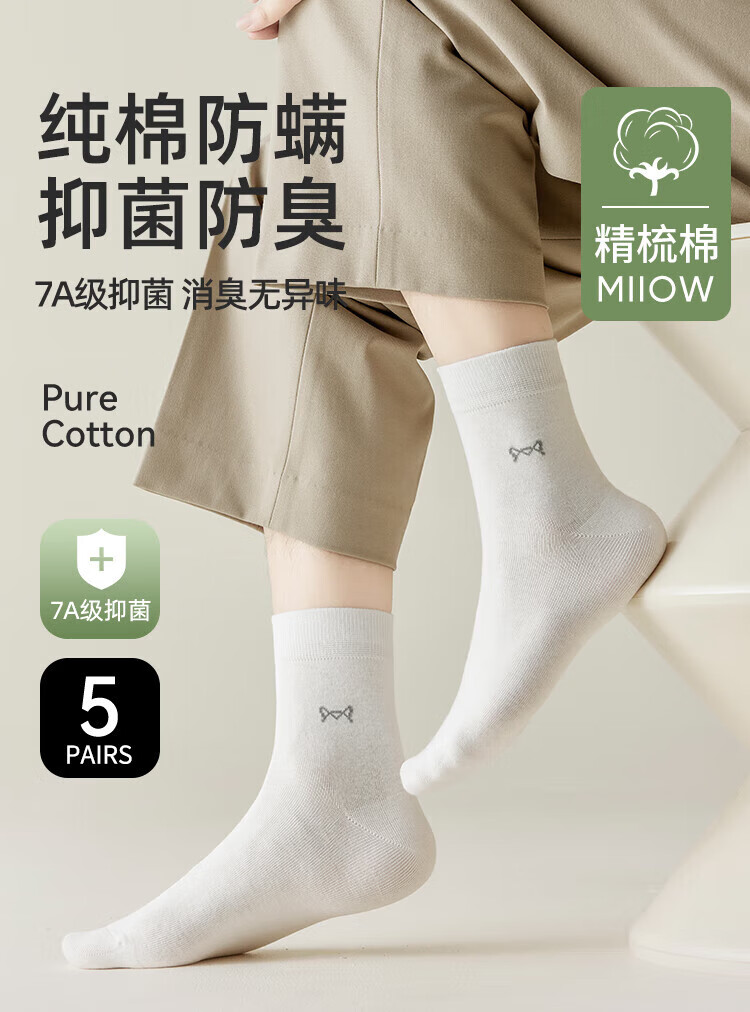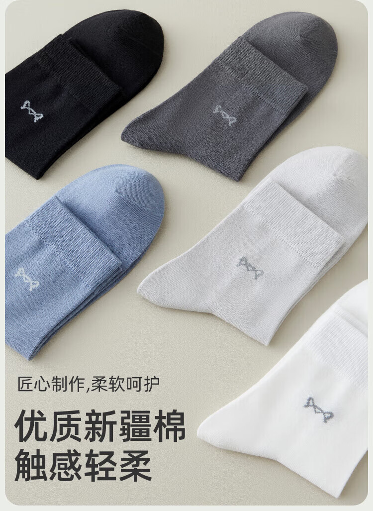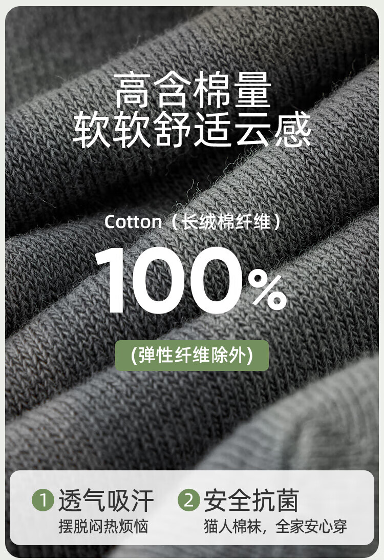 猫人100%纯棉袜子男秋冬季7A抗菌防臭吸汗透气新疆棉中筒袜男士商务袜 防臭【黑色】 5双 均码