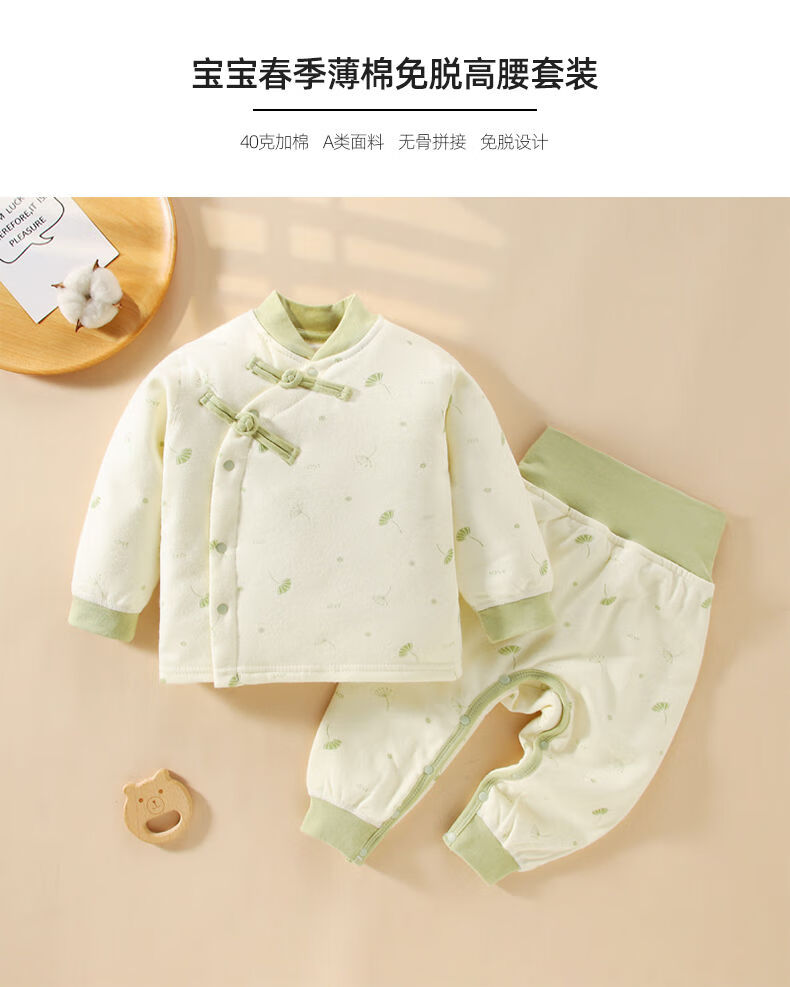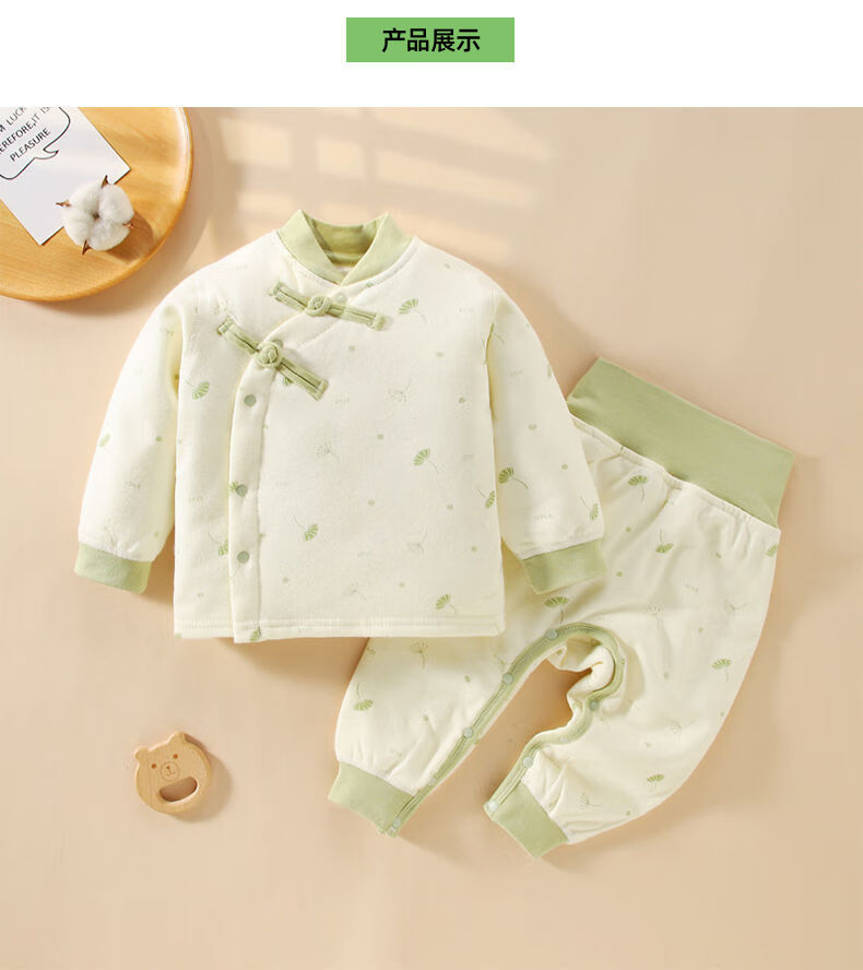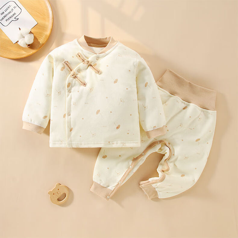 JOYNCLEON baby autumn clothing set autumn and winter quilted children's split baby thermal underwear clothes pants for boys and girls warm quilted dandelion green 90 snap button high waist