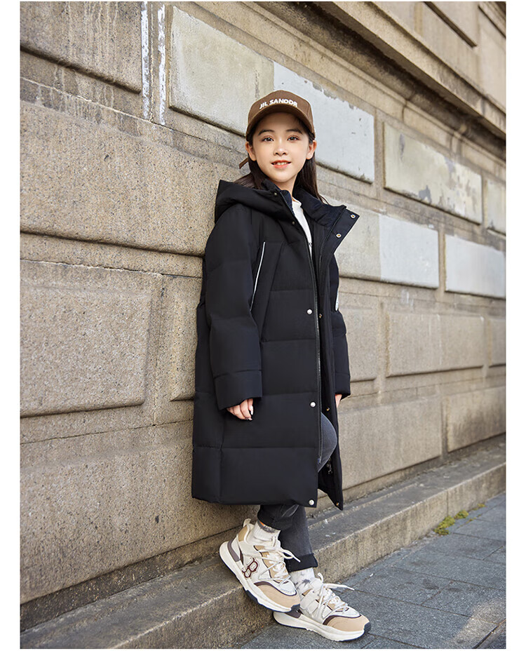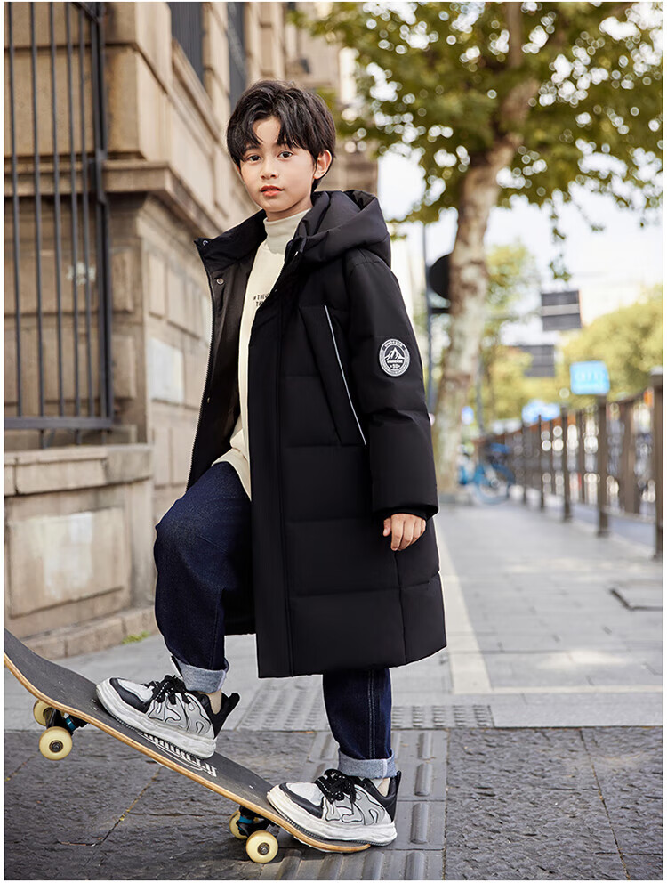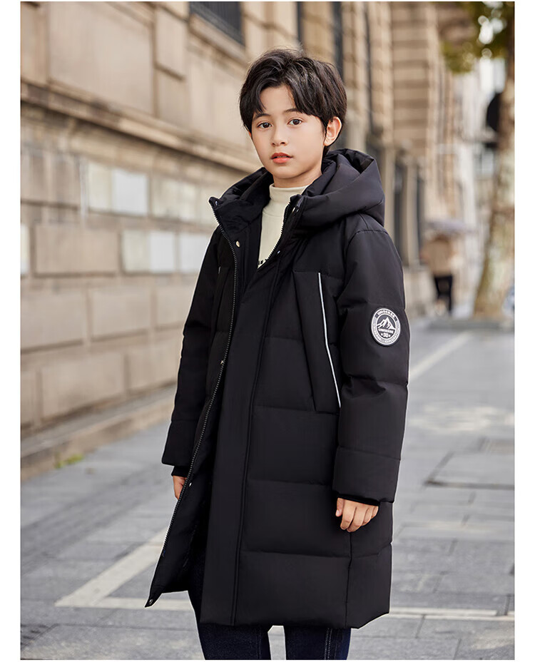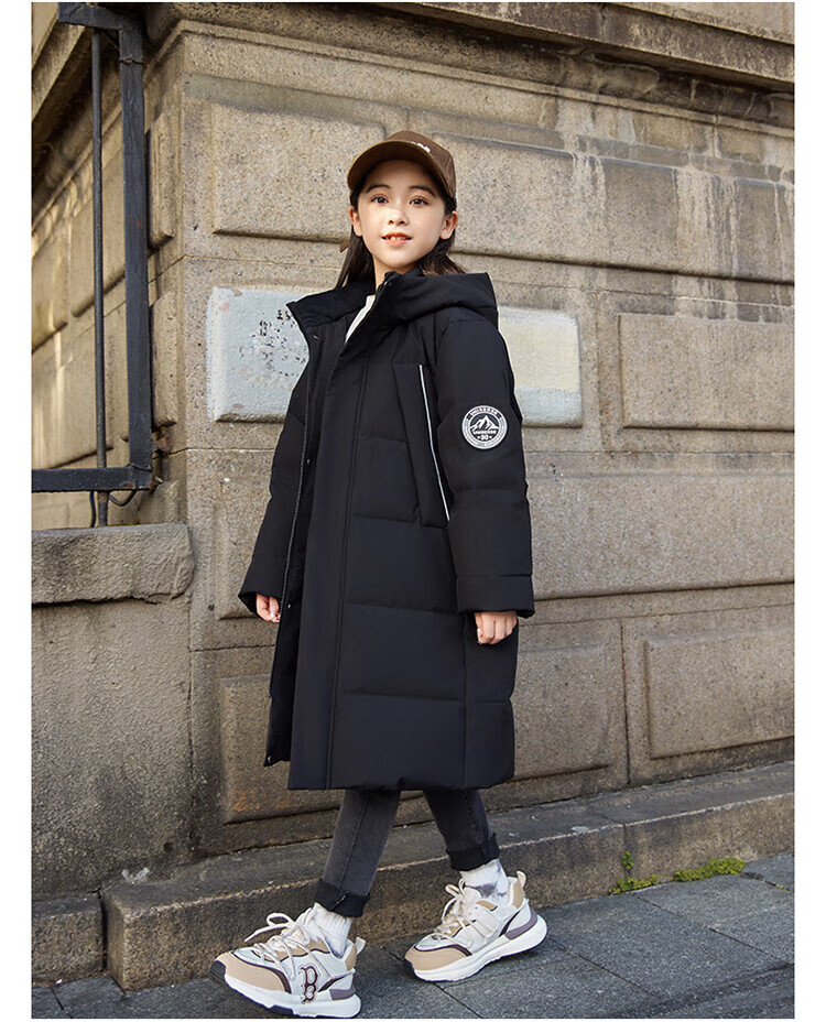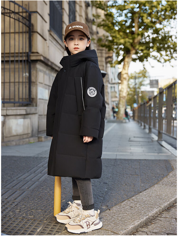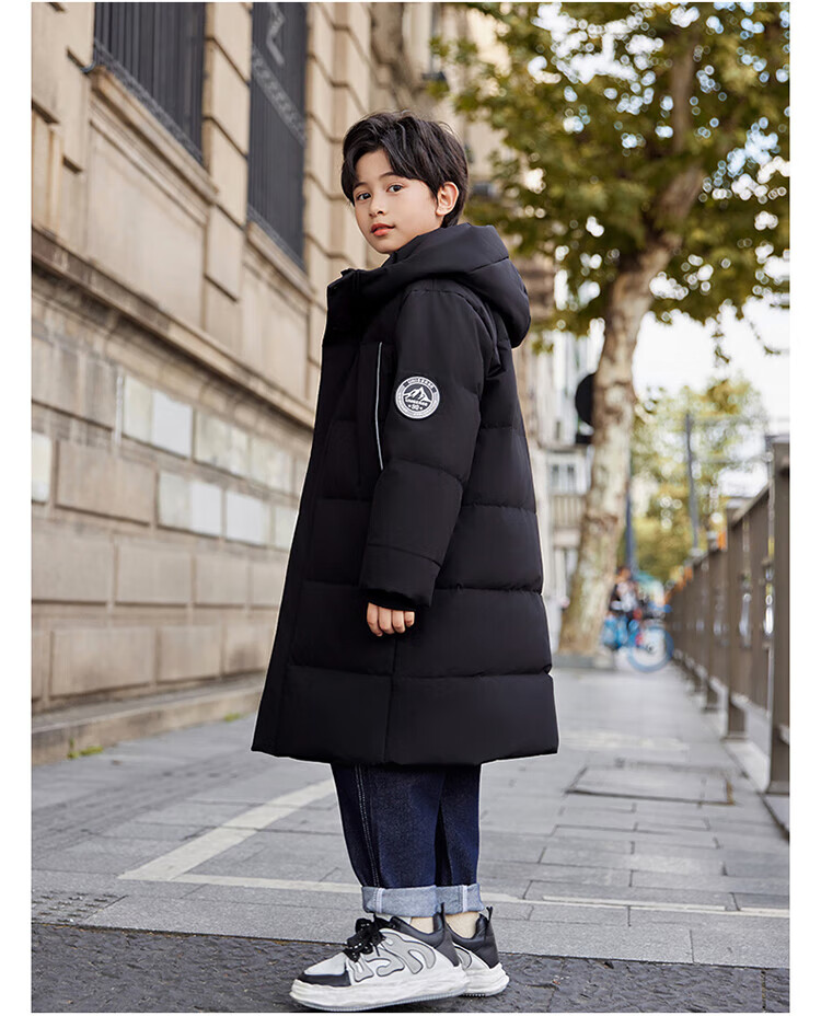 ABC KAIA medium and large children's down jacket boys and girls extra long 2024 new winter thickened children's clothing cold-proof jacket trend black (boys) 160