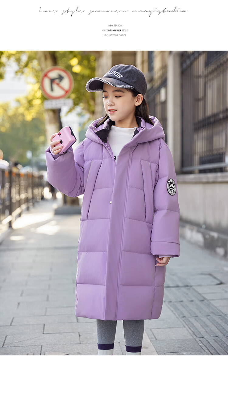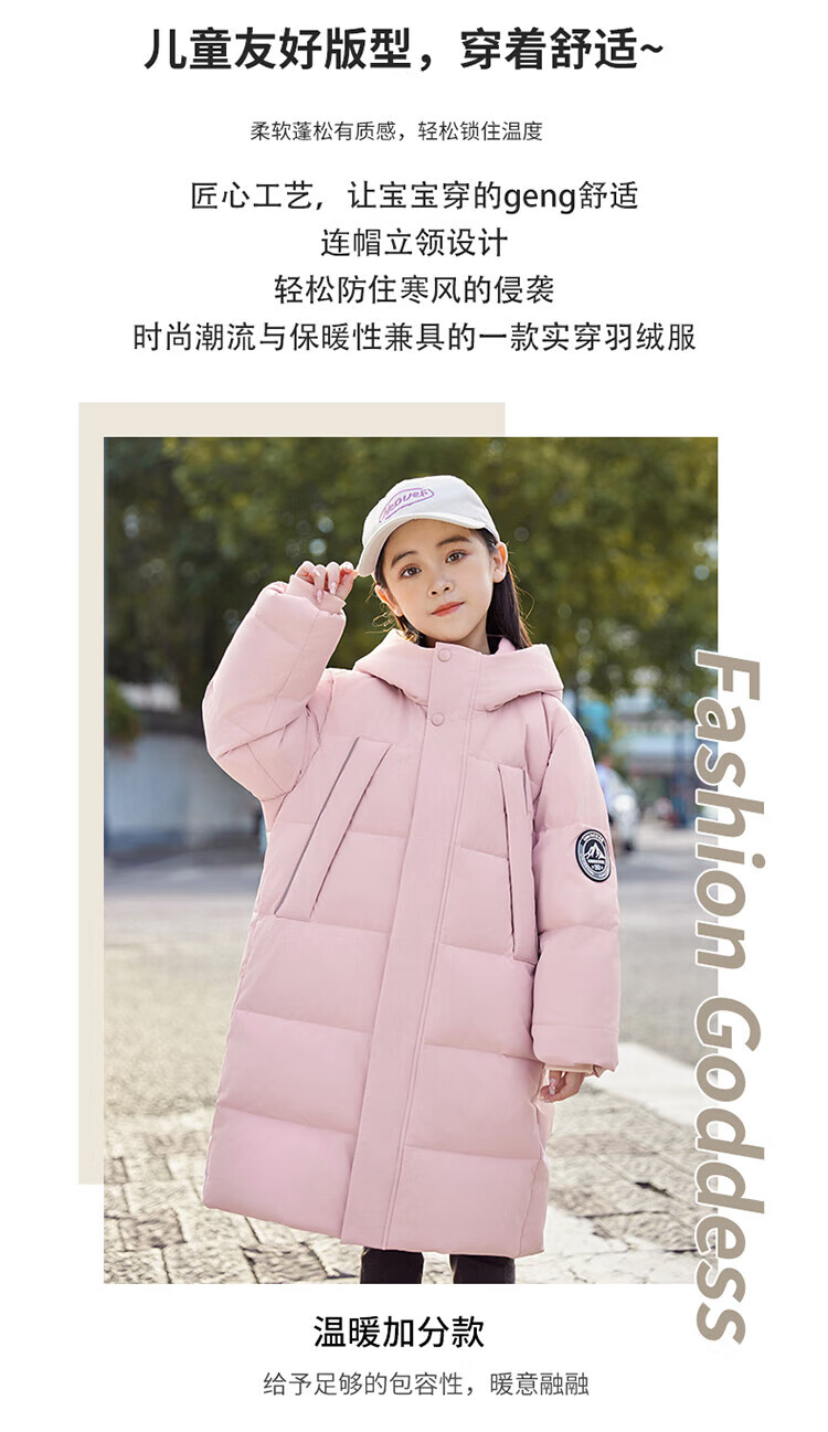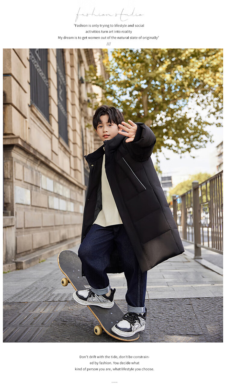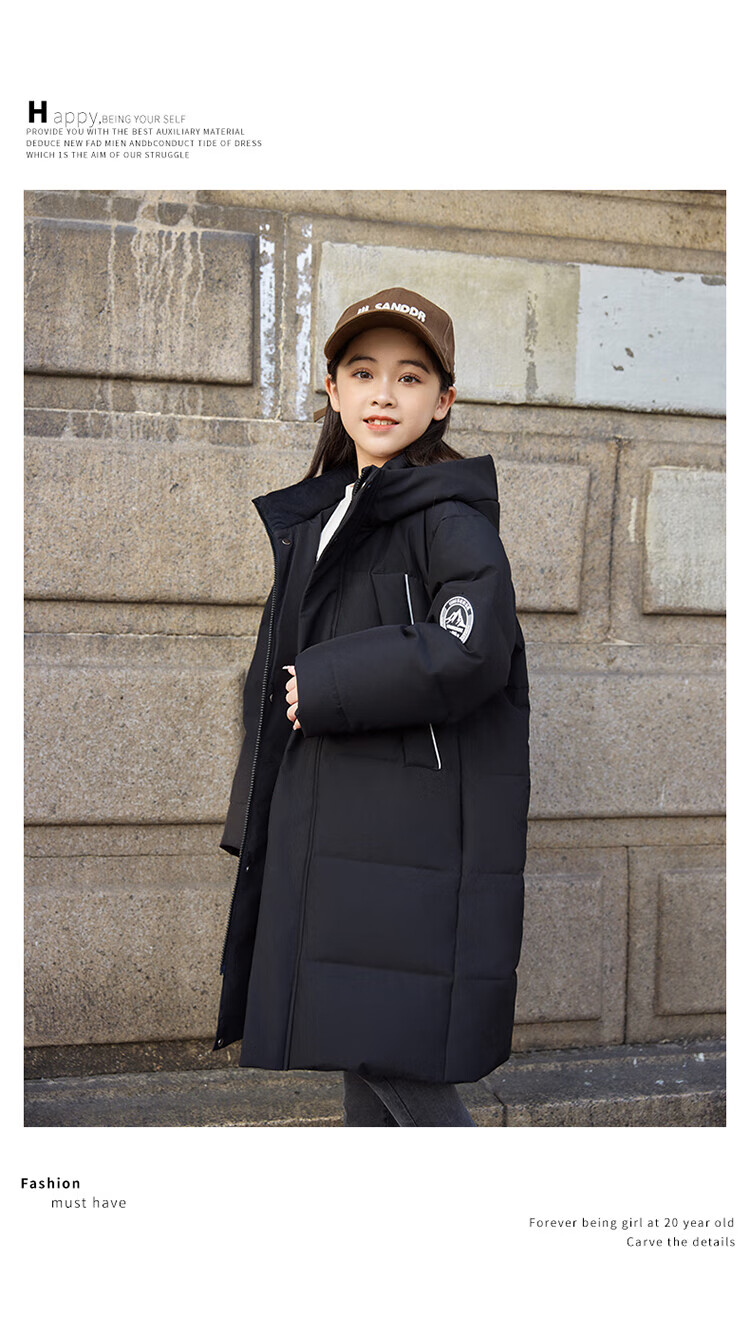 ABC KAIA medium and large children's down jacket boys and girls extra long 2024 new winter thickened children's clothing cold-proof jacket trend black (boys) 160