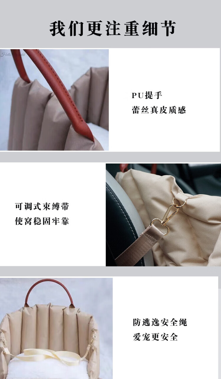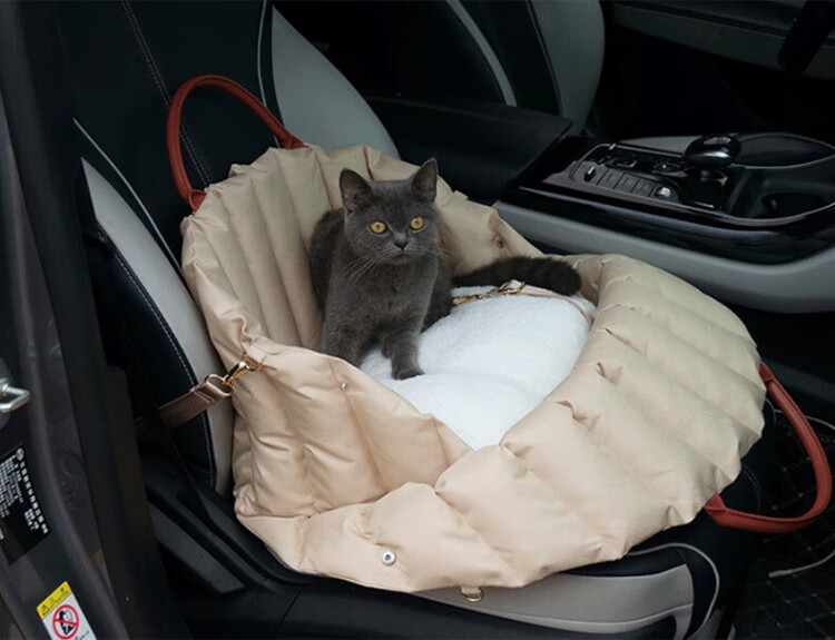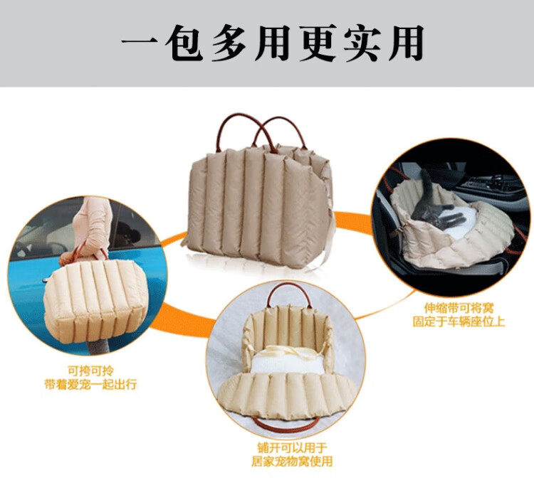 Fu Jian Pet Car Nest Dog Safety Seat Passenger Seat Cushion Cat Go-Out Portable Bag Small Dog Car Riding Artifact Light Khaki