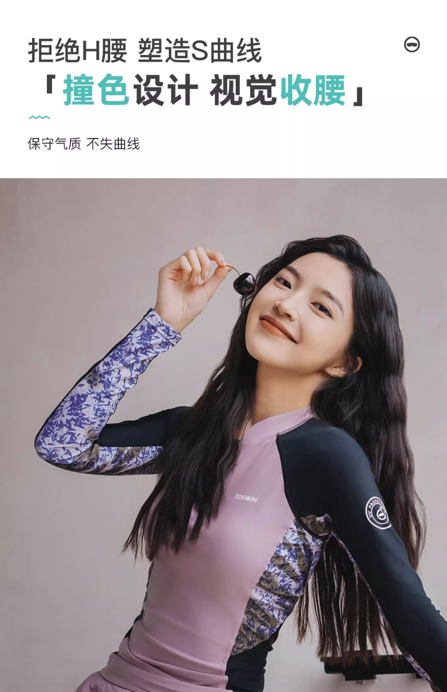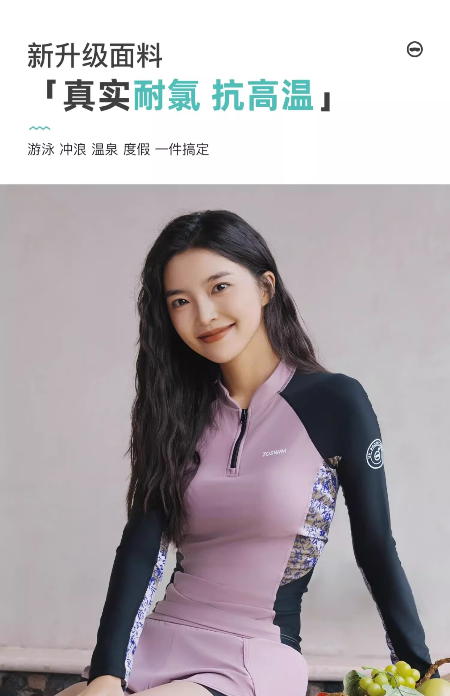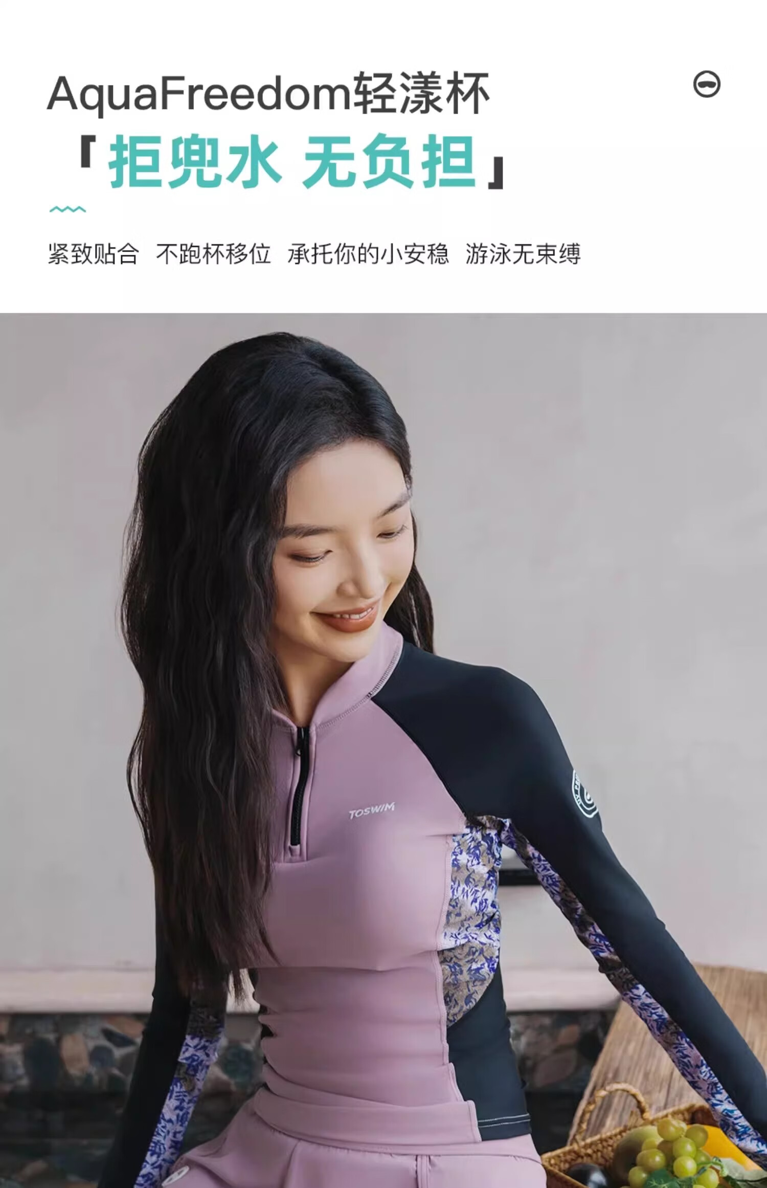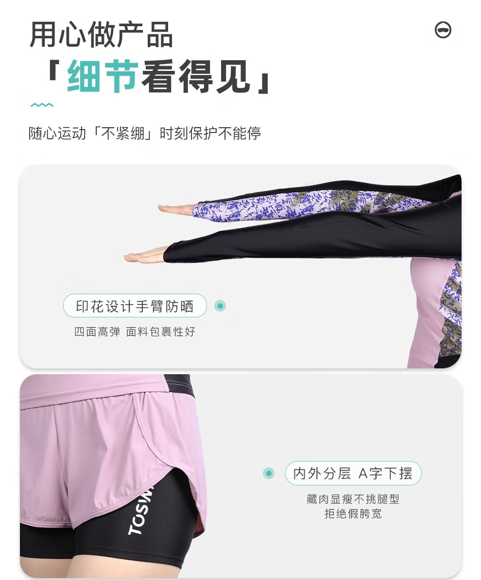 TOSWIM女士分体泳衣2024款长袖防晒保守显瘦大码微胖游泳衣 五件套 衣裤+泳镜+泳帽+浴巾+包 S 【高155-159cm/重41-45kg】
