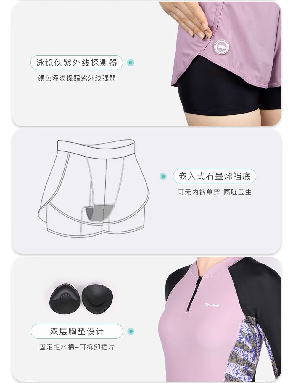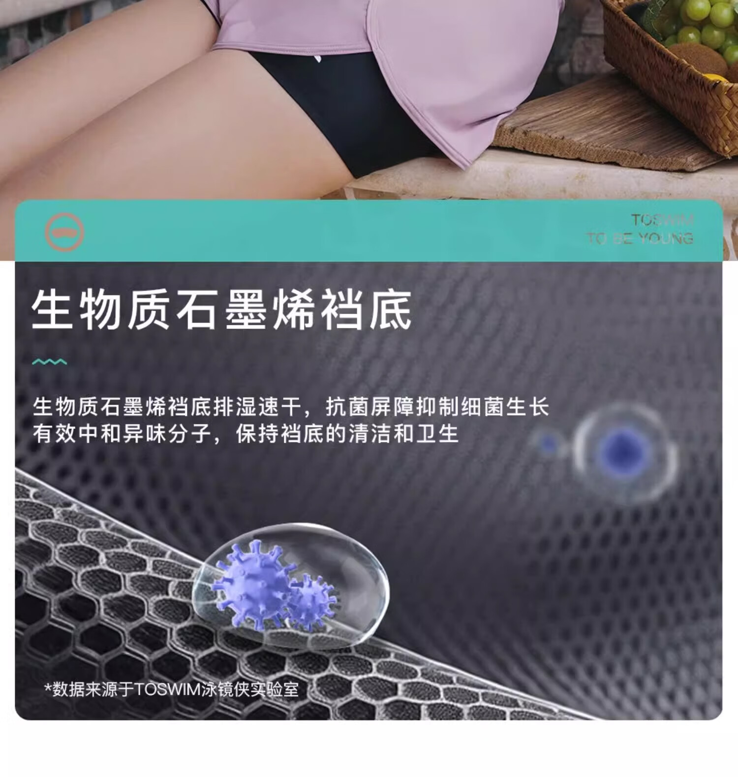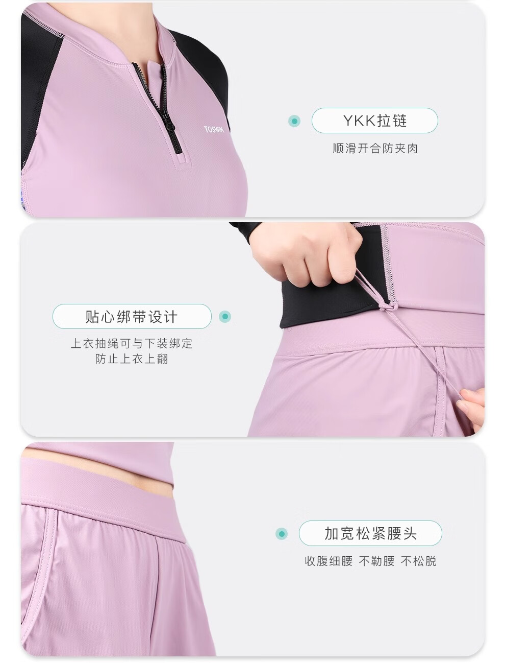 TOSWIM女士分体泳衣2024款长袖防晒保守显瘦大码微胖游泳衣 五件套 衣裤+泳镜+泳帽+浴巾+包 S 【高155-159cm/重41-45kg】
