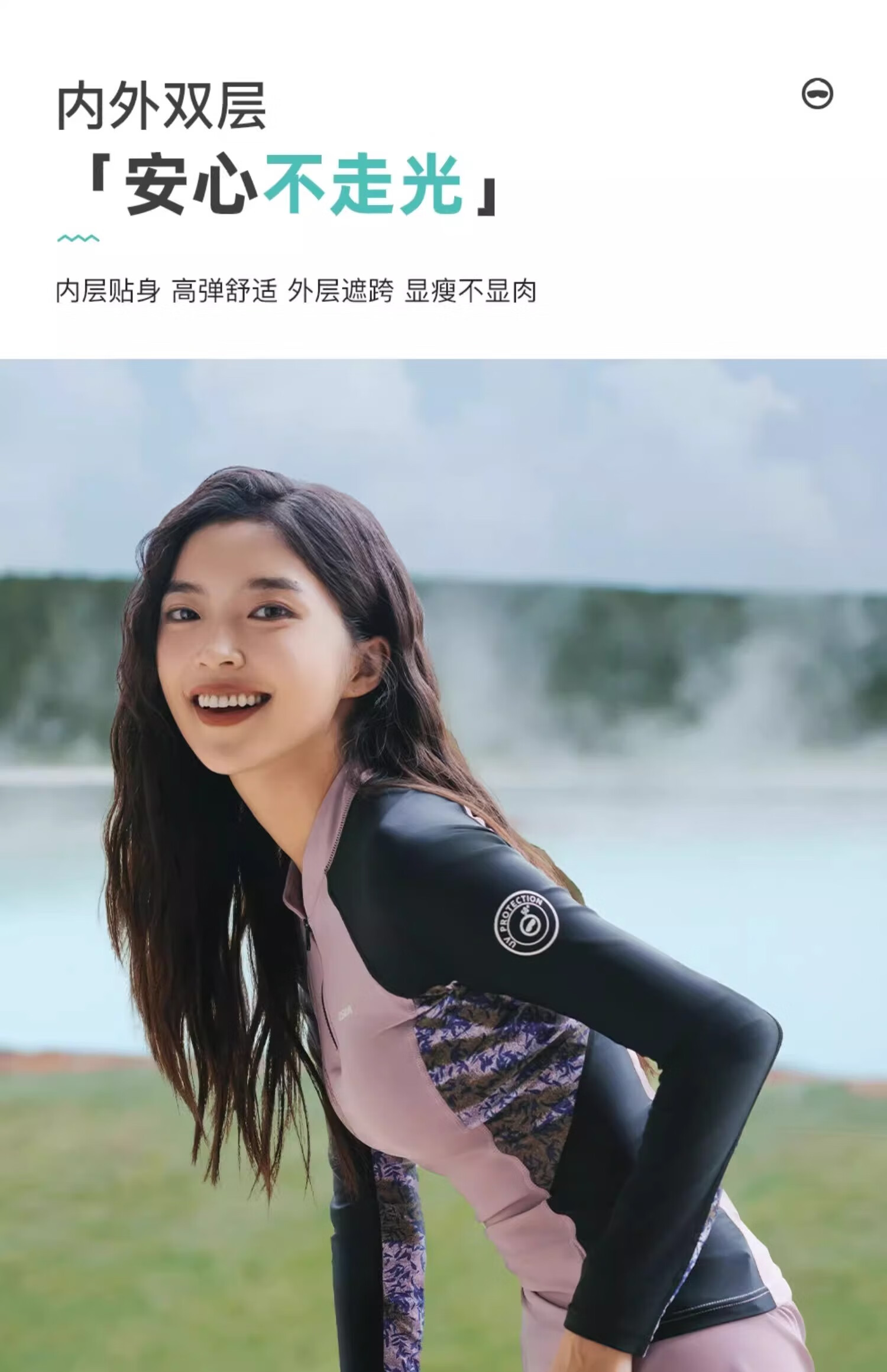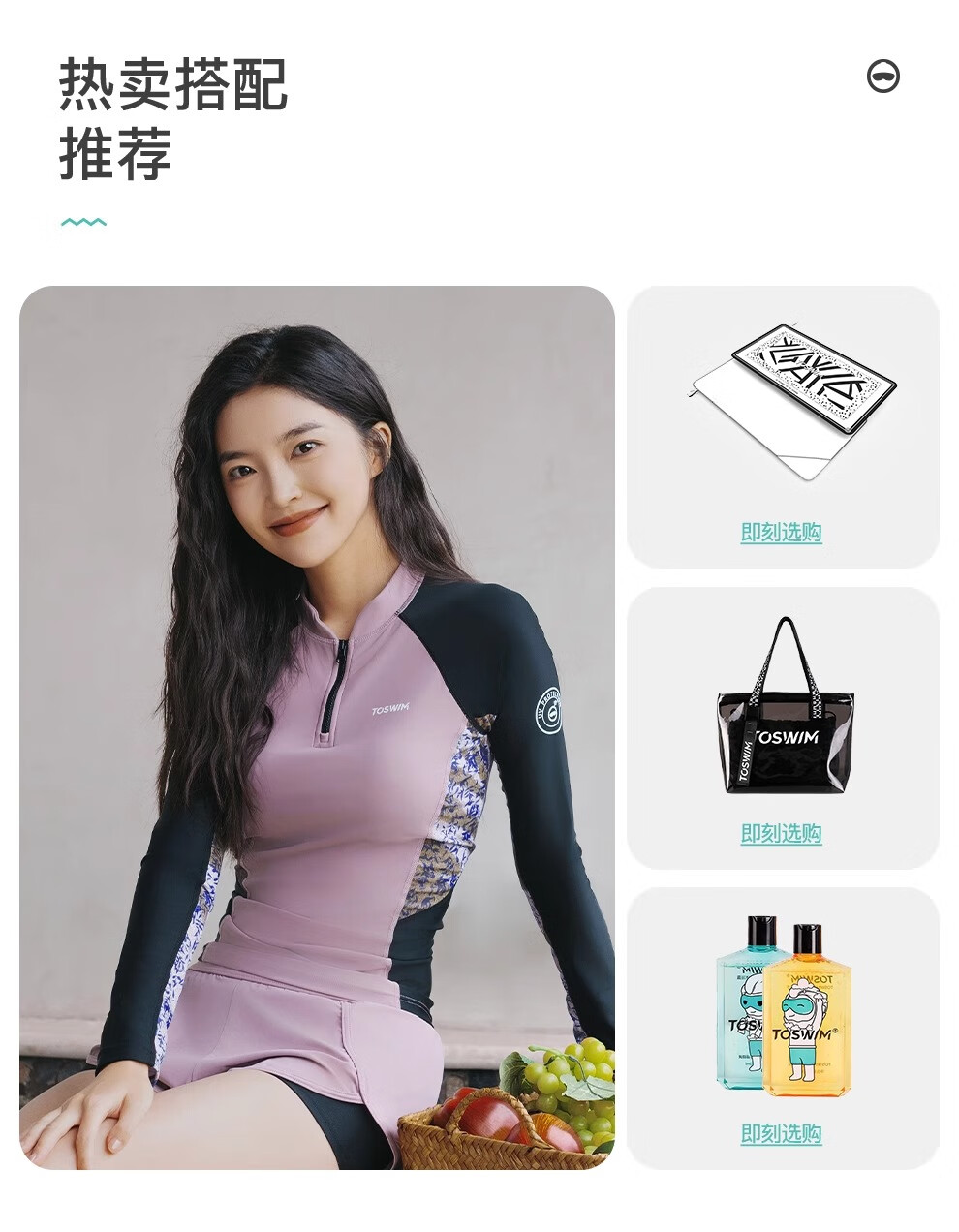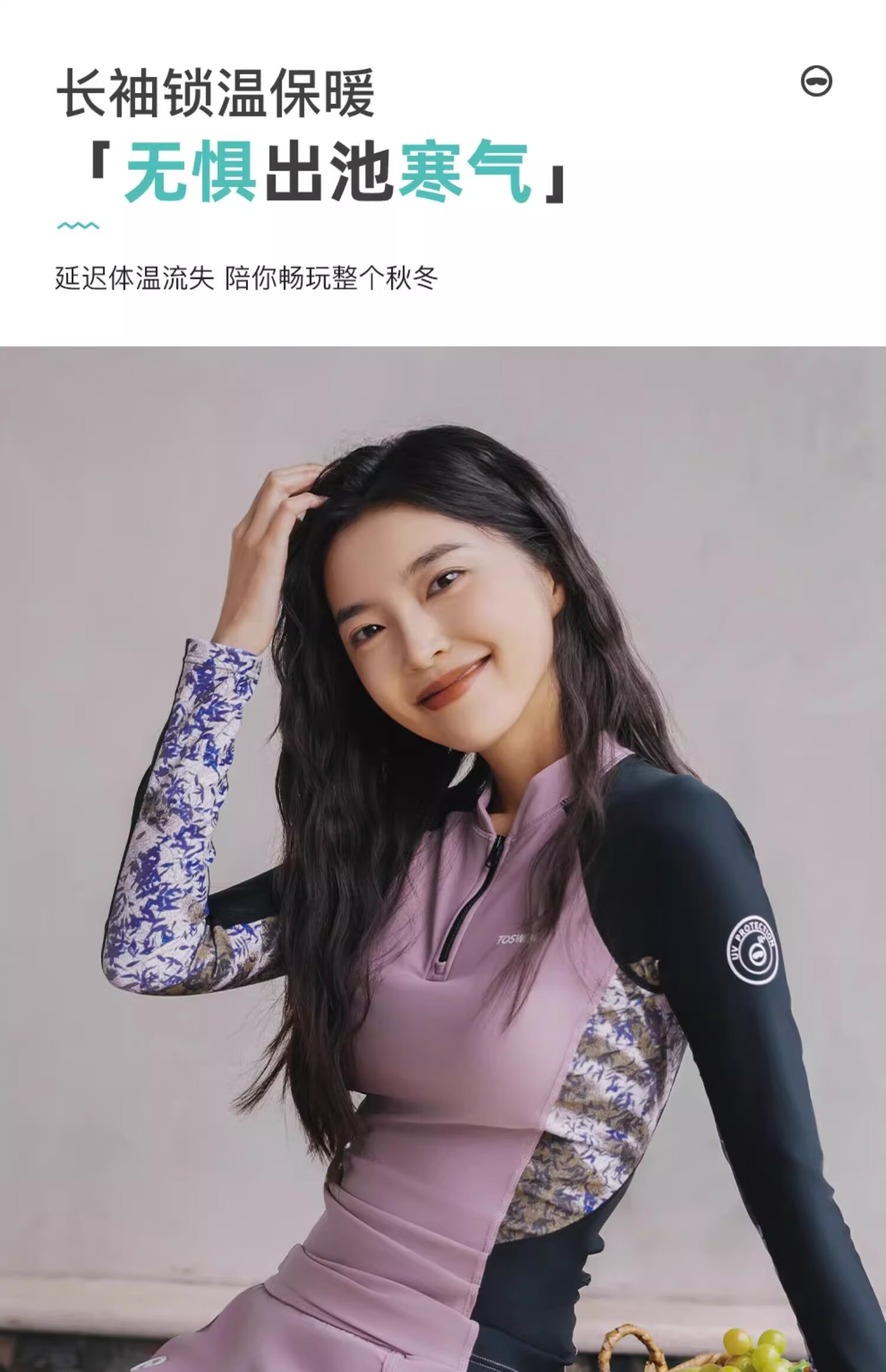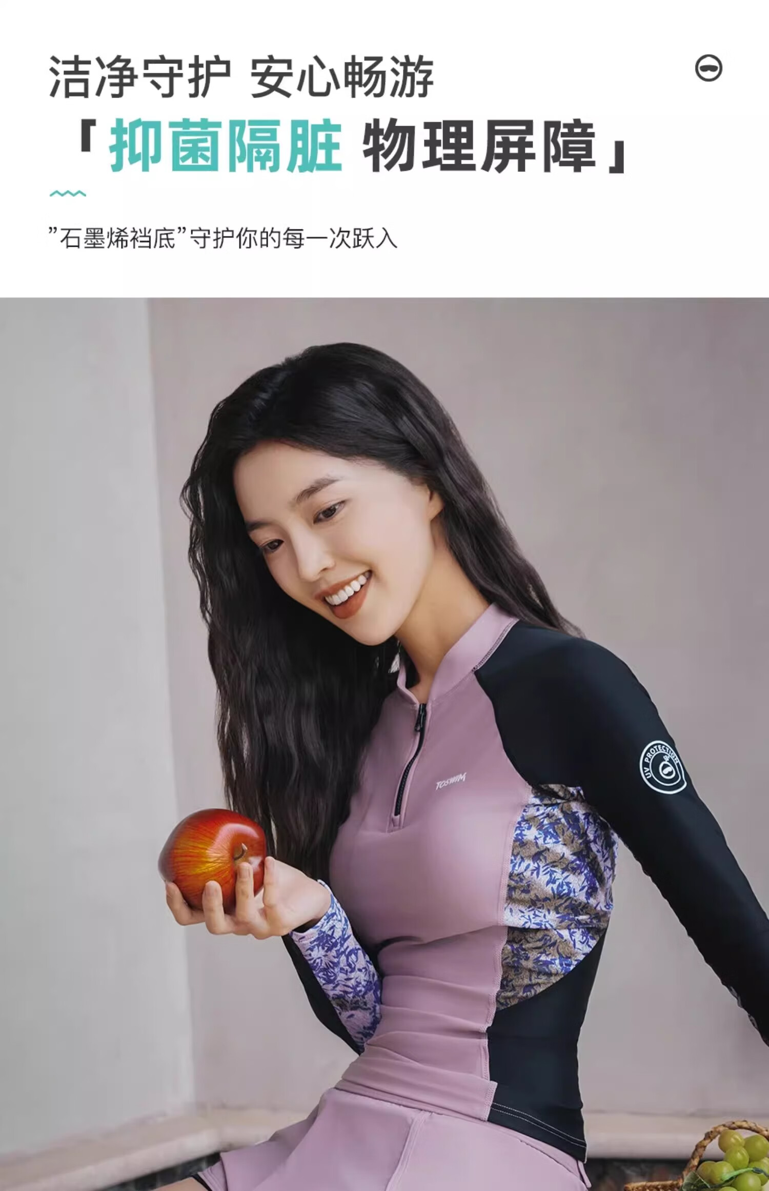 TOSWIM女士分体泳衣2024款长袖防晒保守显瘦大码微胖游泳衣 五件套 衣裤+泳镜+泳帽+浴巾+包 S 【高155-159cm/重41-45kg】
