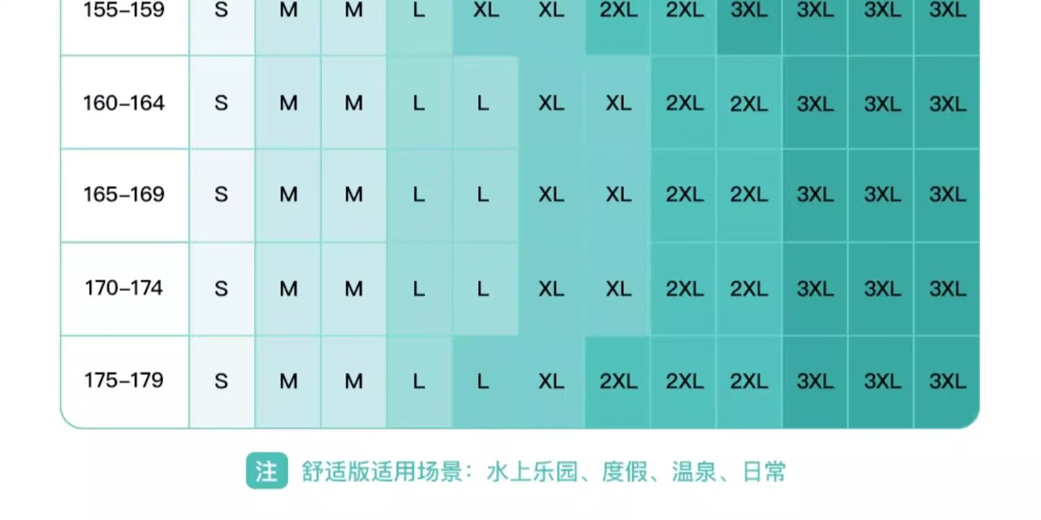 China (cm) 160-165/84-86 165-170 / 88-90 167-172 / 92-96 168-173 / 98-102 170-176 / 106-110