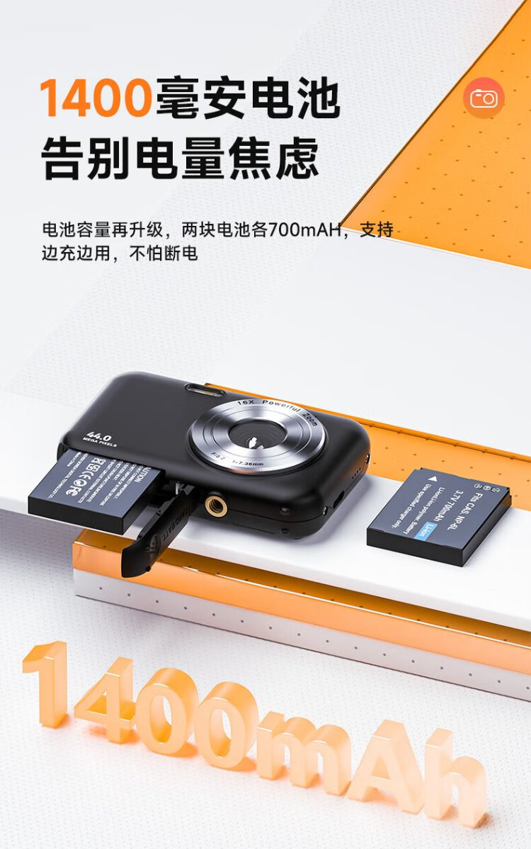 彩族(CAIZU) 数码相机ccd平替学生入门级校园迷你口袋卡片机高清儿童相机初高中生照相机滤镜高像素可传手机 【Z1 白色】6400万像素|前后双摄 【64G内存卡 约存6000张照片】