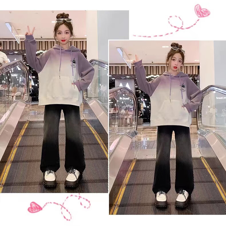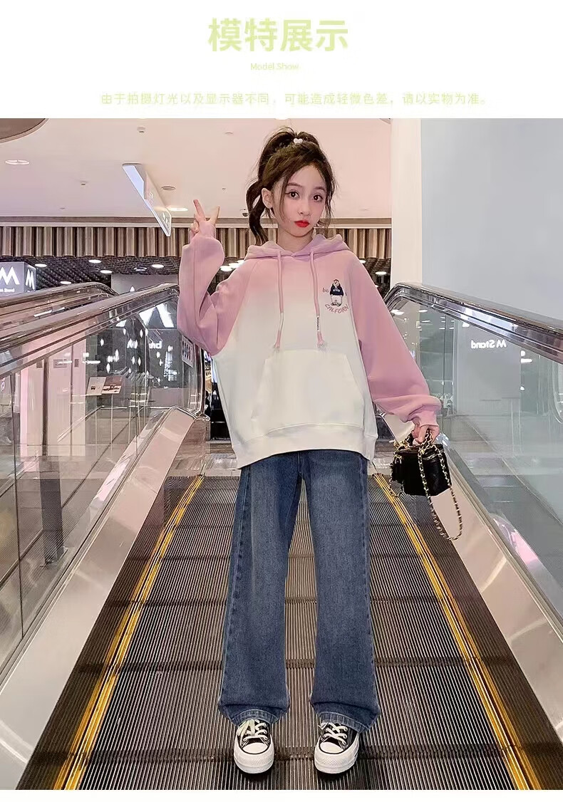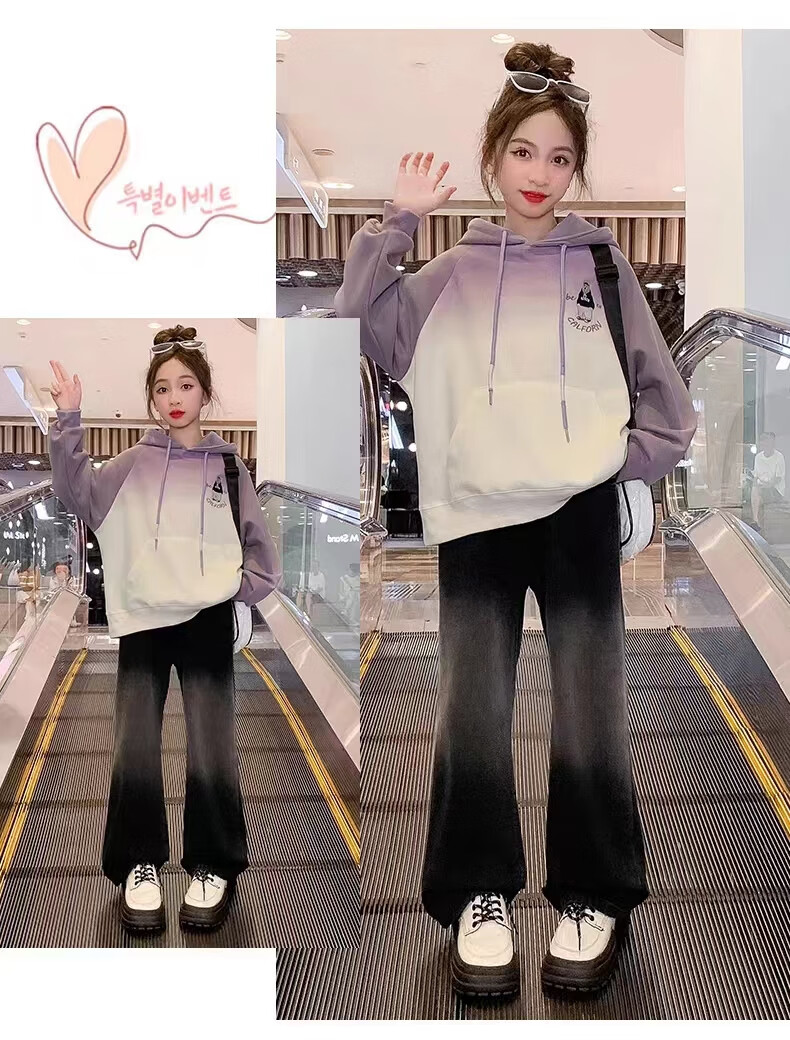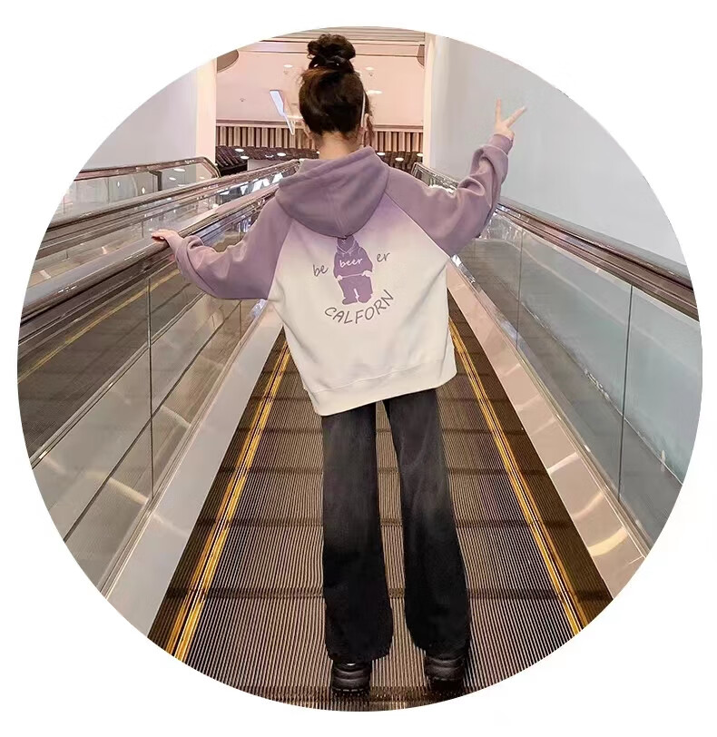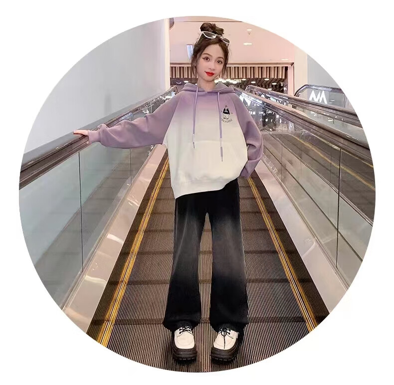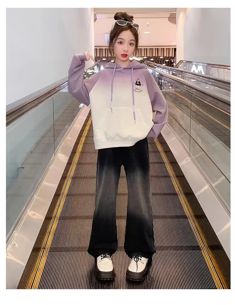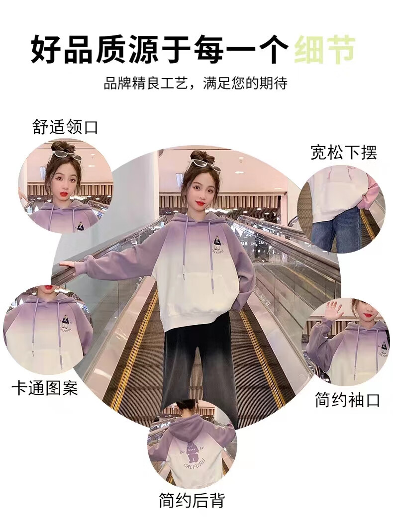 Girls sweatshirt spring 2025 new style children's bottoming shirt gradient medium and large children's spring and autumn Korean style hooded top XF-3451 Purple Spring and Autumn 160cm