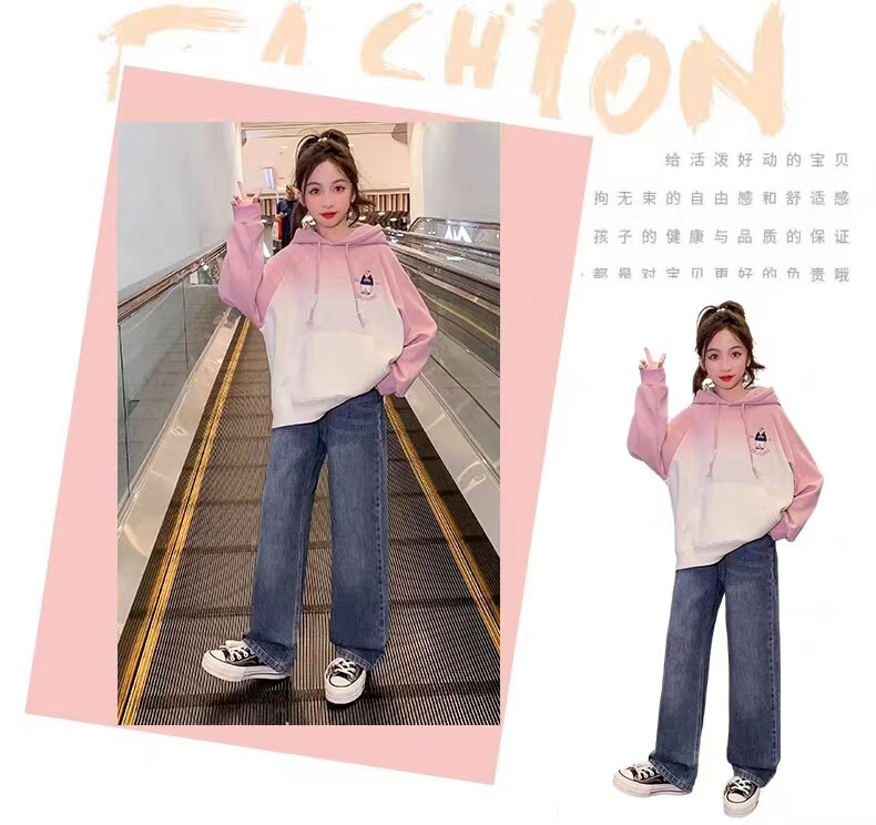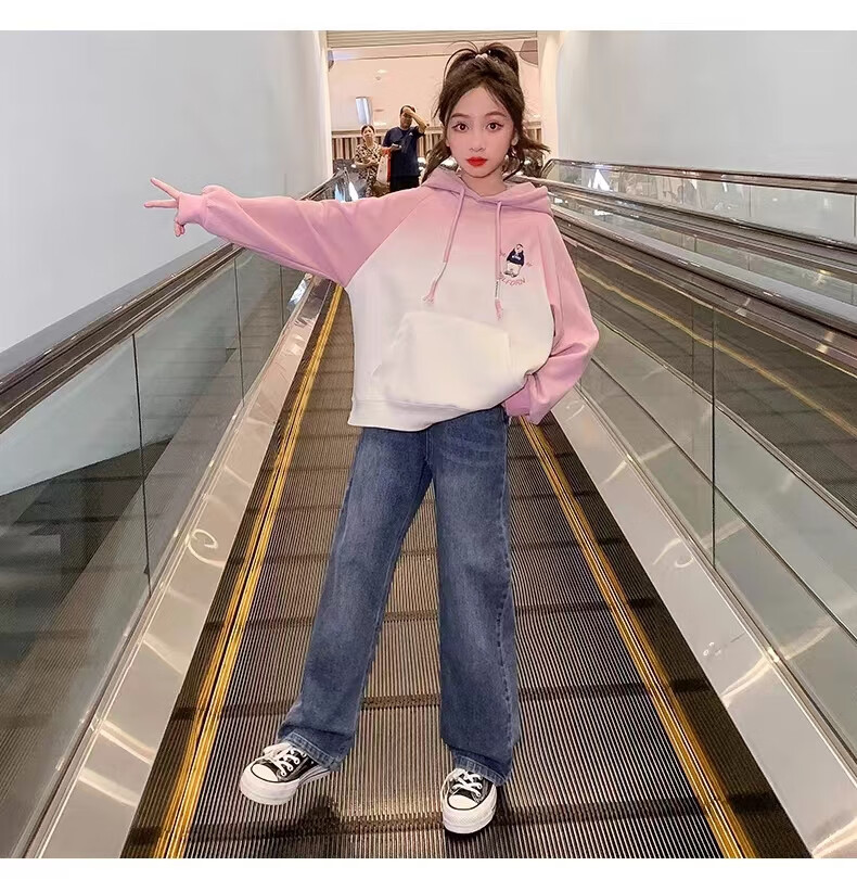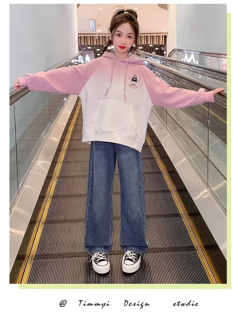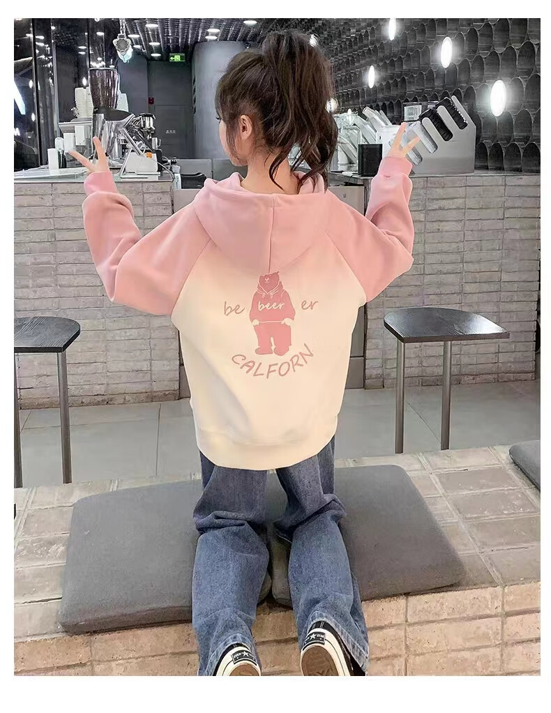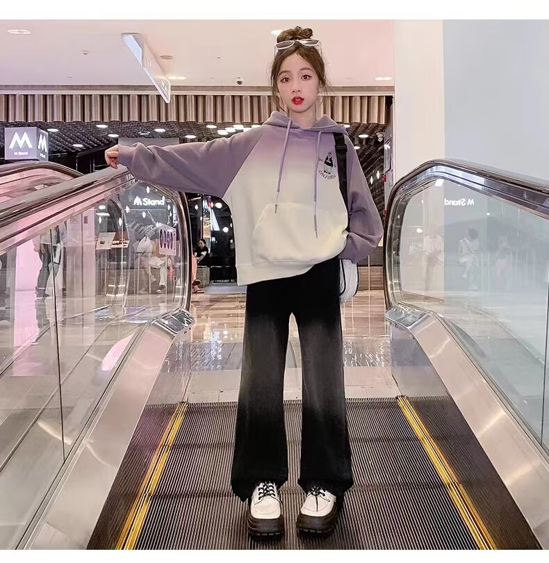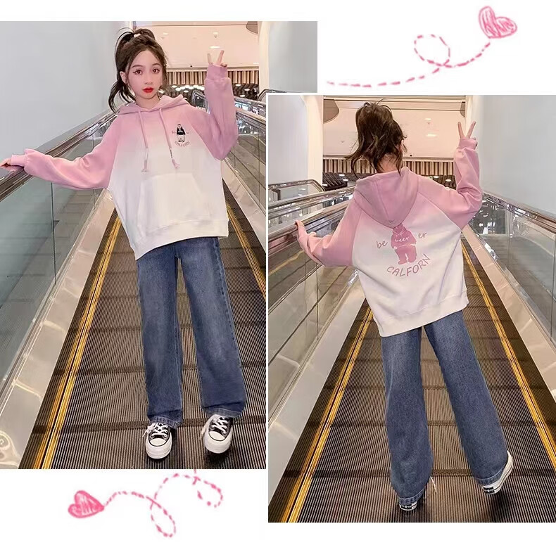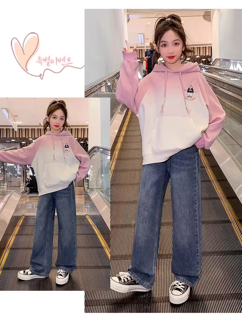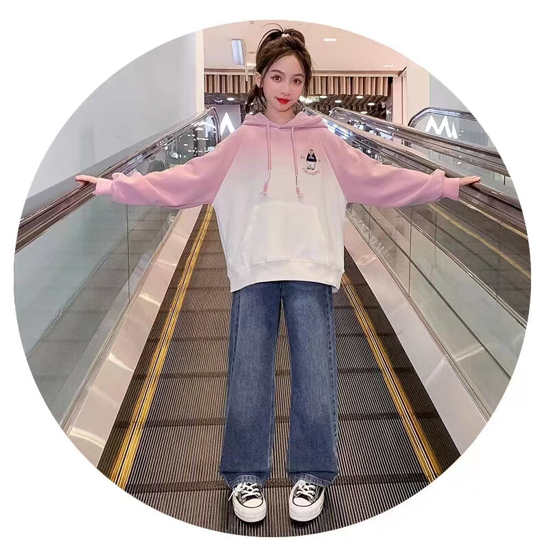 Girls sweatshirt spring 2025 new style children's bottoming shirt gradient medium and large children's spring and autumn Korean style hooded top XF-3451 Purple Spring and Autumn 160cm