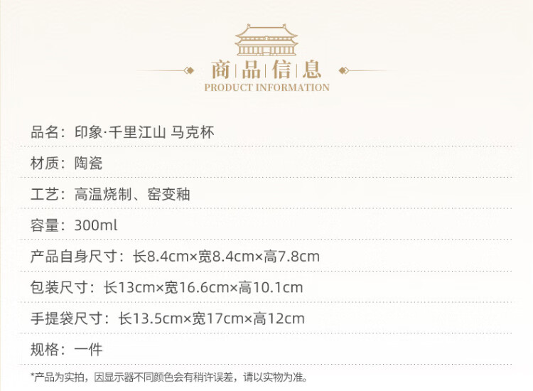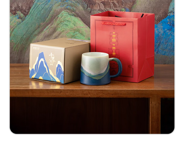Forbidden City Culture Impression Qianli Jiangshan Mug Cup Water Cup Ceramic Cup Coffee Cup 300ml Souvenir Gift Box Palace Museum Cultural and Creative Gifts