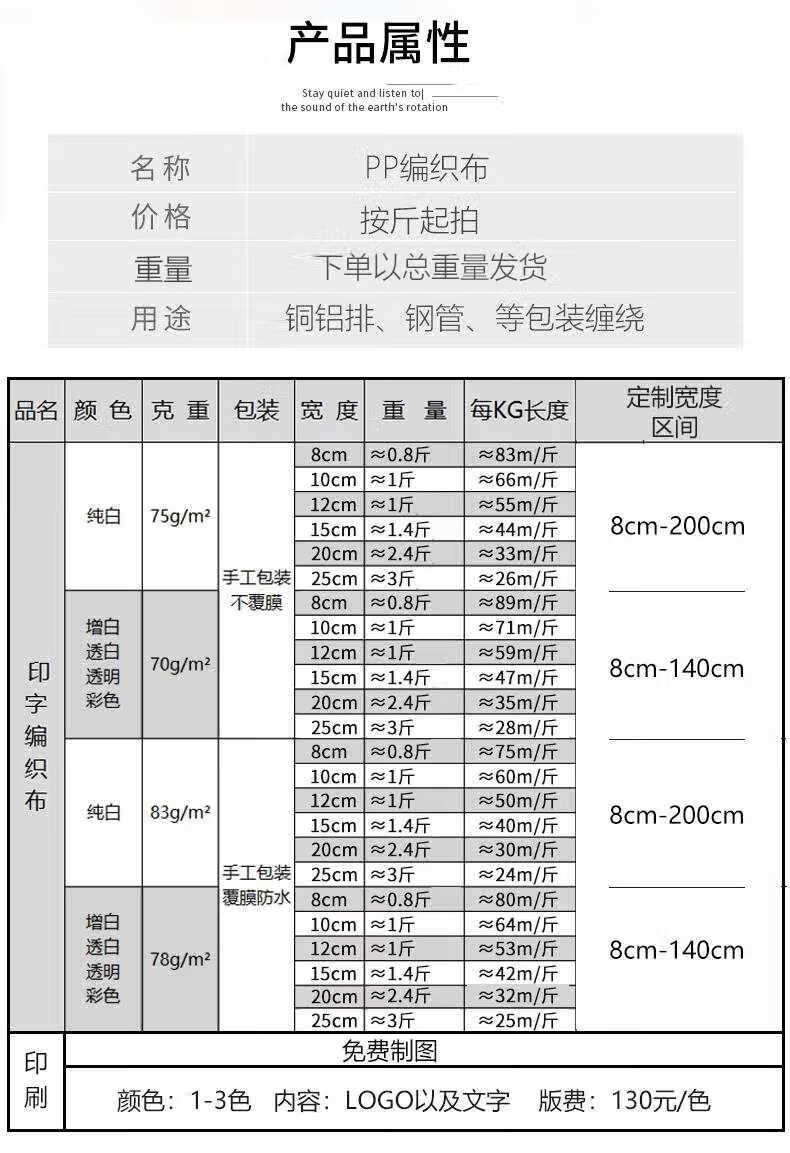 PP woven cloth packaging tape cable packaging cloth roll wrapped copper row steel pipe snakeskin packing tape braided wrapping tape white blank width 8cm press Jin Jin is equal to 0.5 kg, not rolled or covered