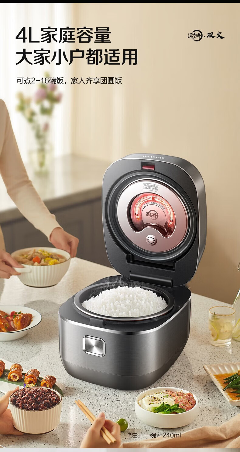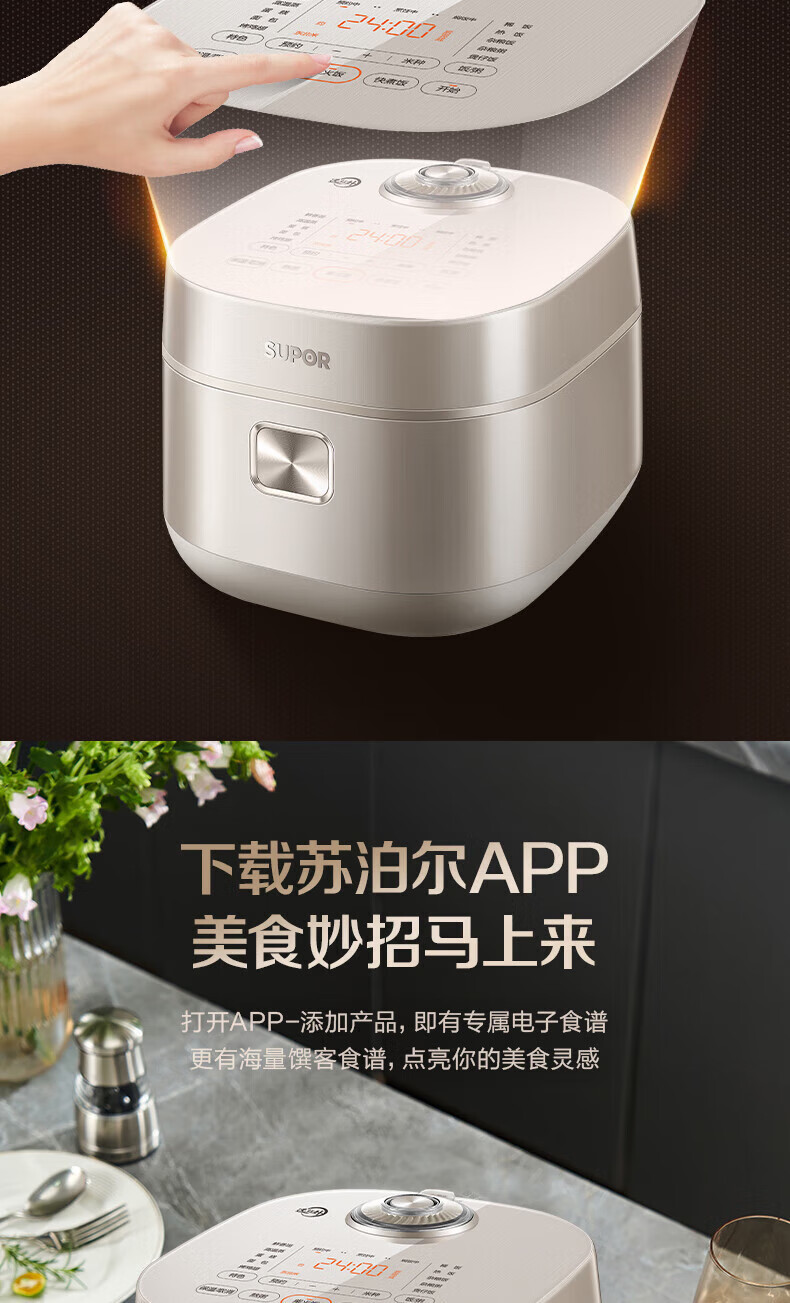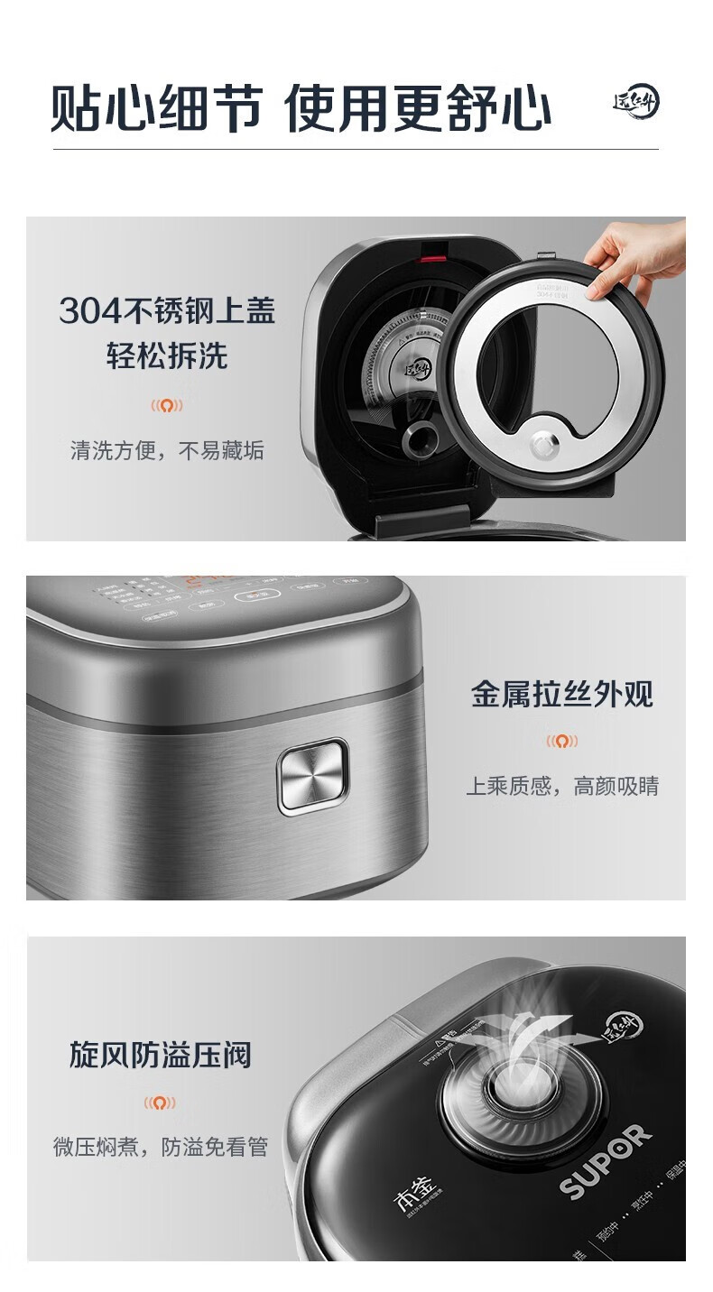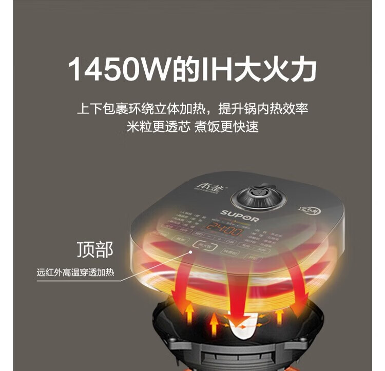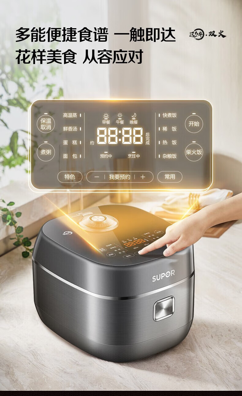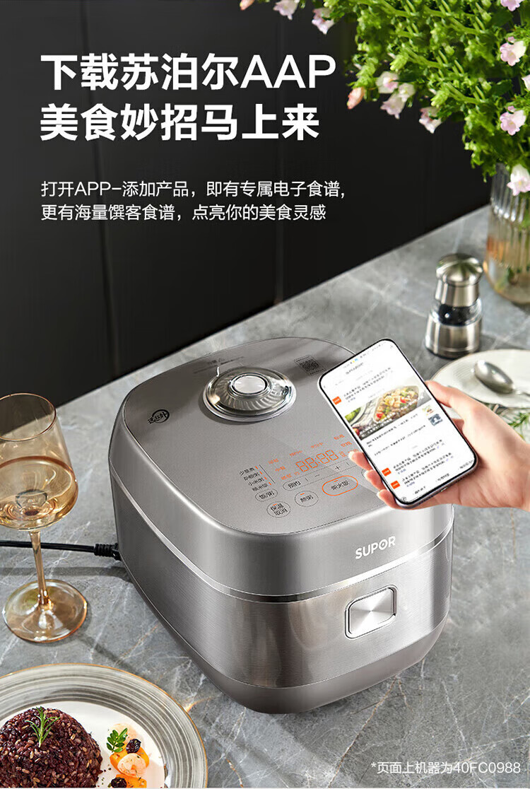 SUPOR Haushaltsreiskocher 4L Ferninfrarot durchdringende IH-Heizung Hochleistungs-Brennholz Reiskochen Brei Intelligente Reservierung Multifunktions-SF40HC0900 Smart-Touchscreen 4L